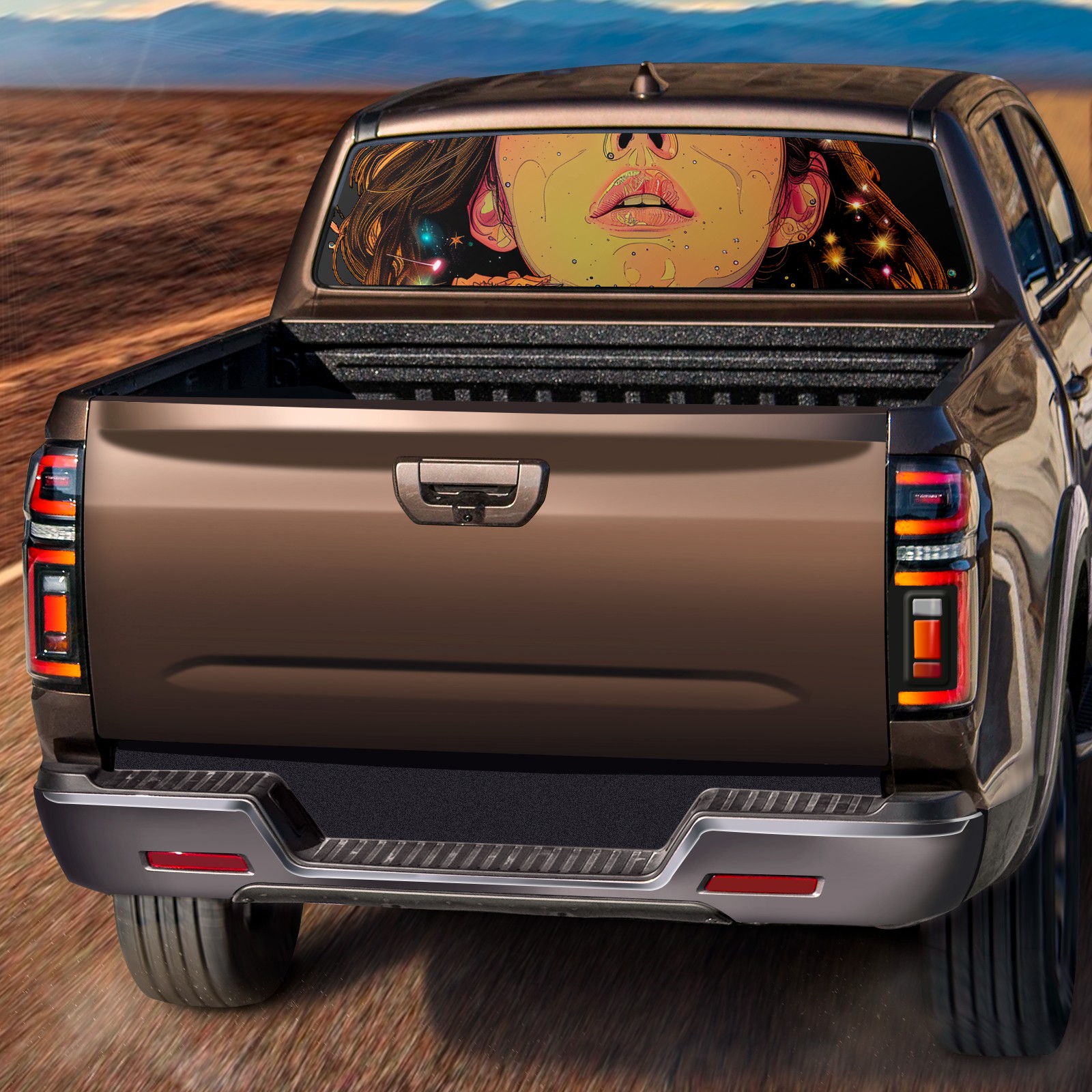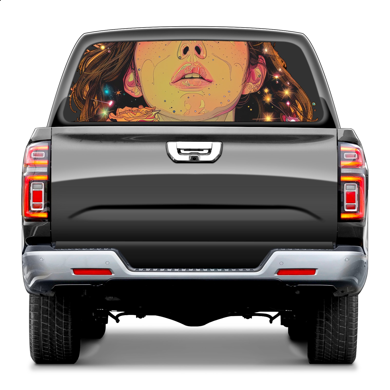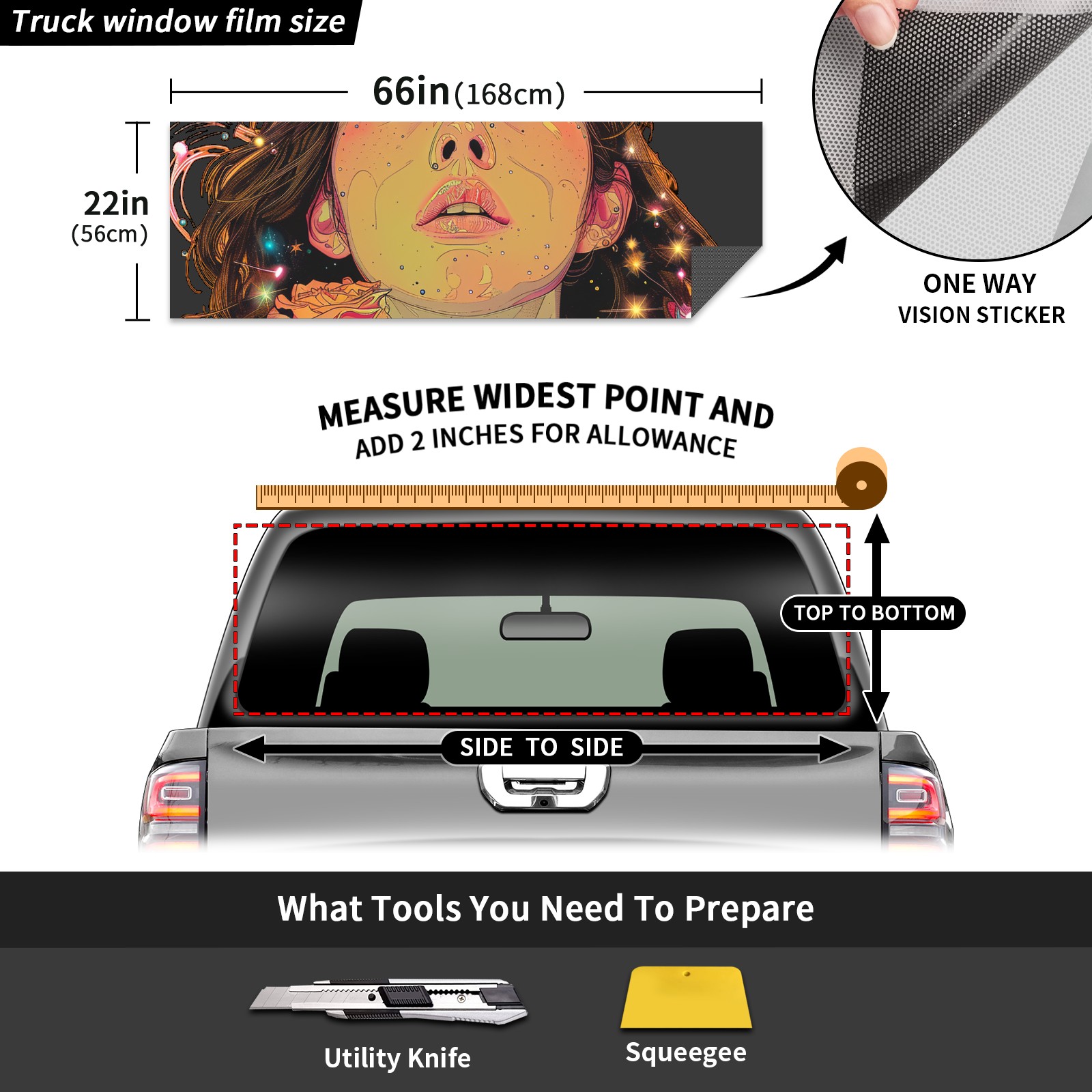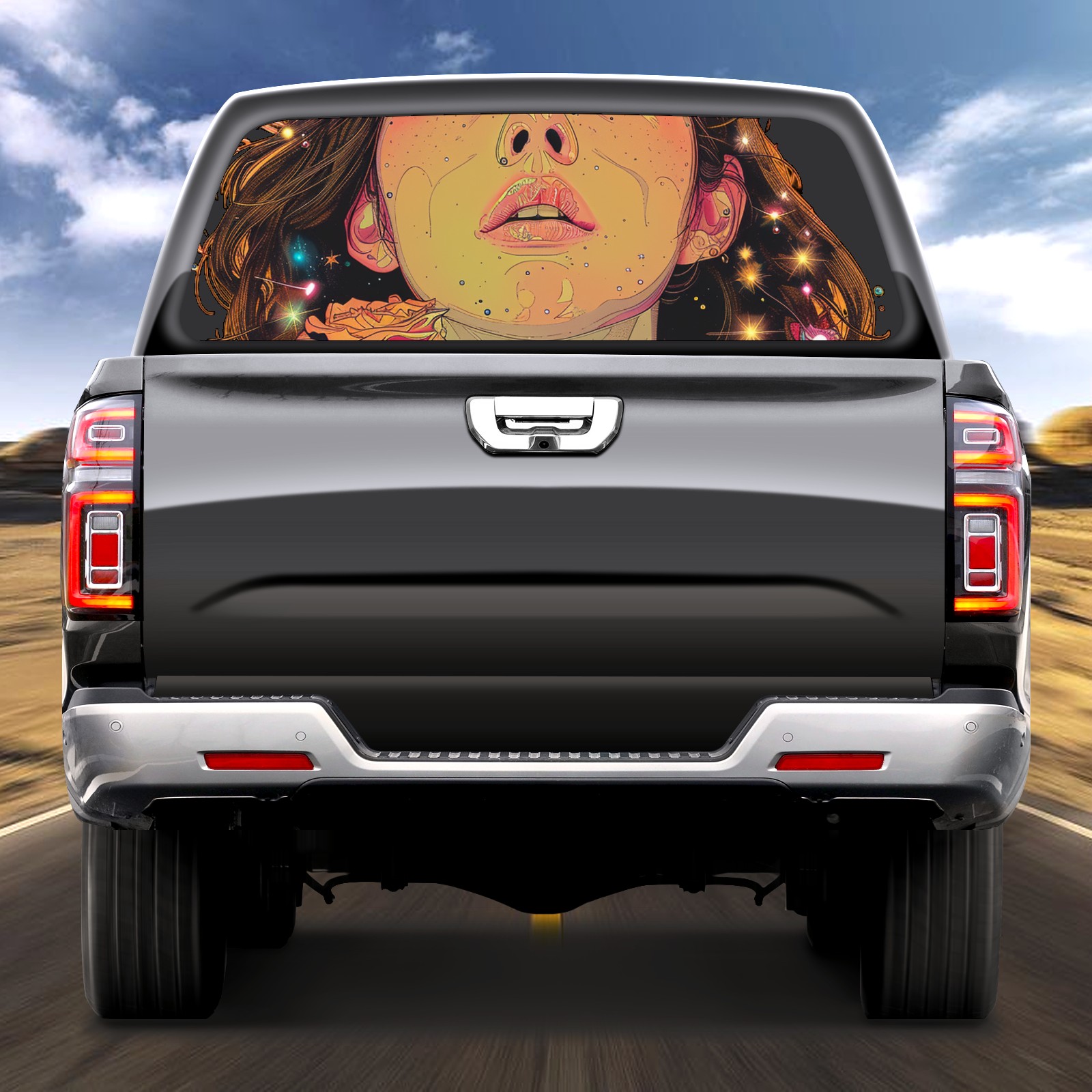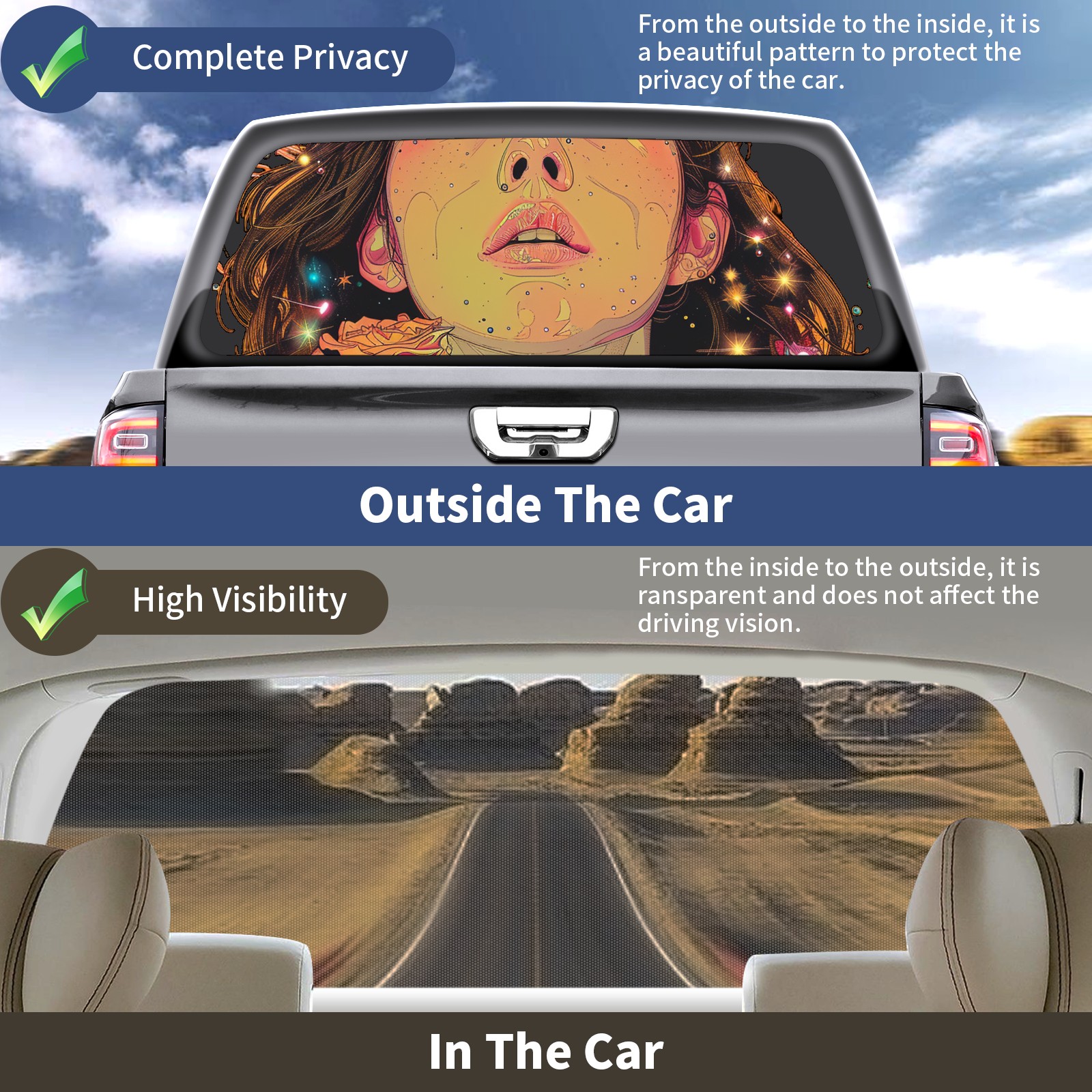Truck Rear Window Graphics Decals Pickup Trucks Back Window Sticker Full Window Film Decal One Way Visual Waterproof Car Rear Tint Shining Girl