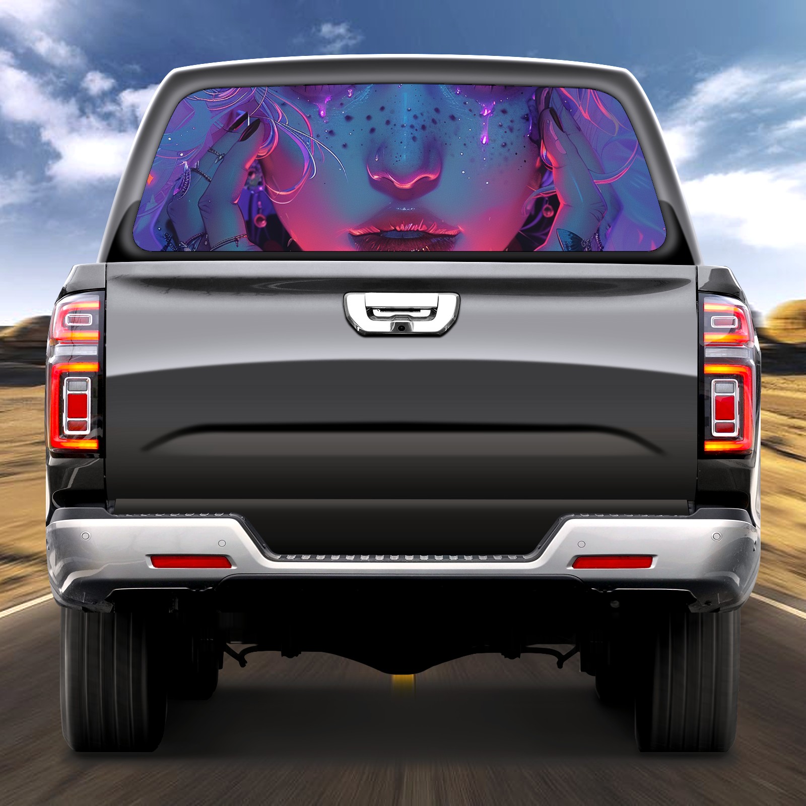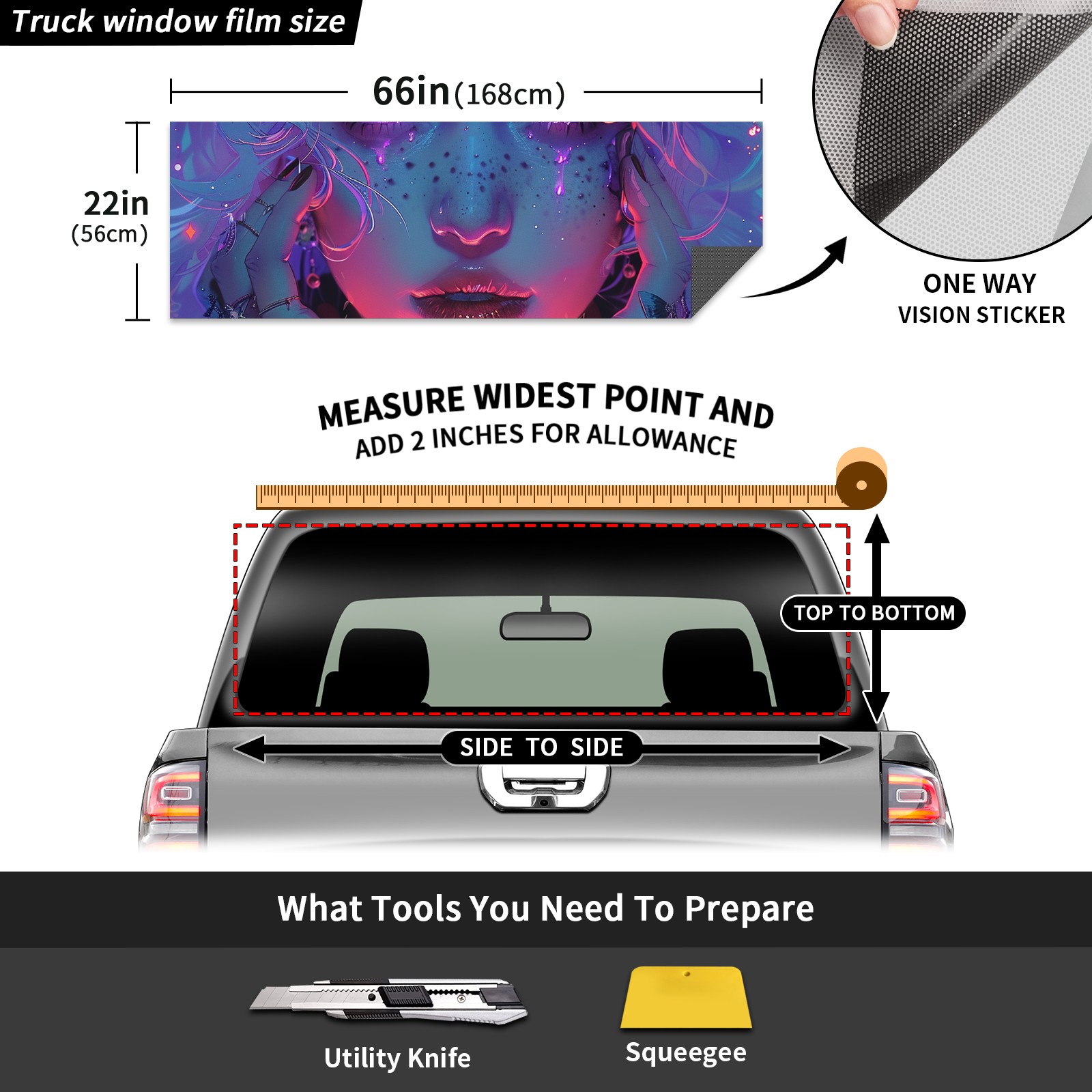 Truck Rear Window Graphics Decals Pickup Trucks Back Window Sticker Full Window Film Decal One Way Visual Waterproof Car Rear Tint Purple Girl