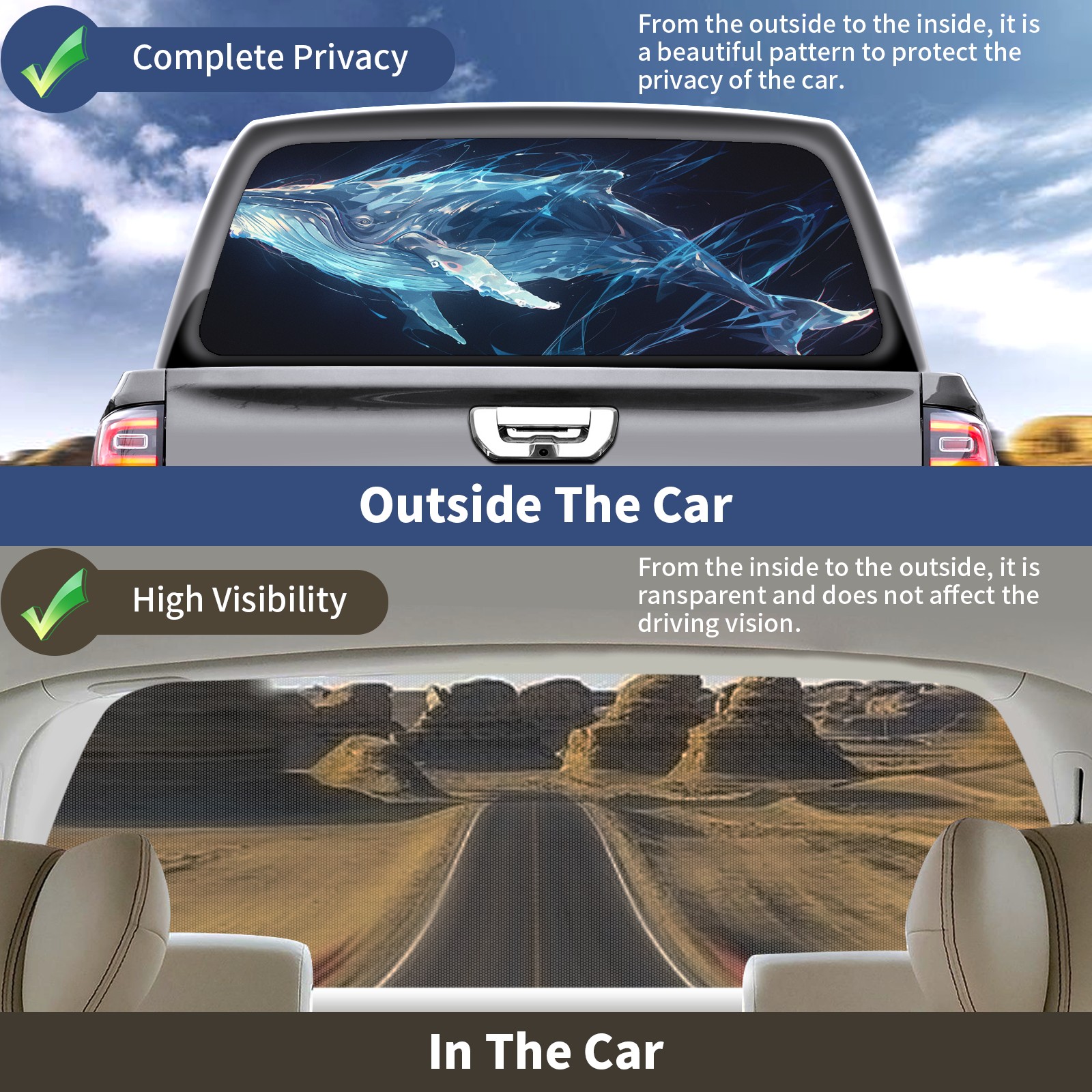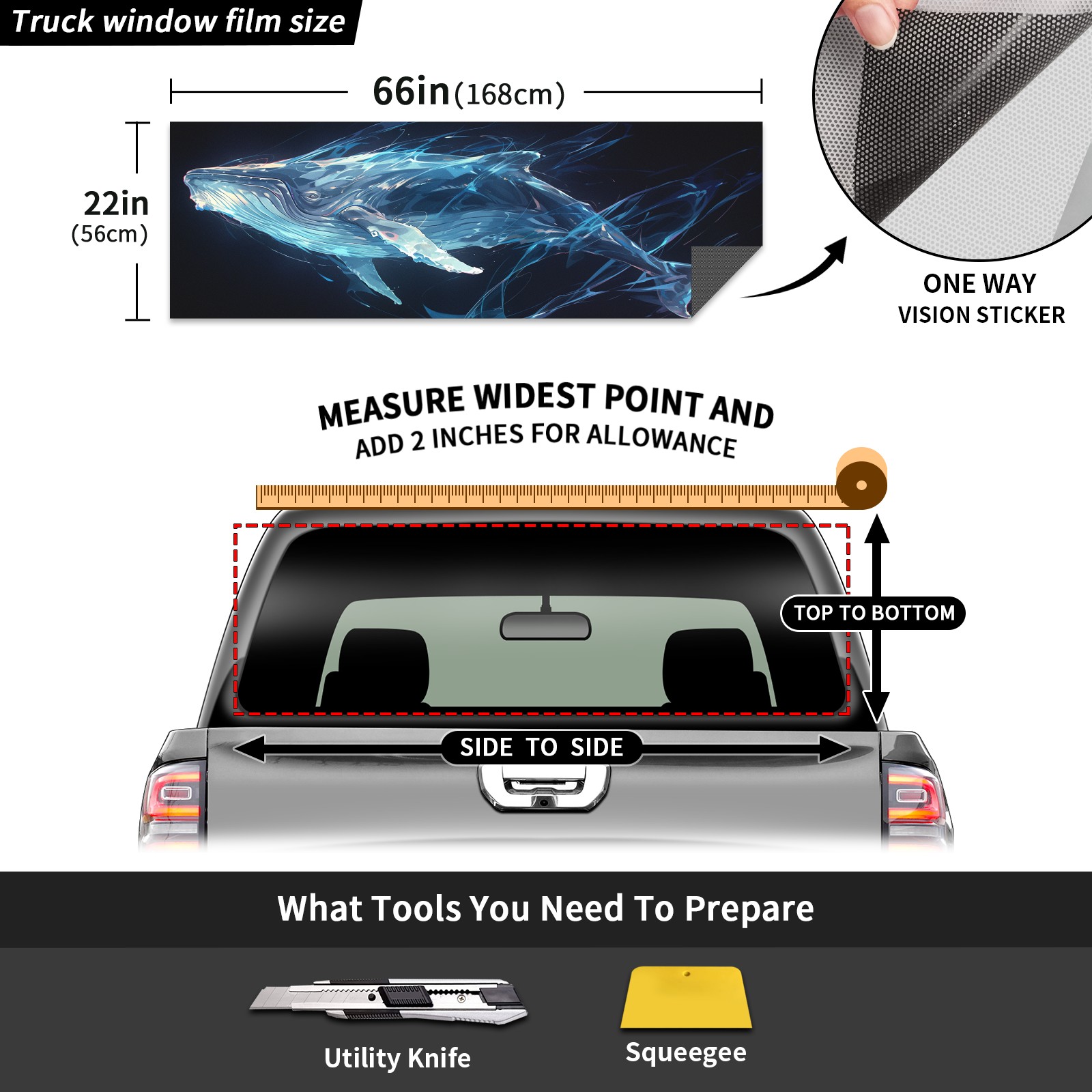 Truck Rear Window Graphics Decals Pickup Trucks Back Window Sticker Full Window Film Decal One Way Visual Waterproof Car Rear Tint 57