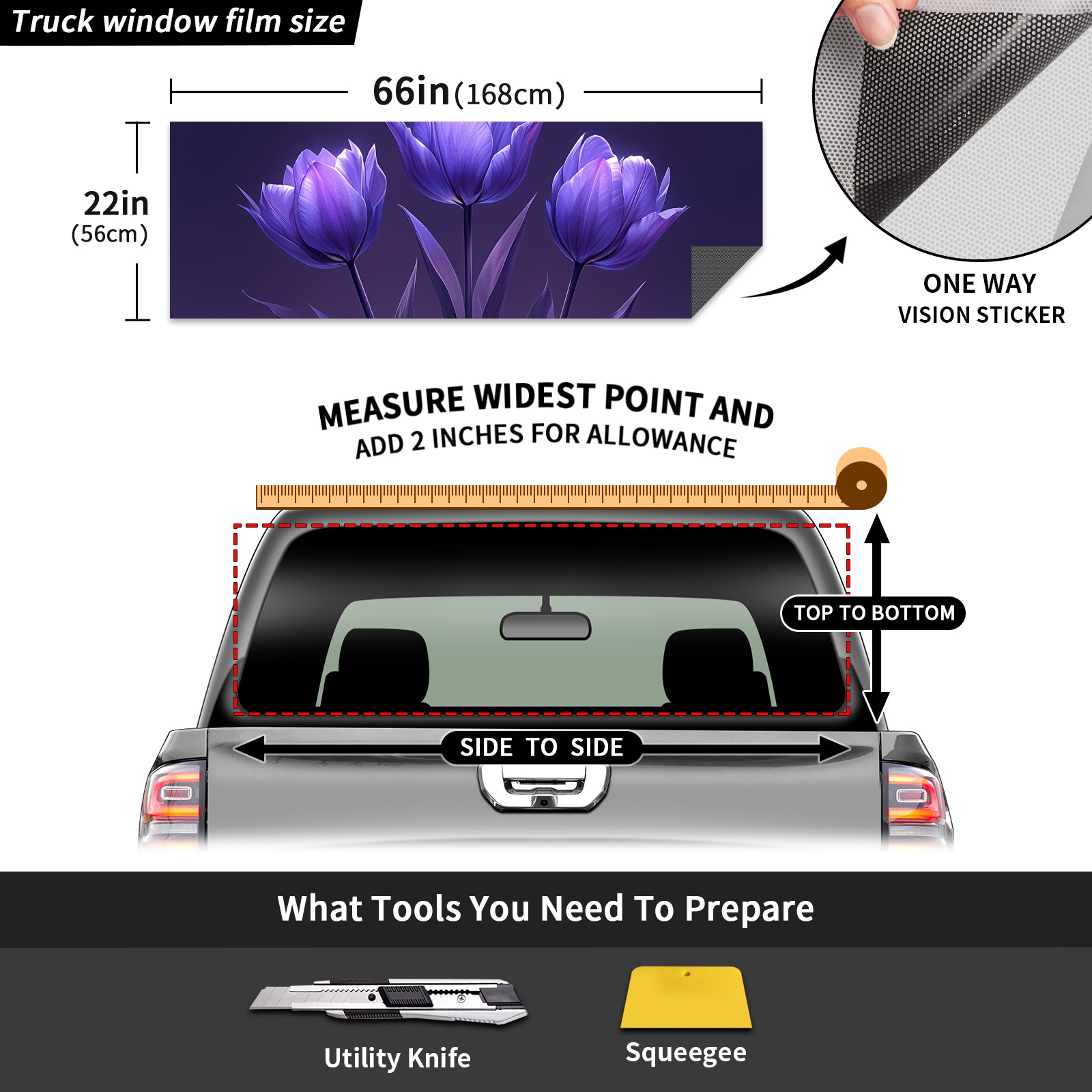 Truck Rear Window Graphics Decals Pickup Trucks Back Window Sticker Full Window Film Decal One Way Visual Waterproof Car Rear Tint 37