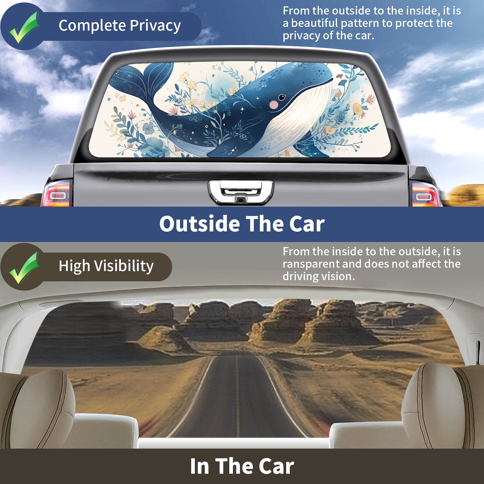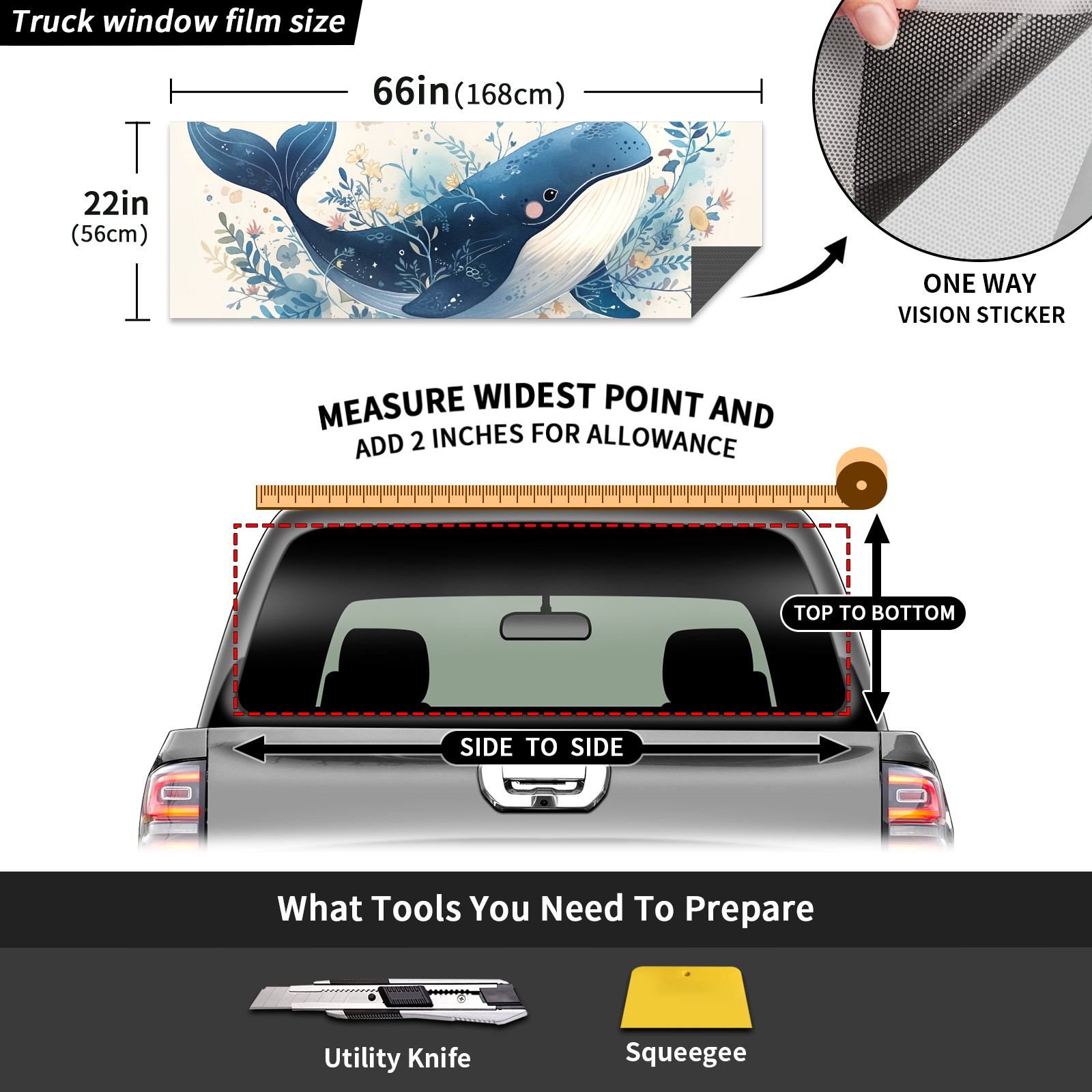 Truck Rear Window Graphics Decals Pickup Trucks Back Window Sticker Full Window Film Decal One Way Visual Waterproof Car Rear Tint 7