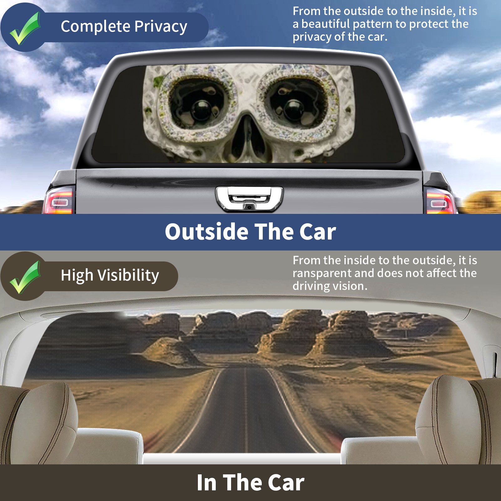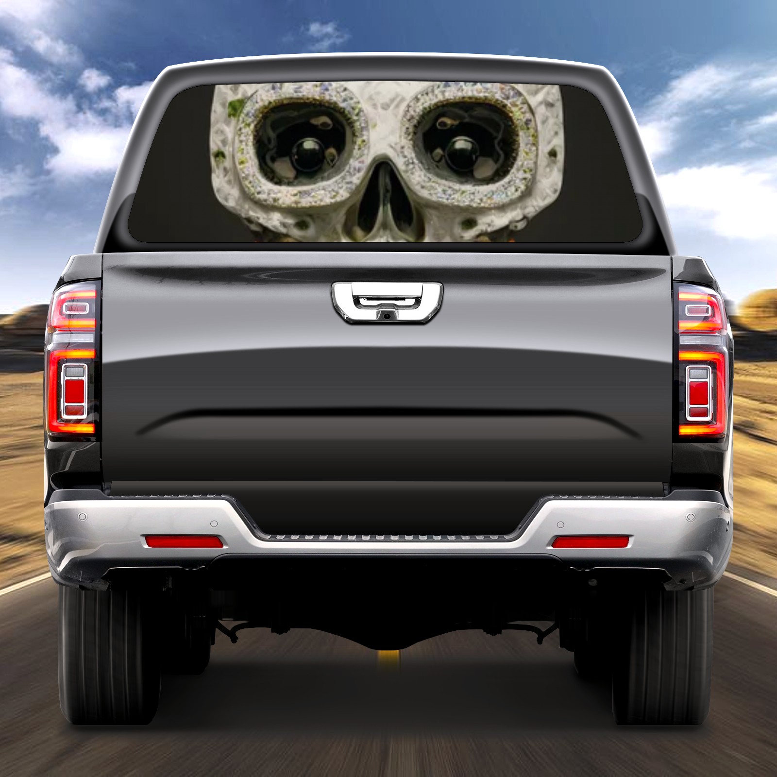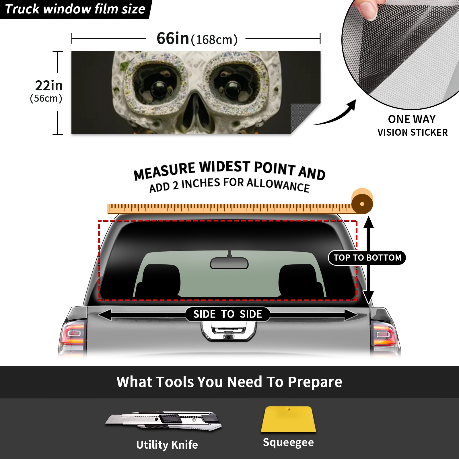 Truck Rear Window Graphics Decals Pickup Trucks Back Window Sticker Full Window Film Decal One Way Visual Waterproof Car Rear Tint Skull Sunflower