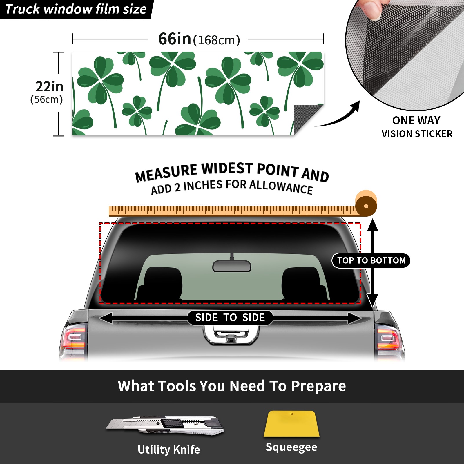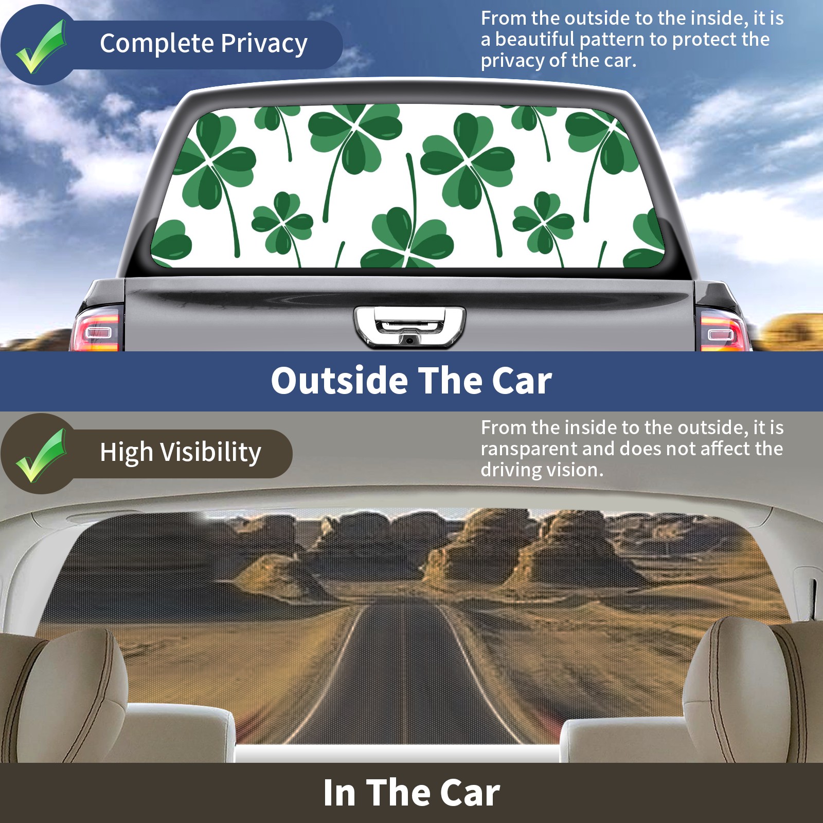 Truck Rear Window Graphics Decals Pickup Trucks Back Window Sticker Full Window Film Decal One Way Visual Waterproof Car Rear Tint Green Clover