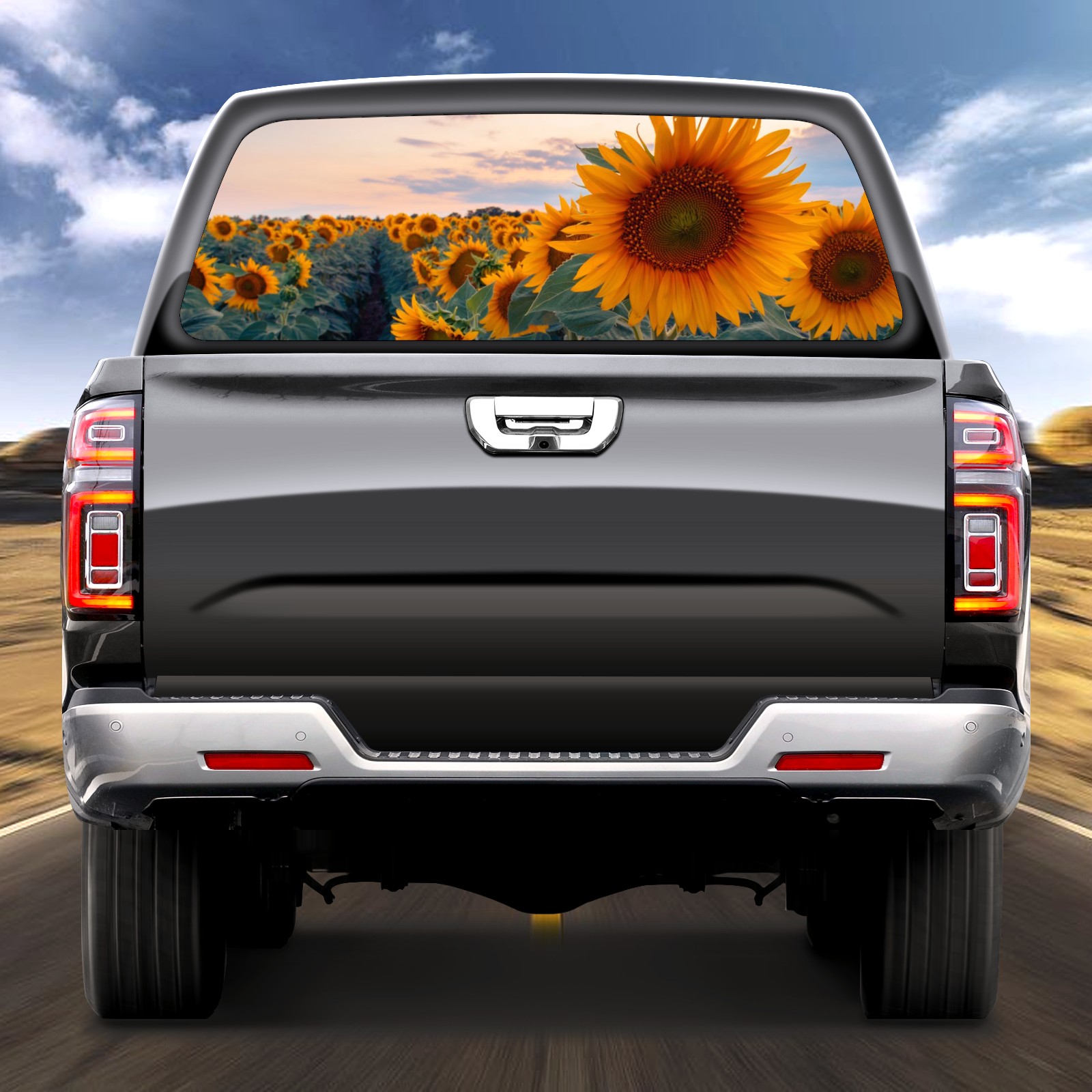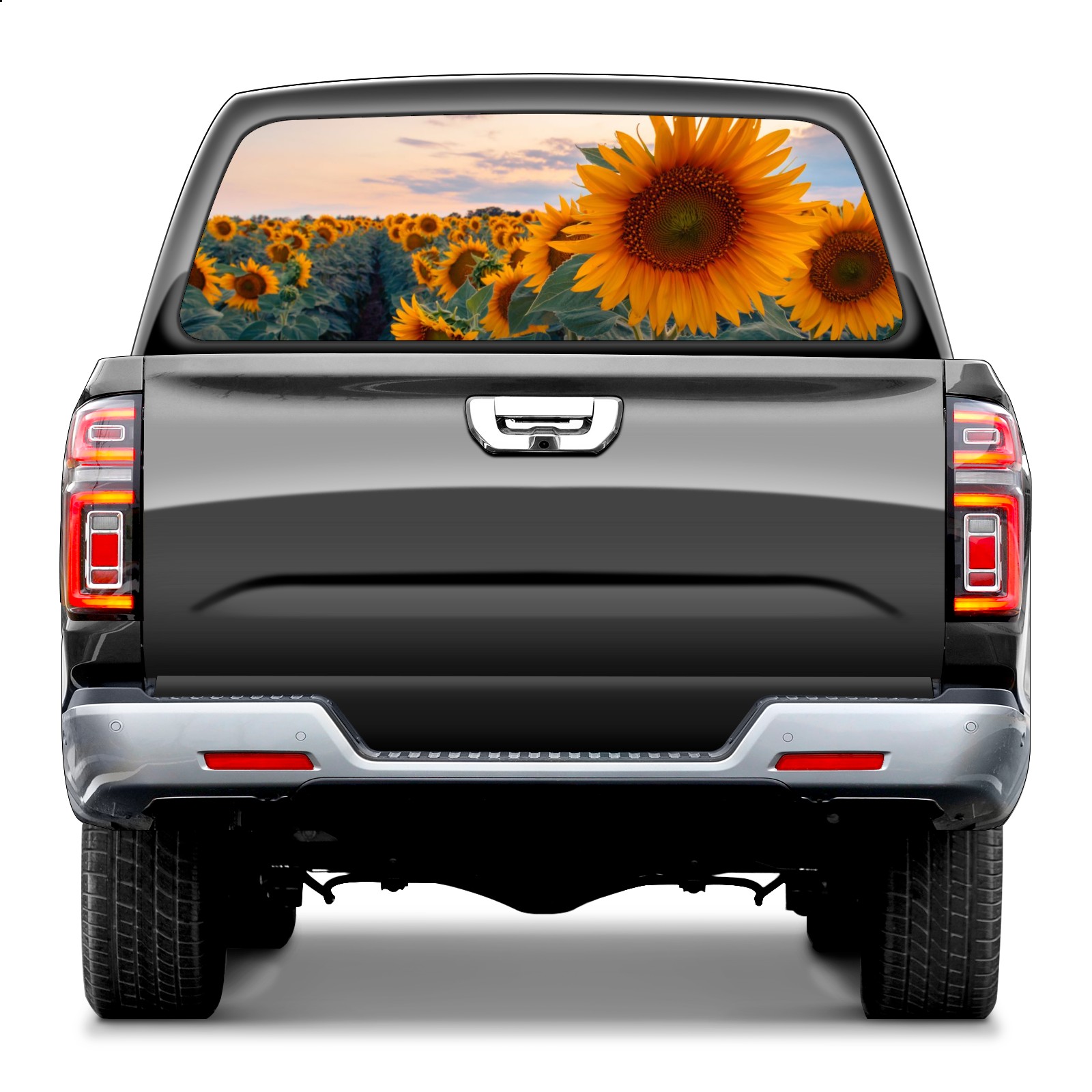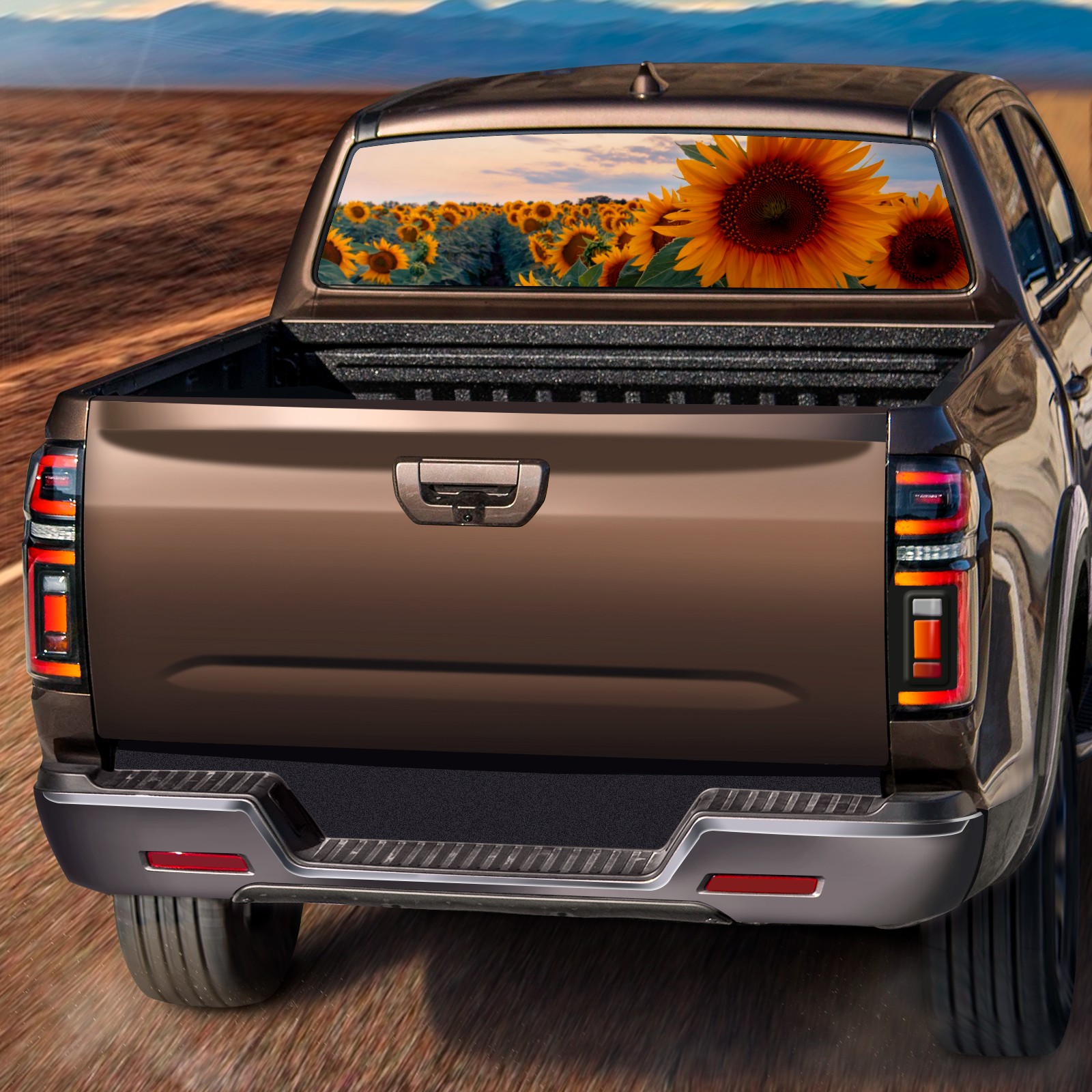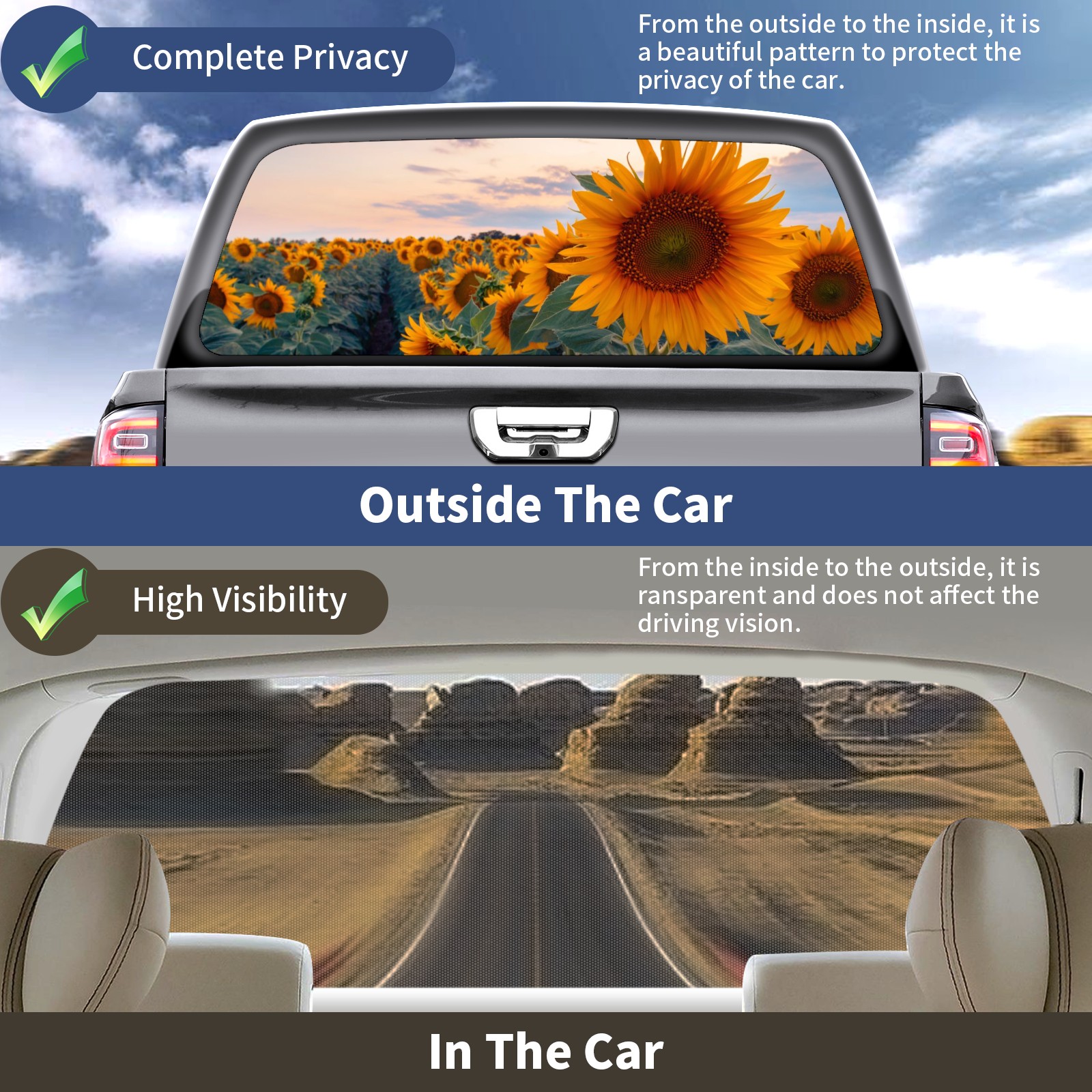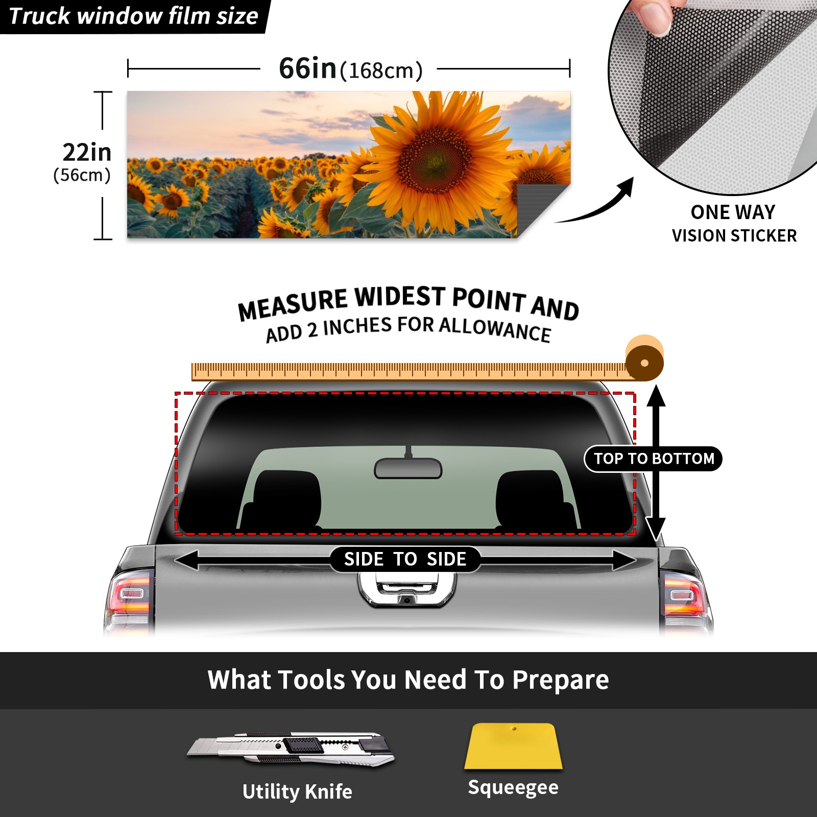 Truck Rear Window Graphics Decals Pickup Trucks Back Window Sticker Full Window Film Decal One Way Visual Waterproof Car Rear Tint Flowers Sunflower