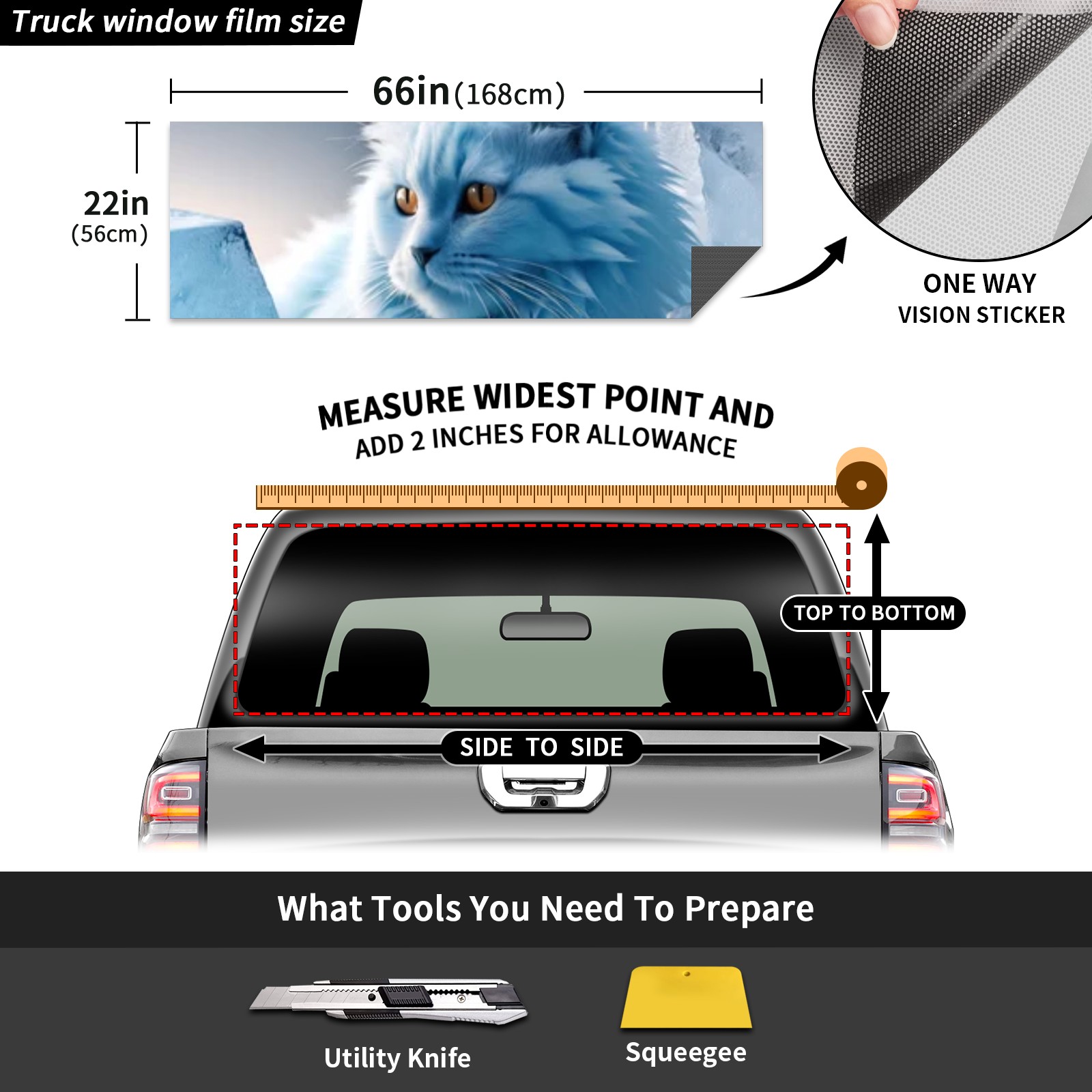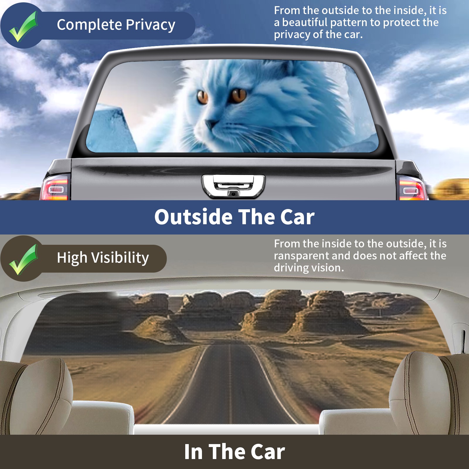 Truck Rear Window Graphics Decals Pickup Trucks Back Window Sticker Full Window Film Decal One Way Visual Waterproof Car Rear Tint Cat