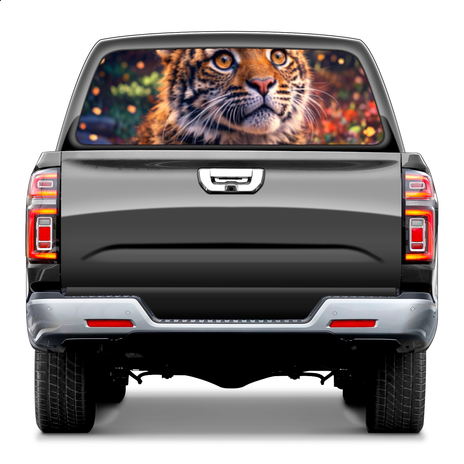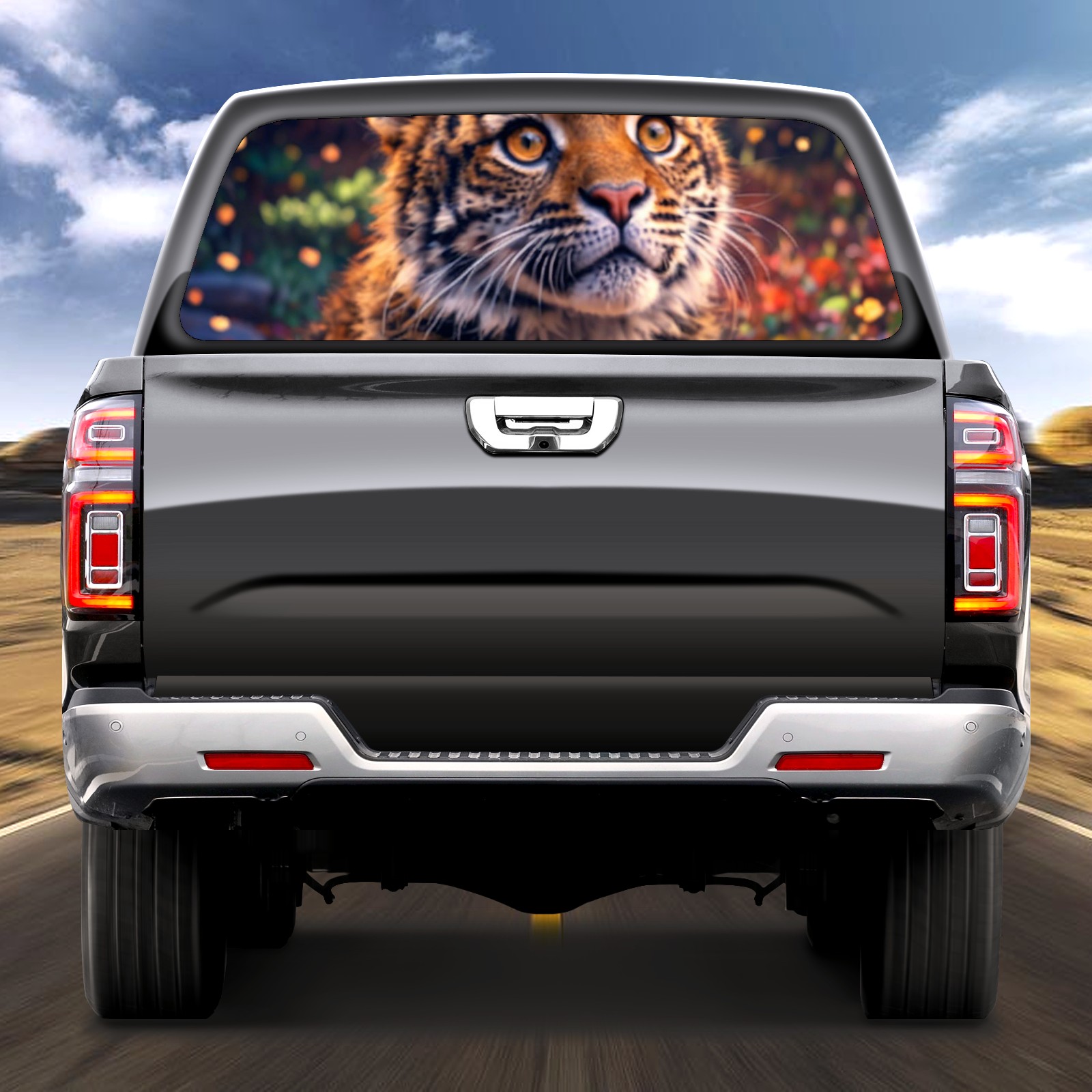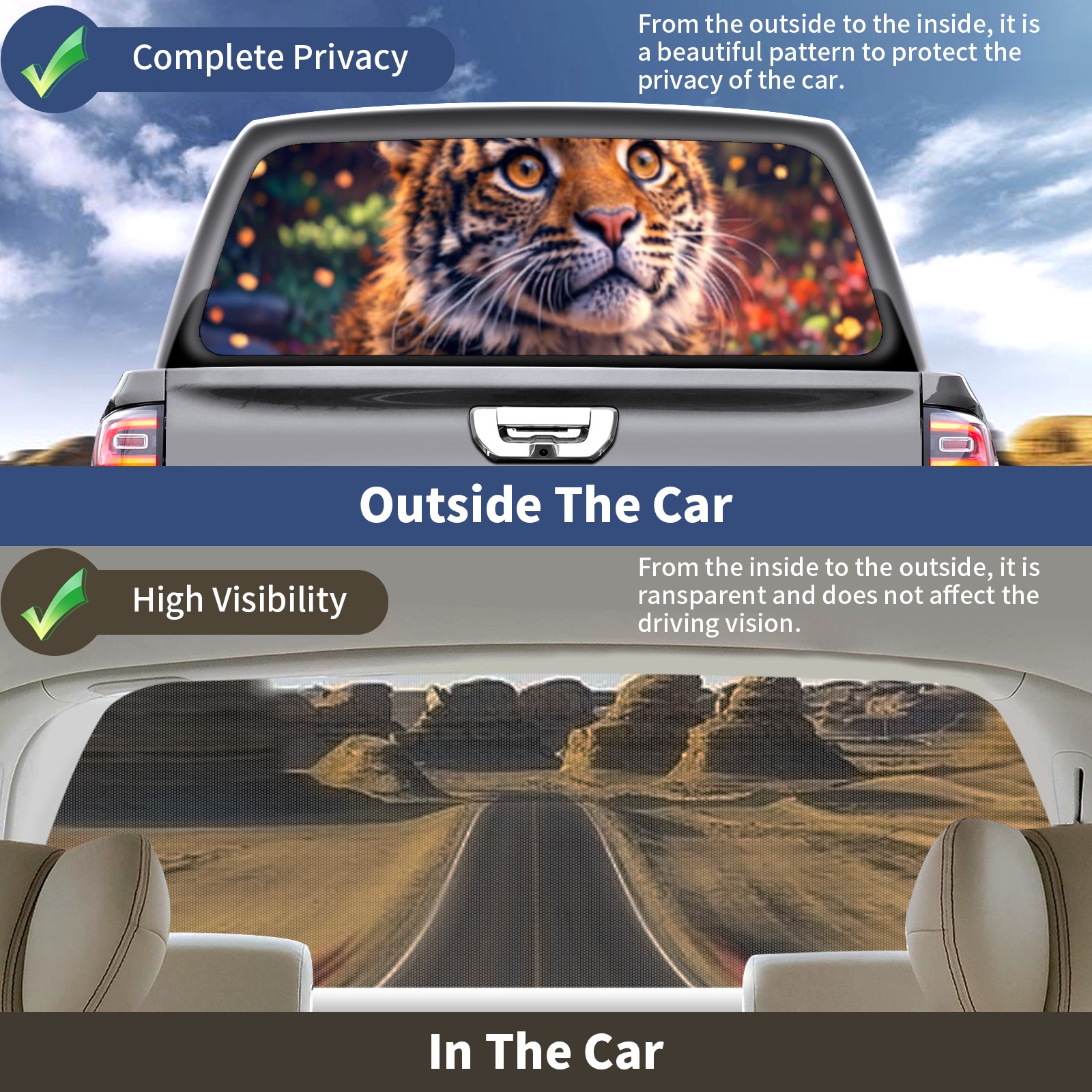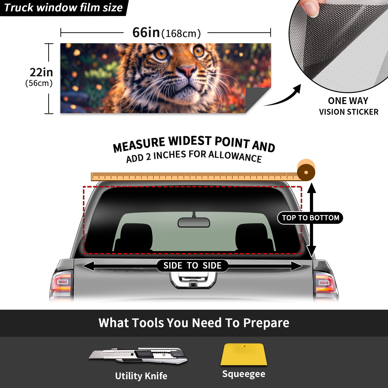 Truck Rear Window Graphics Decals Pickup Trucks Back Window Sticker Full Window Film Decal One Way Visual Waterproof Car Rear Tint Cute Tiger