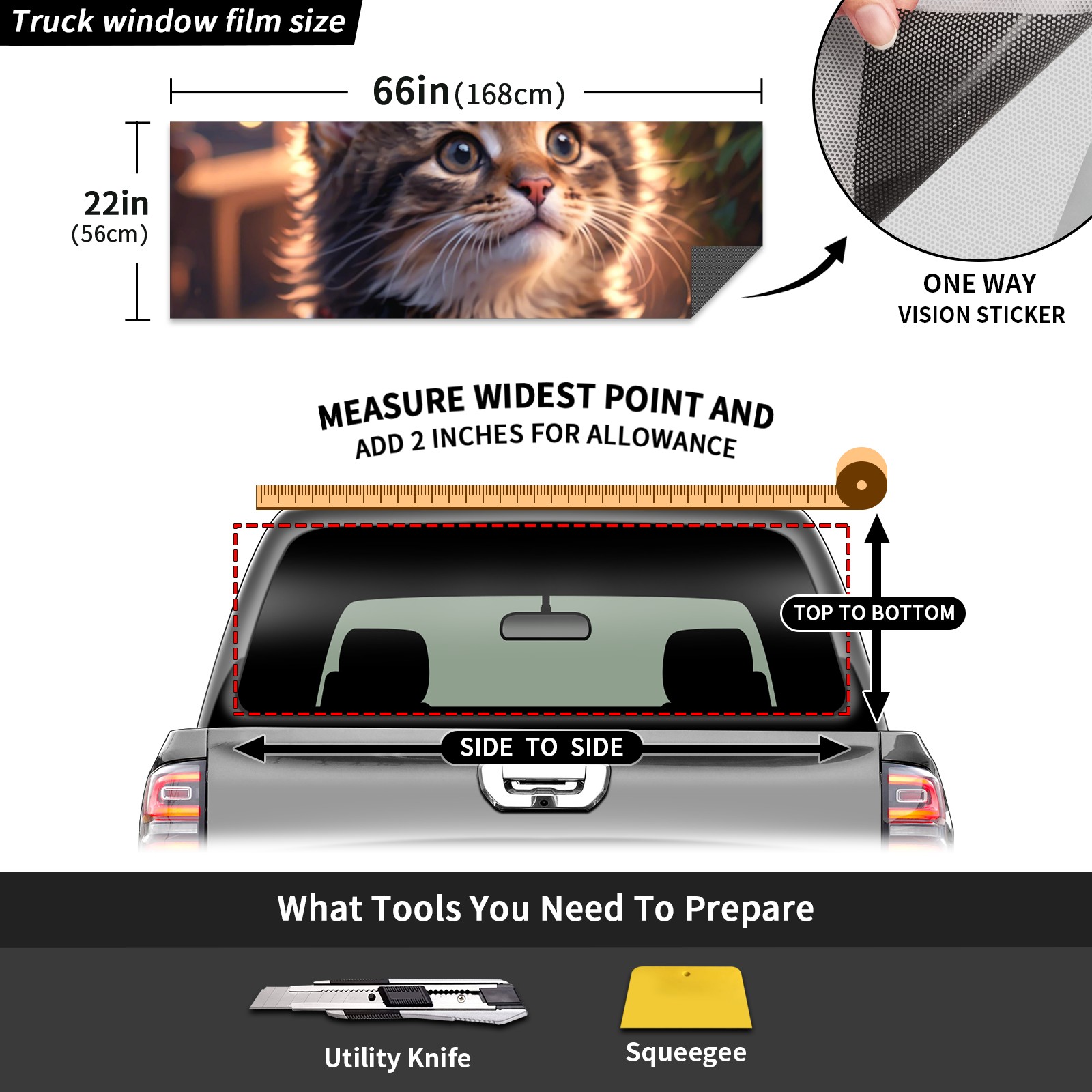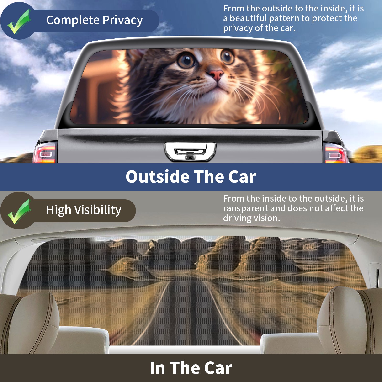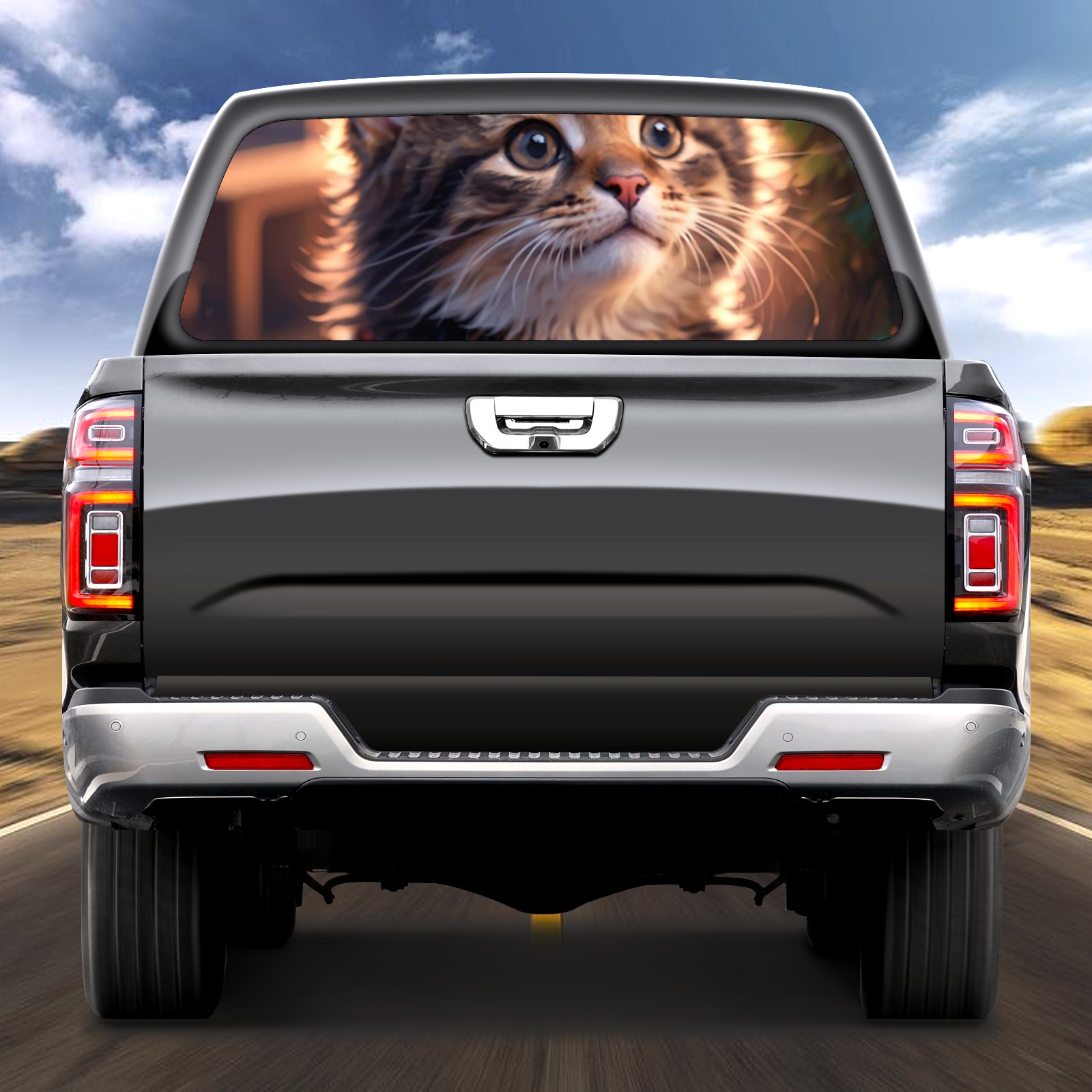 Truck Rear Window Graphics Decals Pickup Trucks Back Window Sticker Full Window Film Decal One Way Visual Waterproof Car Rear Tint Cute Cat