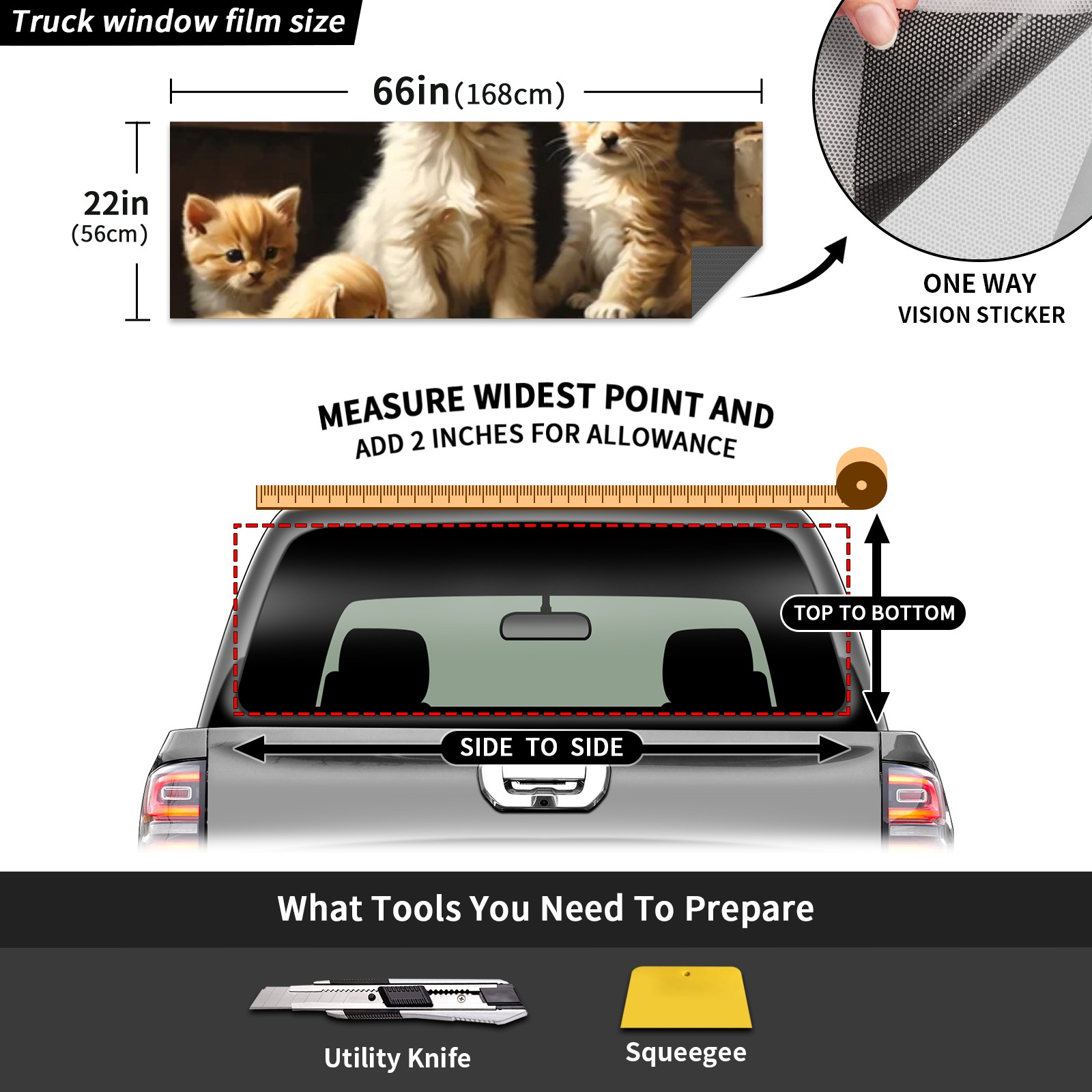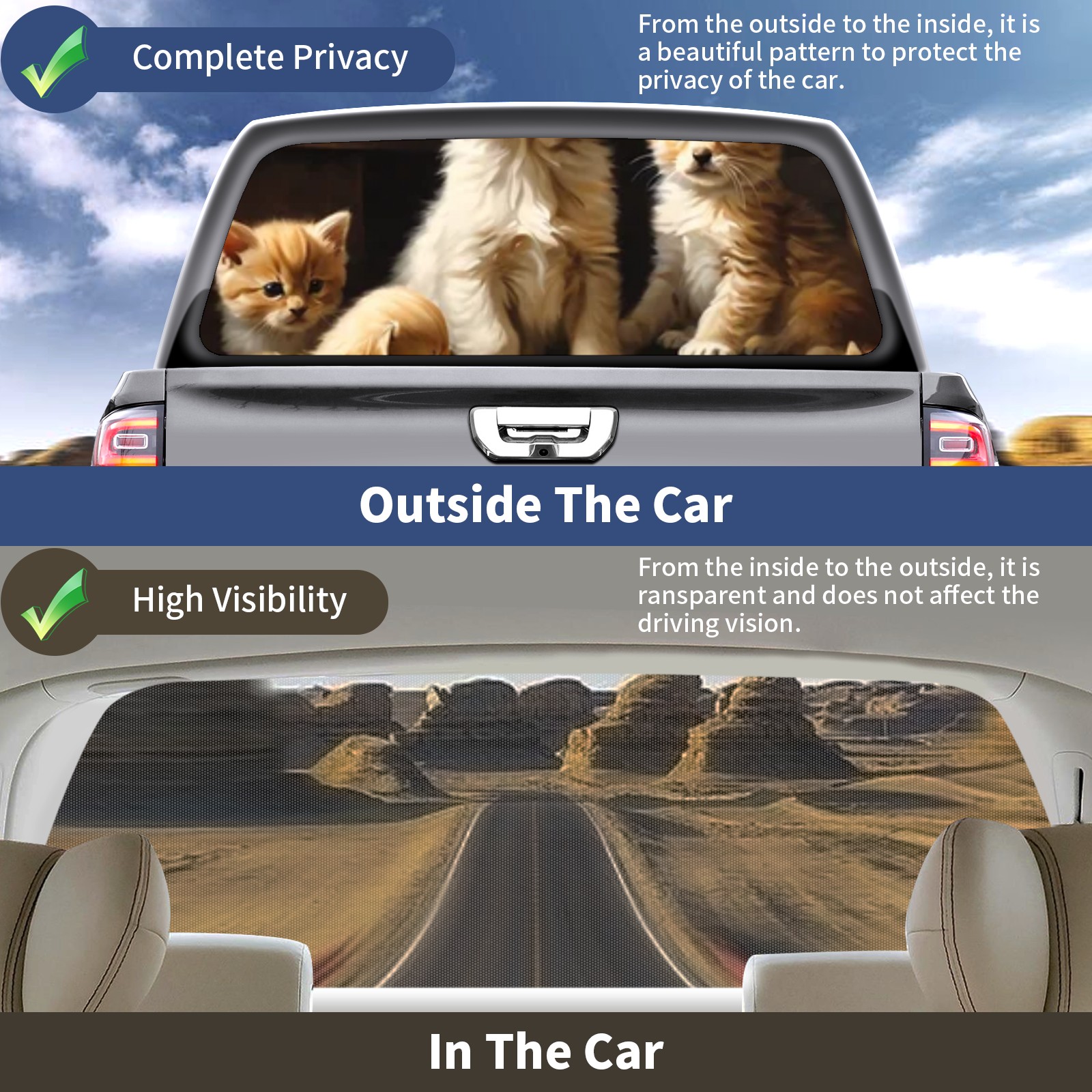 Truck Rear Window Graphics Decals Pickup Trucks Back Window Sticker Full Window Film Decal One Way Visual Waterproof Car Rear Tint Animal Cute Dog Cat