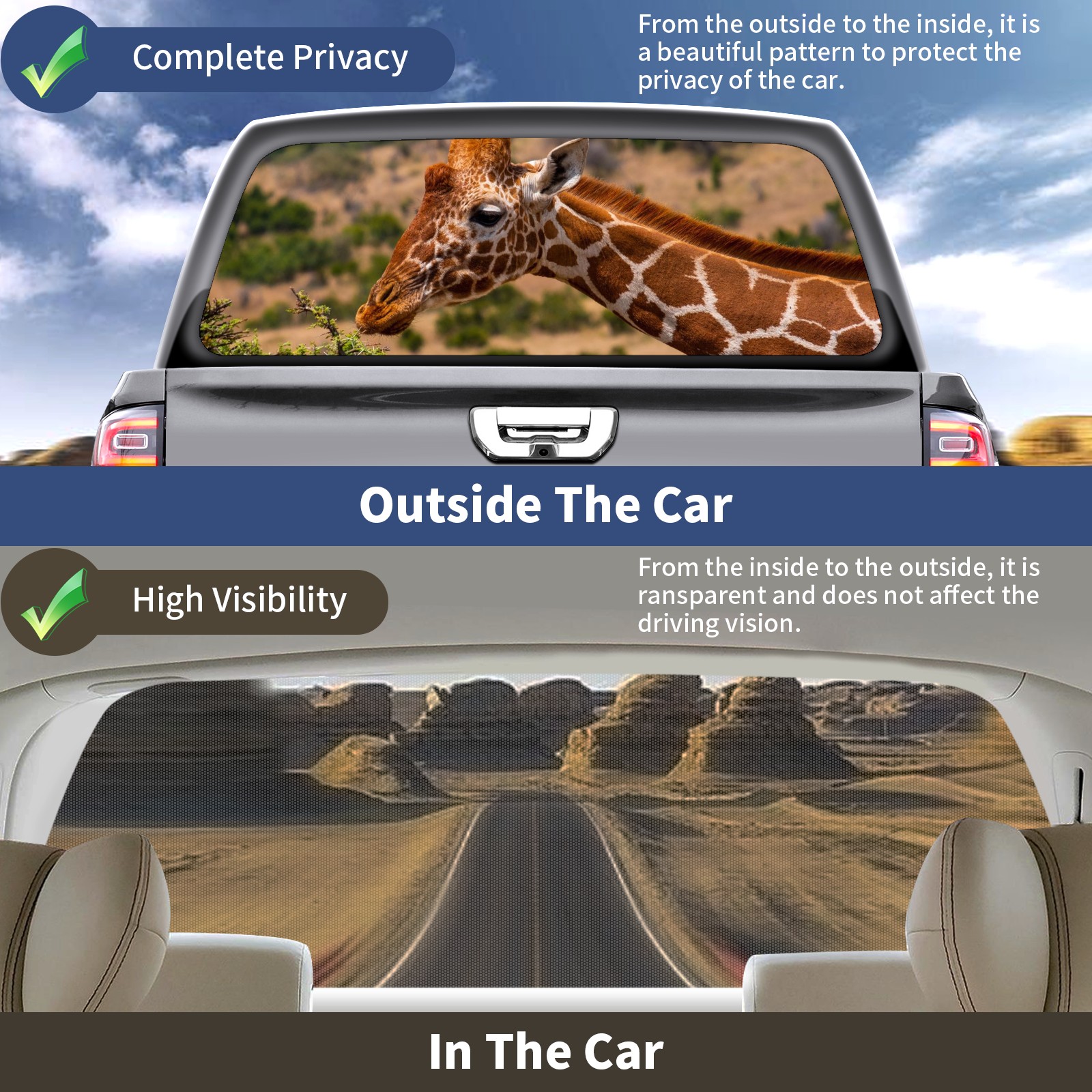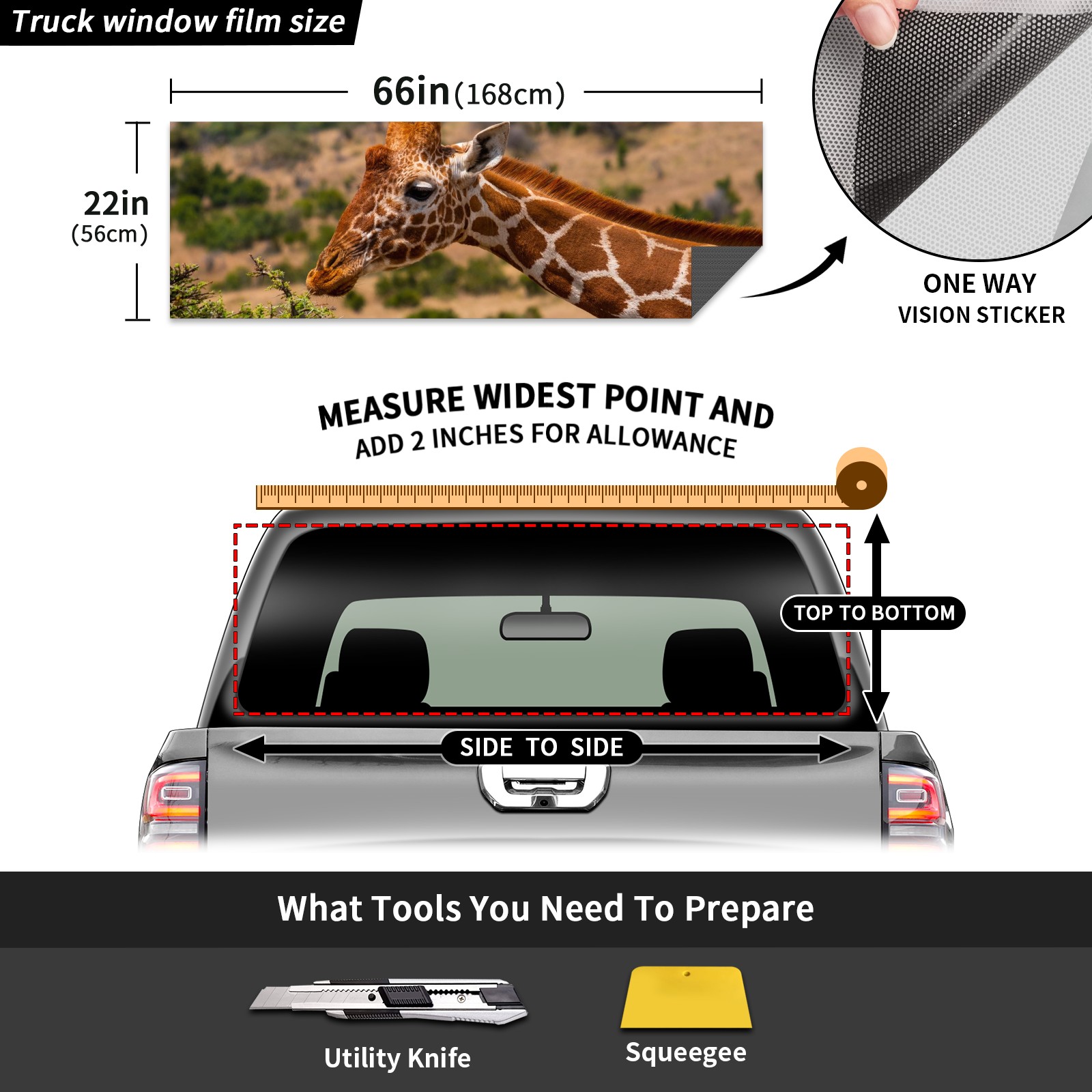 Truck Rear Window Graphics Decals Pickup Trucks Back Window Sticker Full Window Film Decal One Way Visual Waterproof Car Rear Tint 7