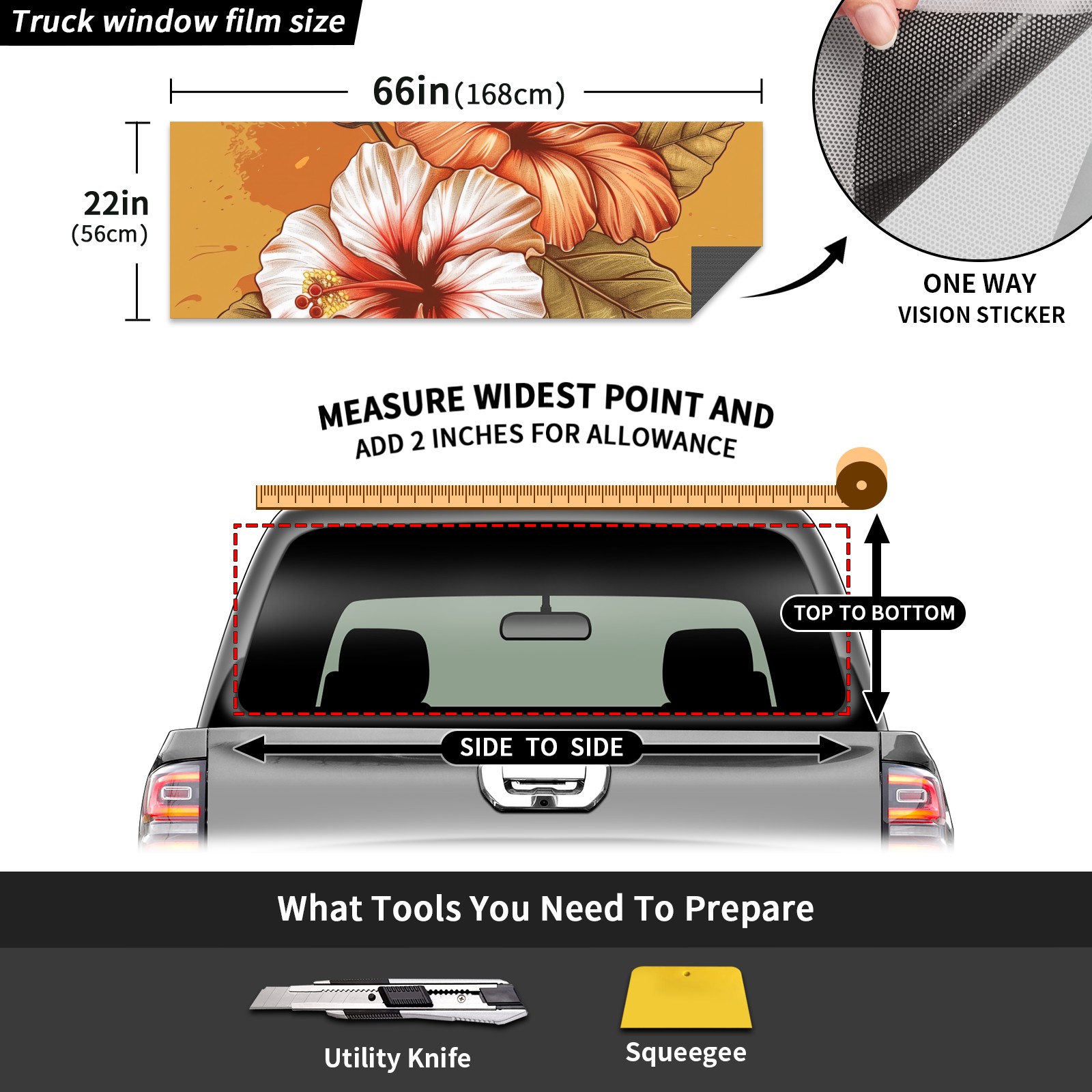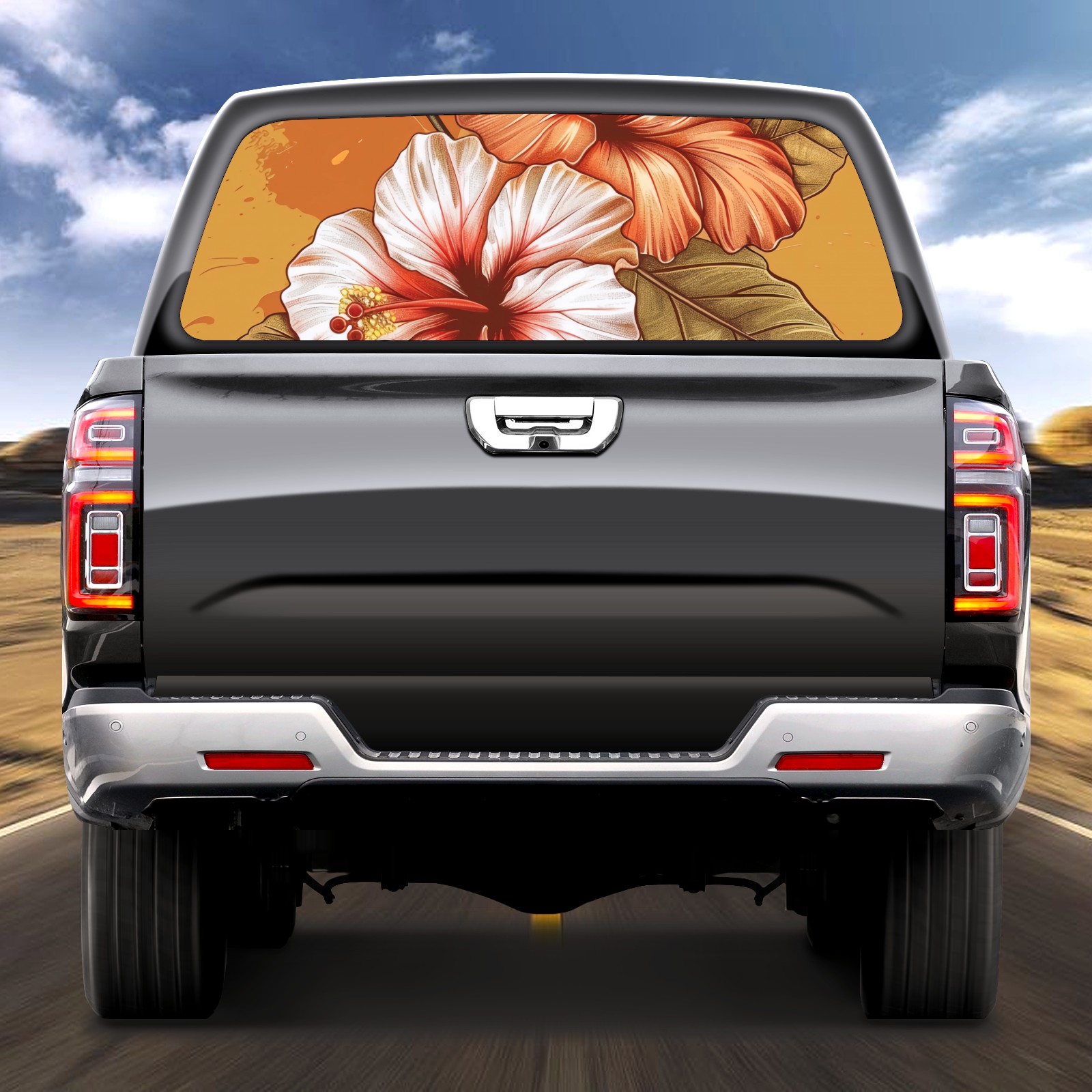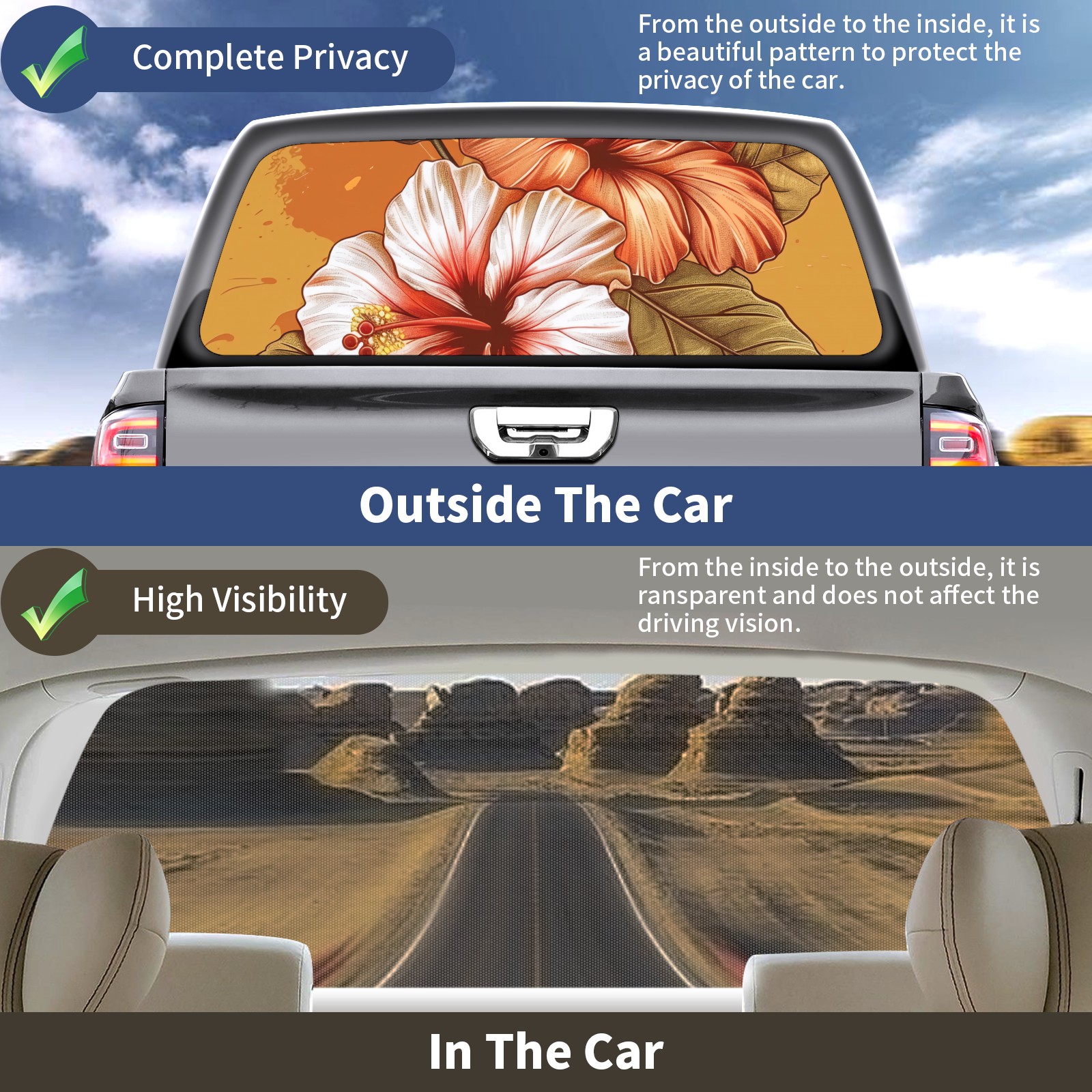 Truck Rear Window Graphics Decals Pickup Trucks Back Window Sticker Full Window Film Decal One Way Visual Waterproof Car Rear Tint Cotton Rose Hibiscus