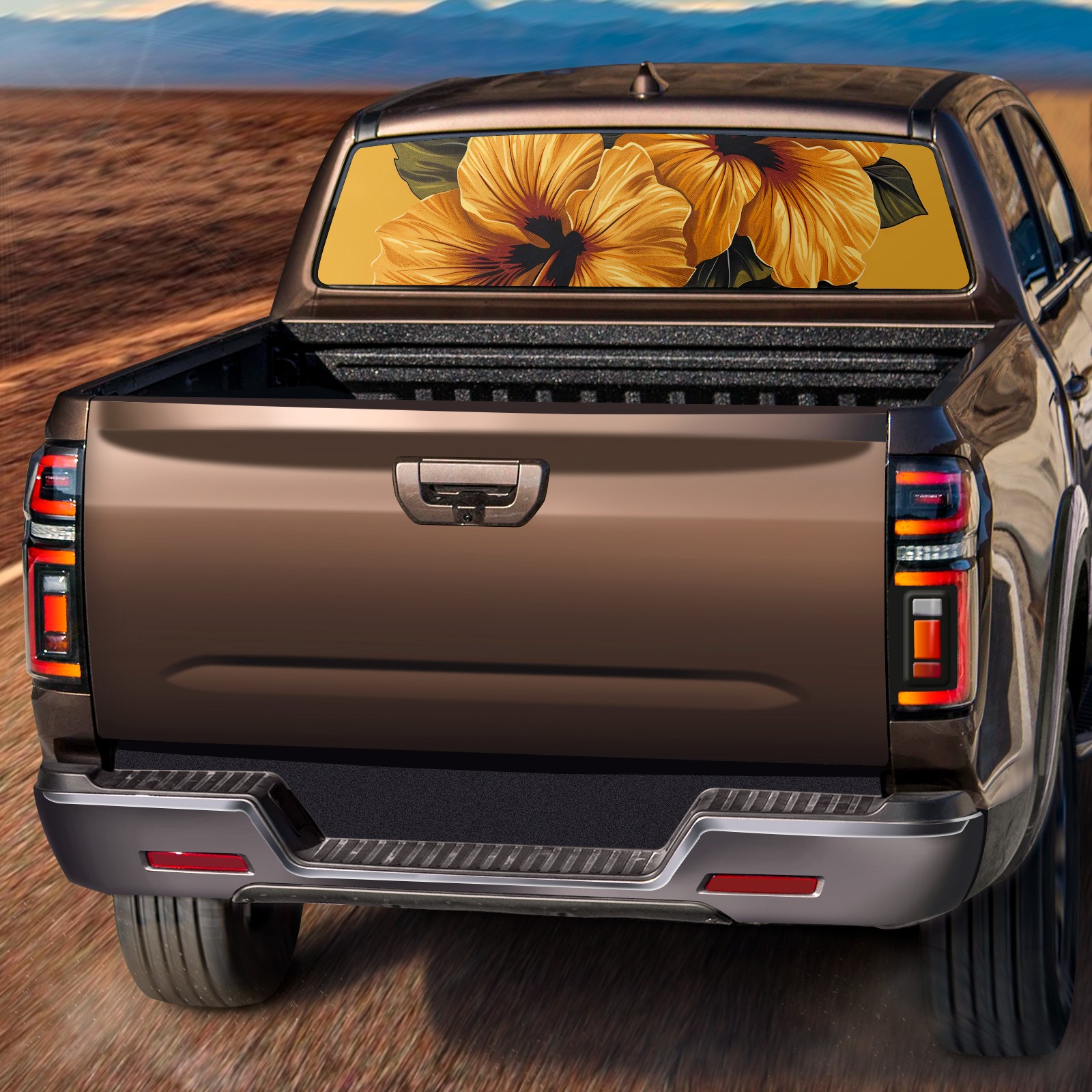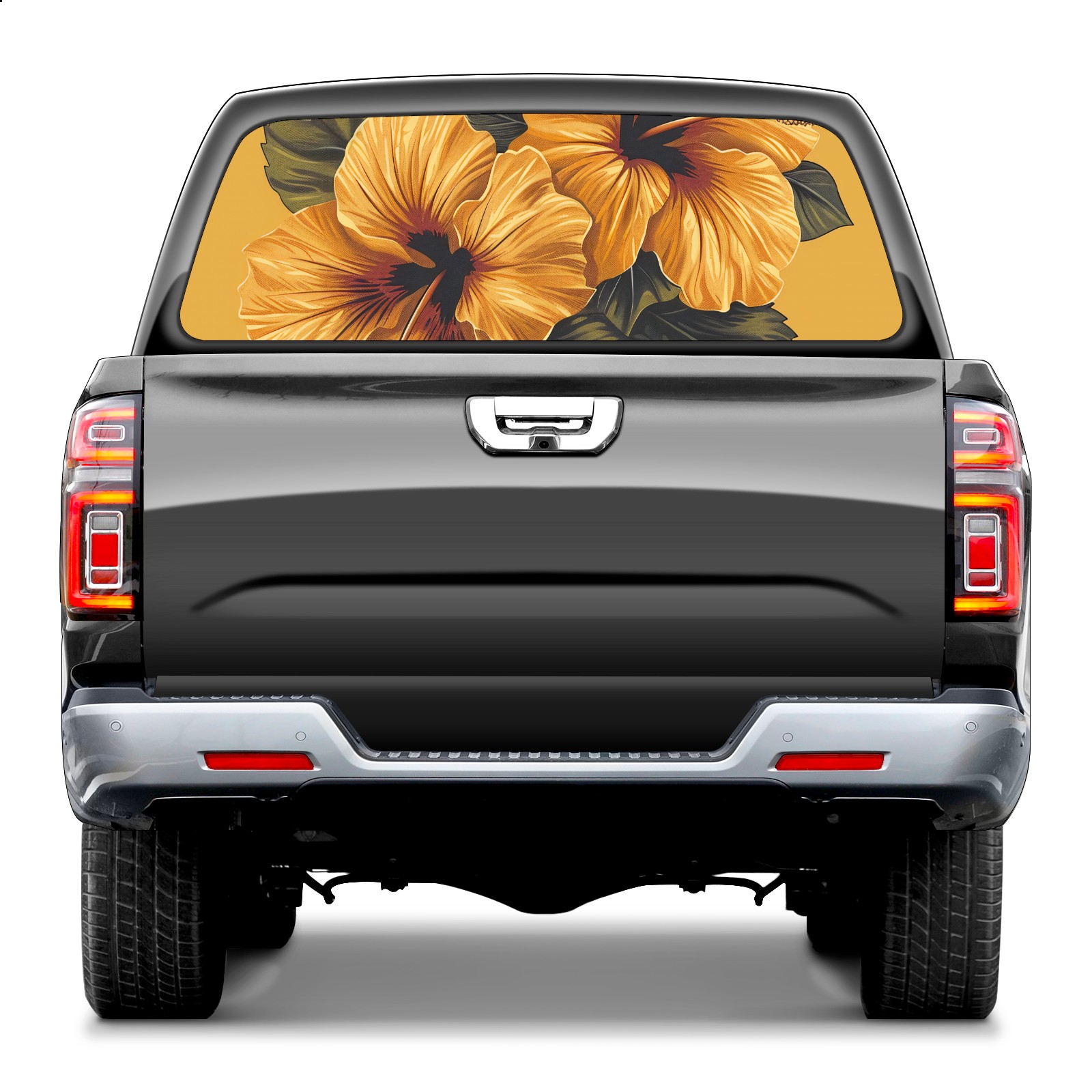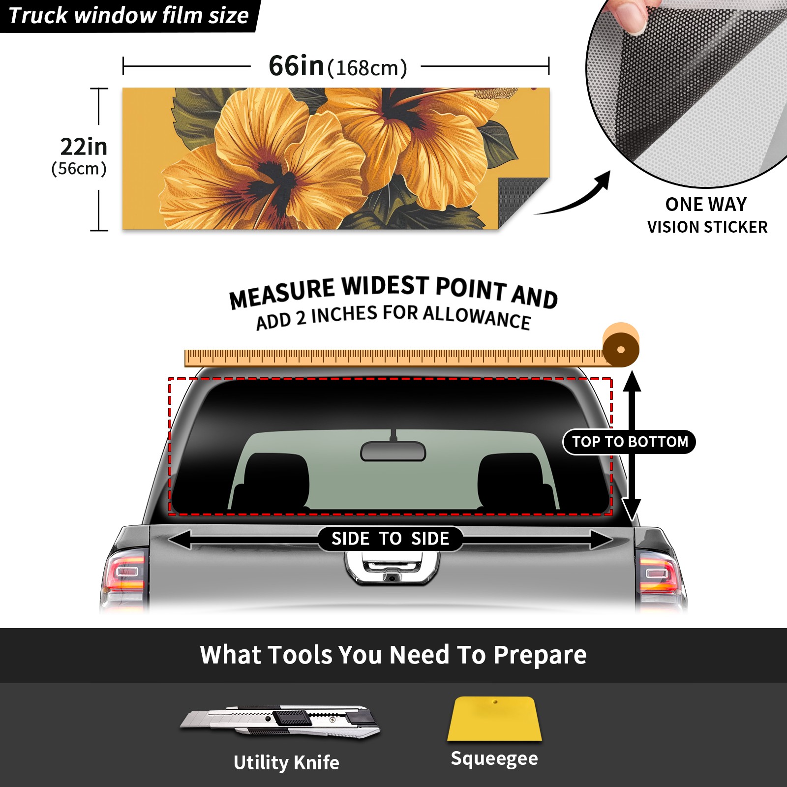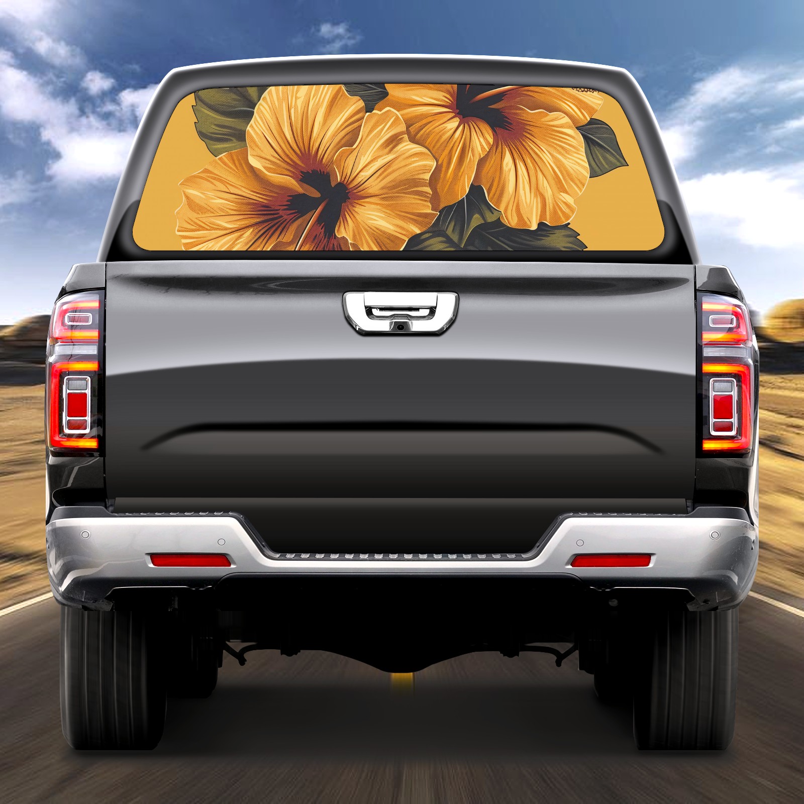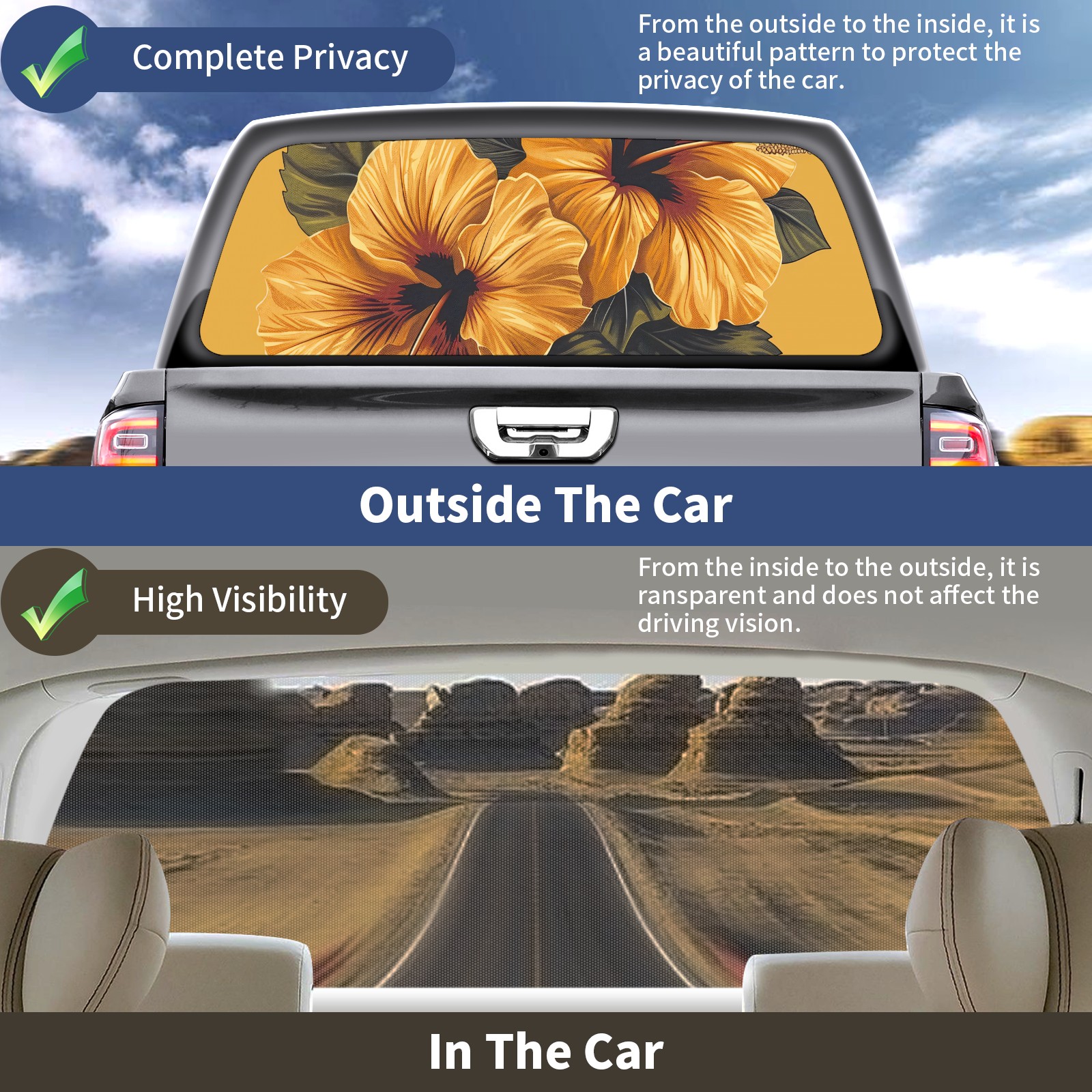 Truck Rear Window Graphics Decals Pickup Trucks Back Window Sticker Full Window Film Decal One Way Visual Waterproof Car Rear Tint Cotton Rose Hibiscus A