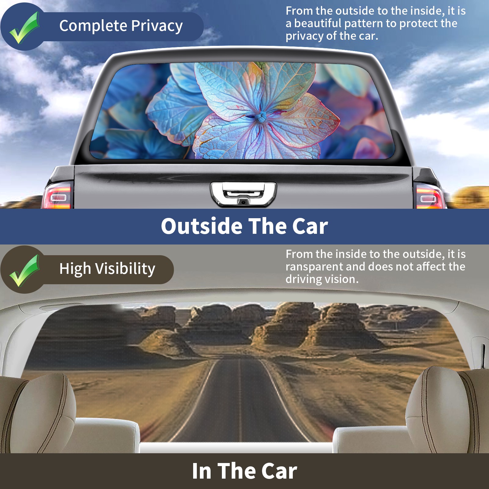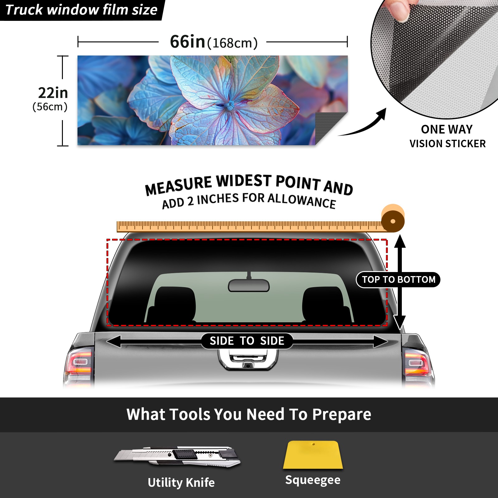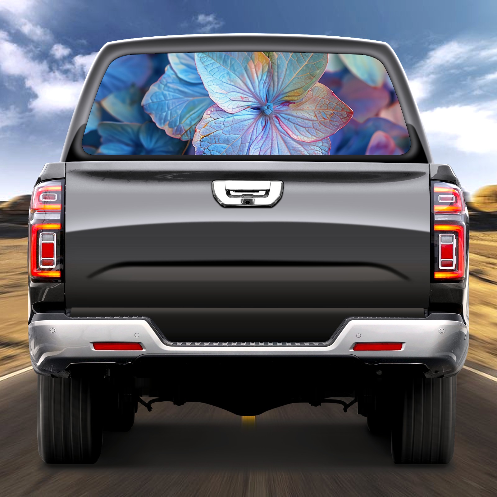 Truck Rear Window Graphics Decals Pickup Trucks Back Window Sticker Full Window Film Decal One Way Visual Waterproof Car Rear Tint Hydrangea A