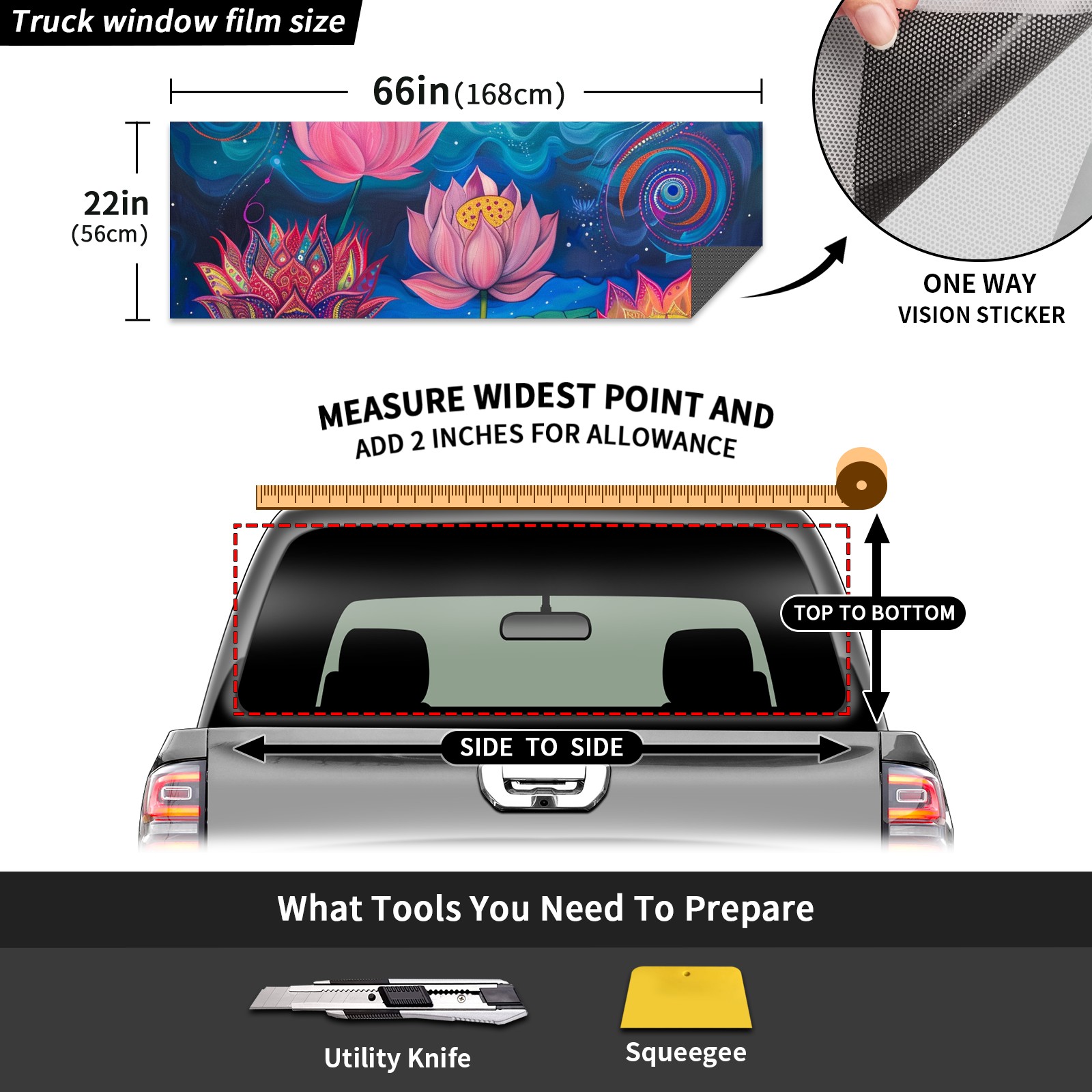 Truck Rear Window Graphics Decals Pickup Trucks Back Window Sticker Full Window Film Decal One Way Visual Waterproof Car Rear Tint Lotus