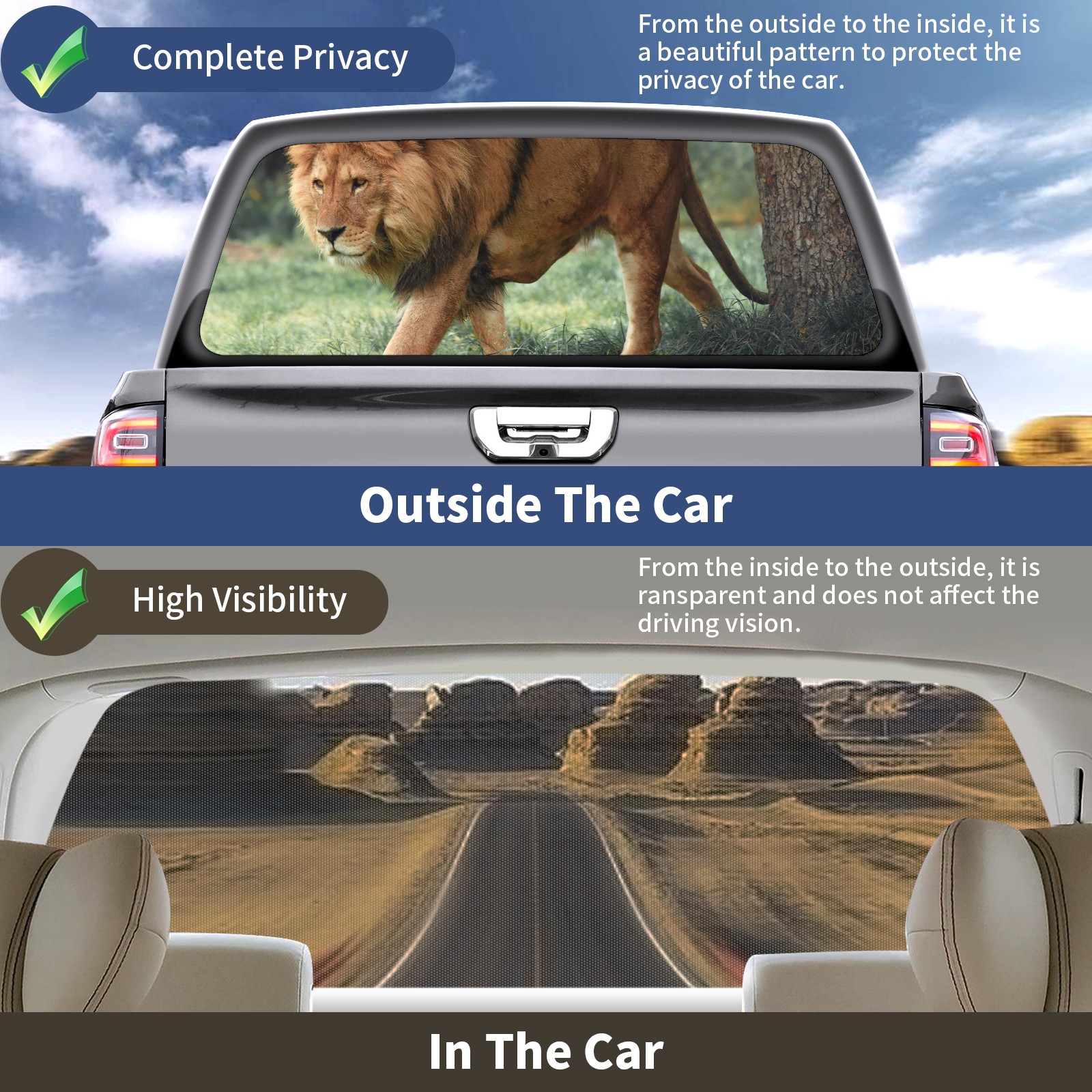 Truck Rear Window Graphics Decals Pickup Trucks Back Window Sticker Full Window Film Decal One Way Visual Waterproof Car Rear Tint Animal Lion(1)