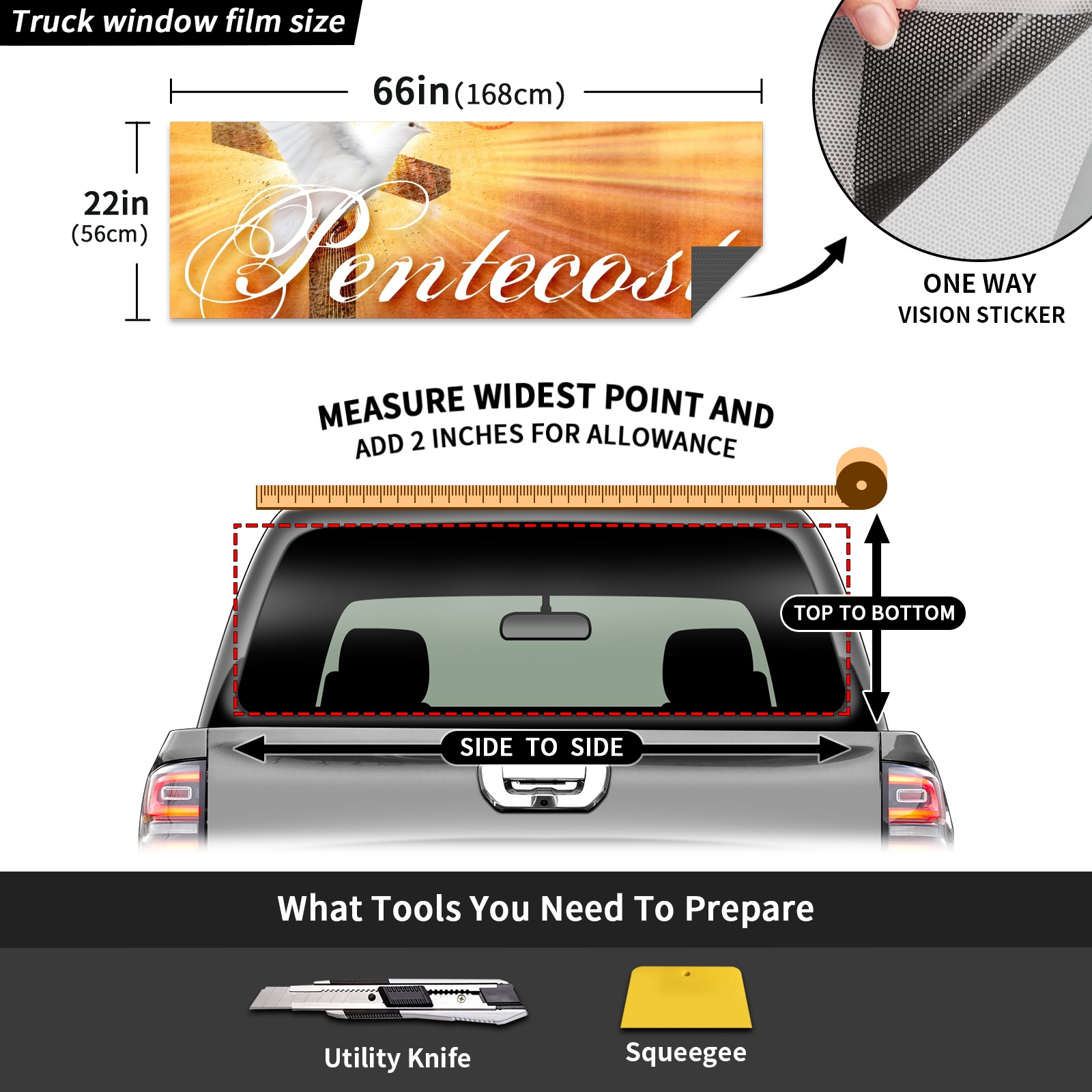 Truck Rear Window Graphics Decals Pickup Trucks Back Window Sticker Full Window Film Decal One Way Visual Waterproof Car Rear Tint Pentecost