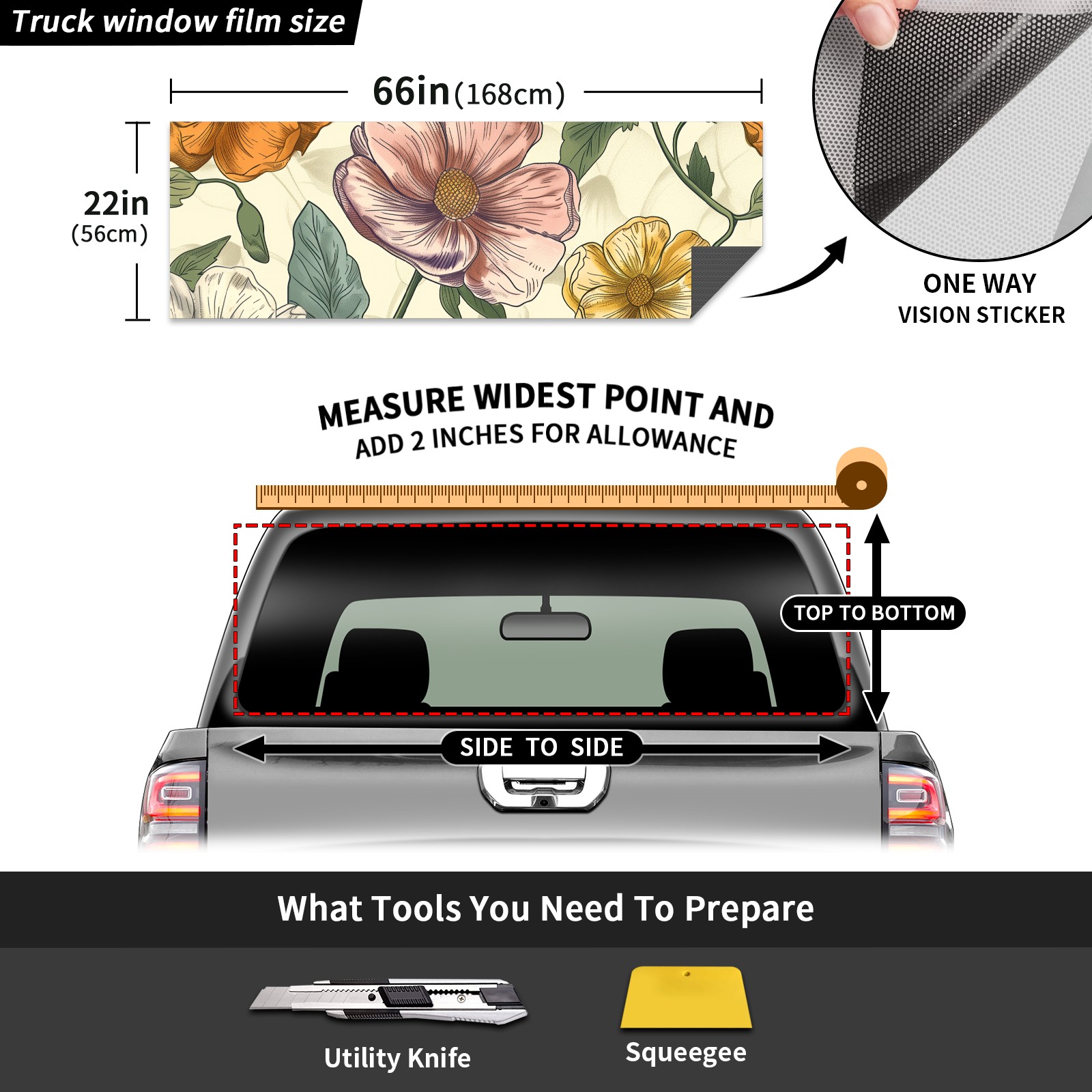 Truck Rear Window Graphics Decals Pickup Trucks Back Window Sticker Full Window Film Decal One Way Visual Waterproof Car Rear Tint Flower (88)