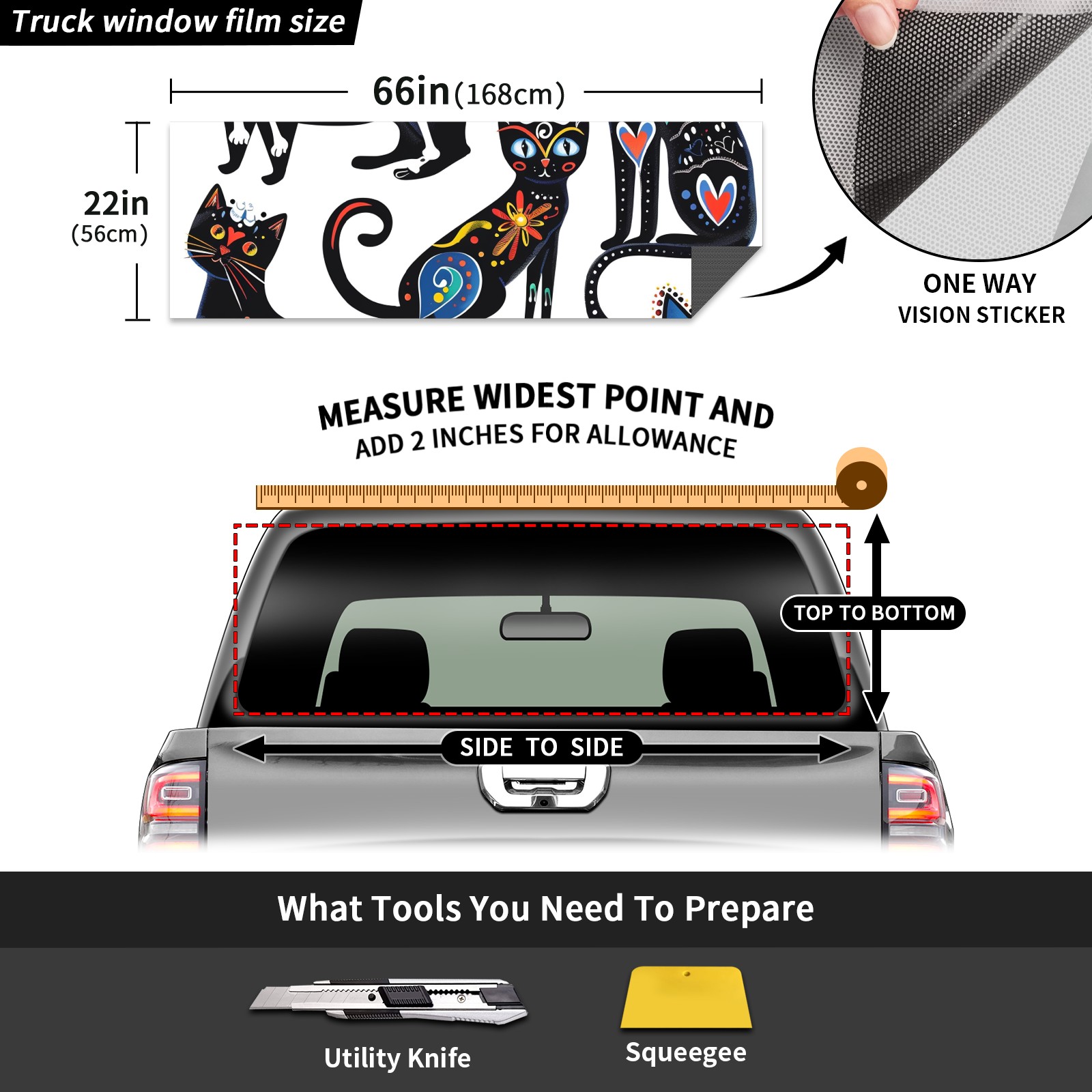 Truck Rear Window Graphics Decals Pickup Trucks Back Window Sticker Full Window Film Decal One Way Visual Waterproof Car Rear Tint Colored Cat