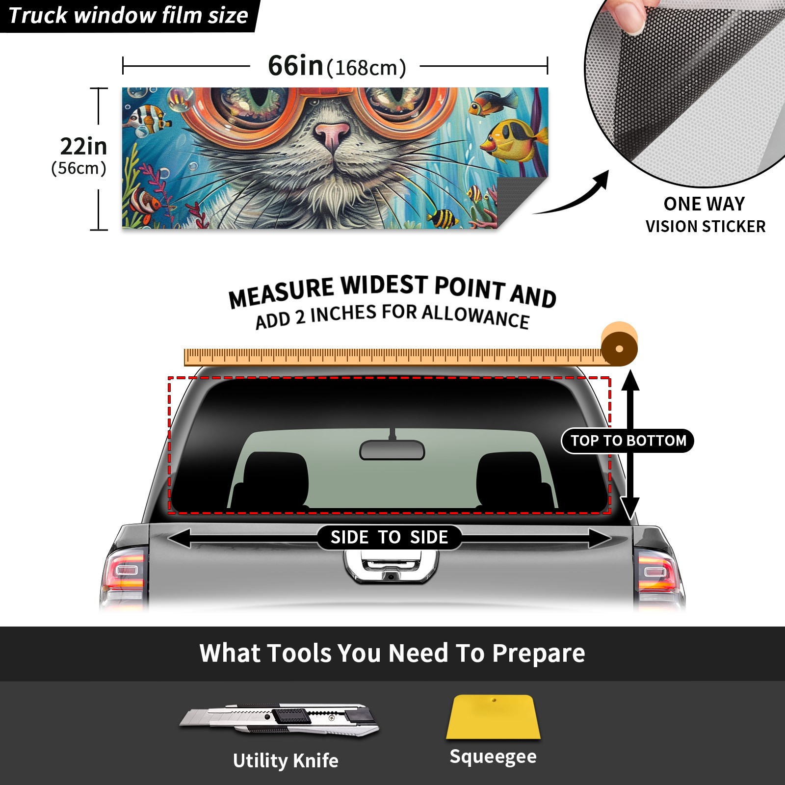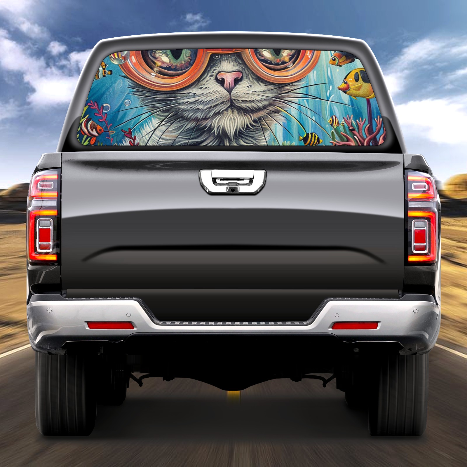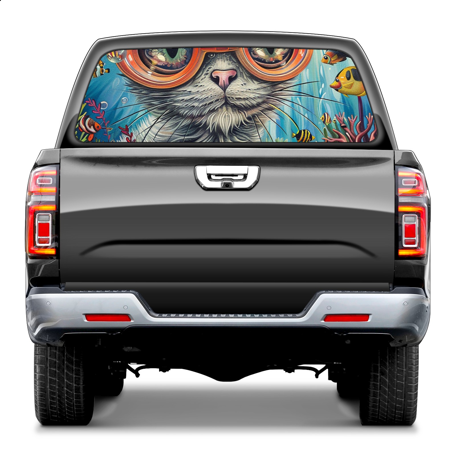 Truck Rear Window Graphics Decals Pickup Trucks Back Window Sticker Full Window Film Decal One Way Visual Waterproof Car Rear Tint Glassy Cat