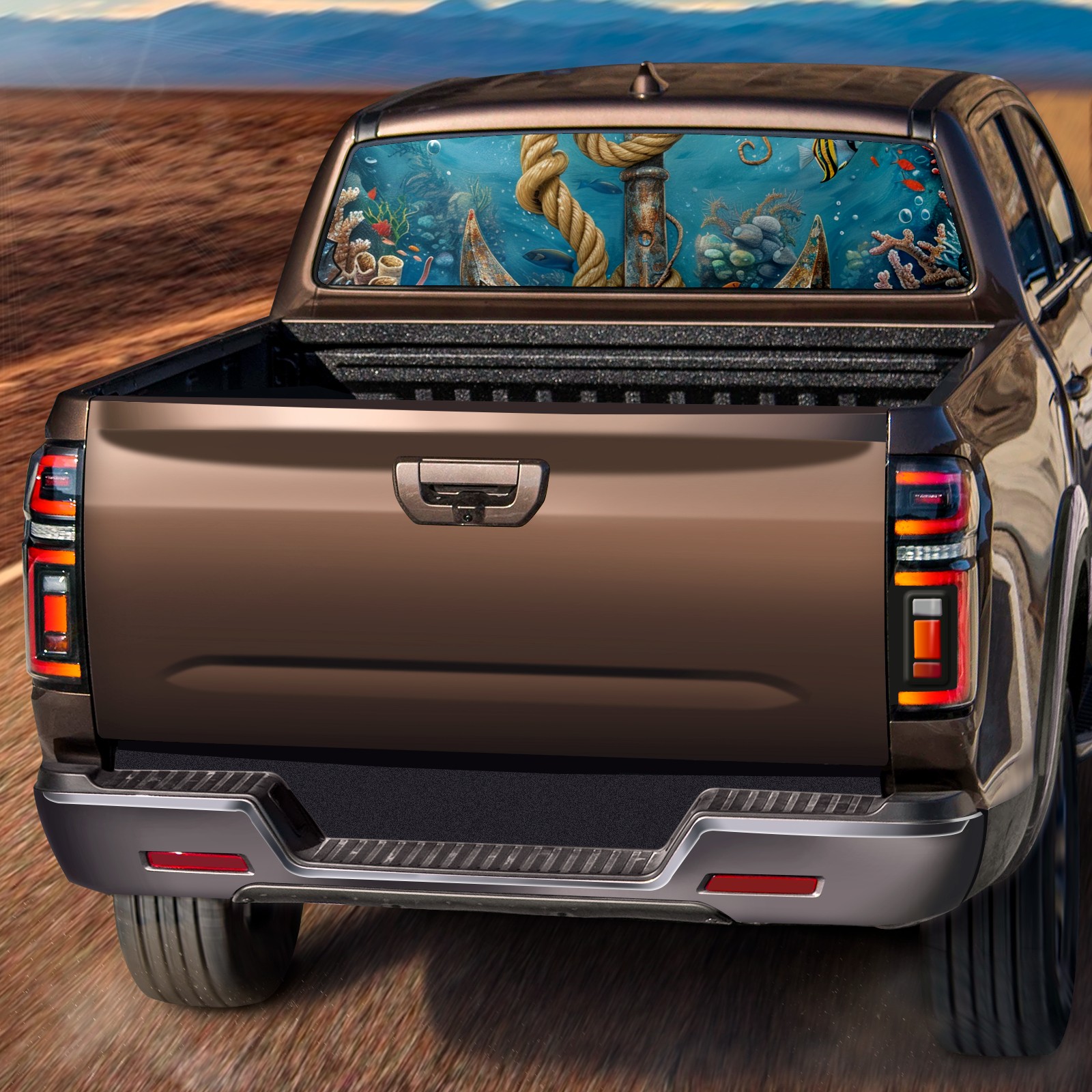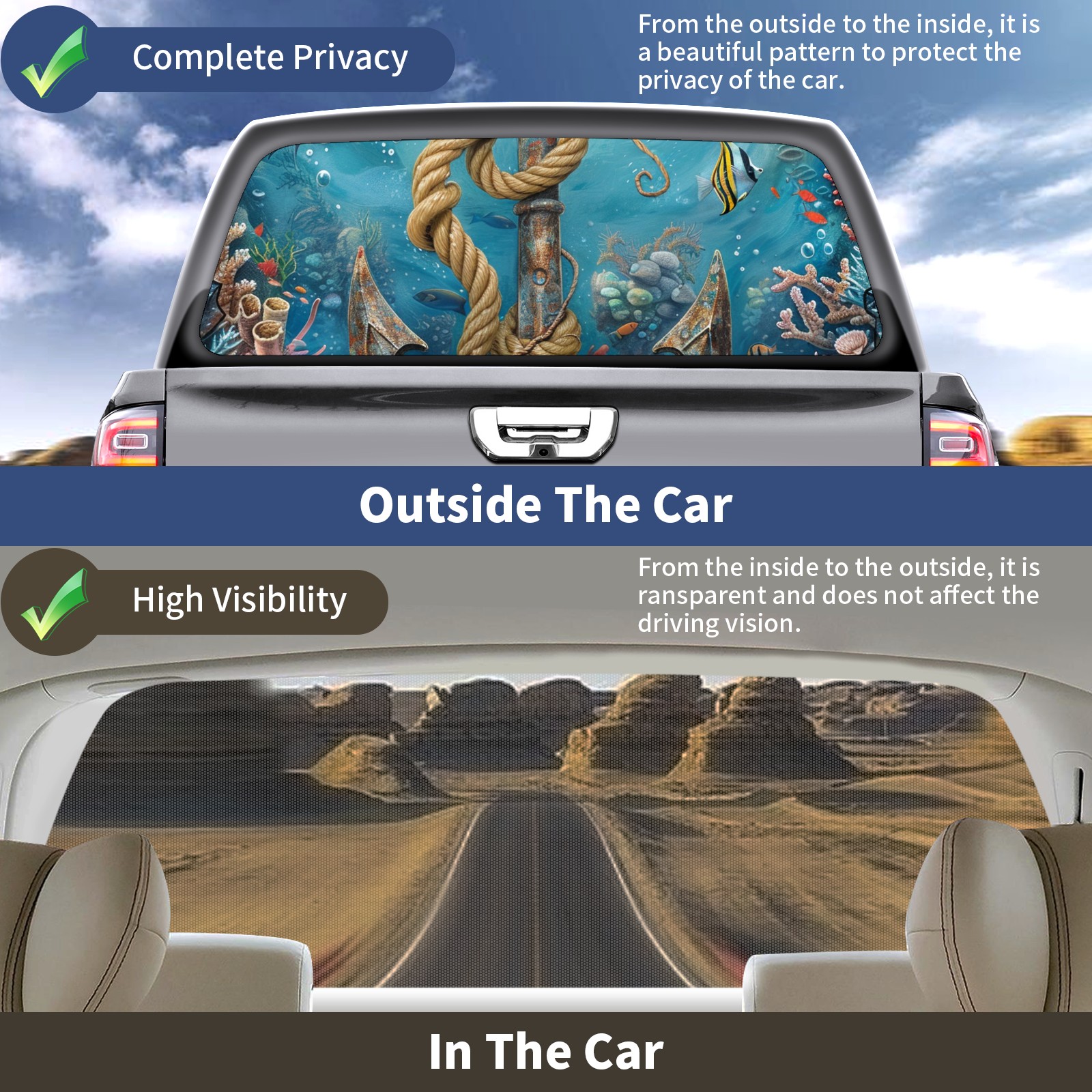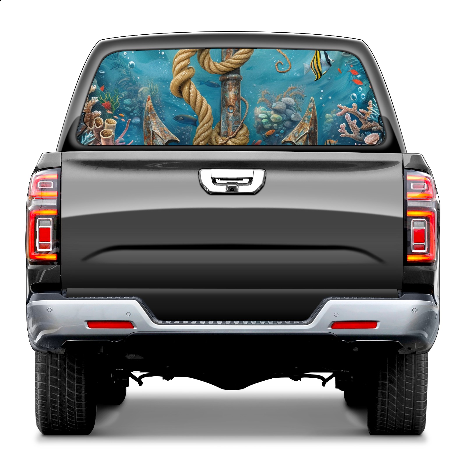Truck Rear Window Graphics Decals Pickup Trucks Back Window Sticker Full Window Film Decal One Way Visual Waterproof Car Rear Tint Underwater World