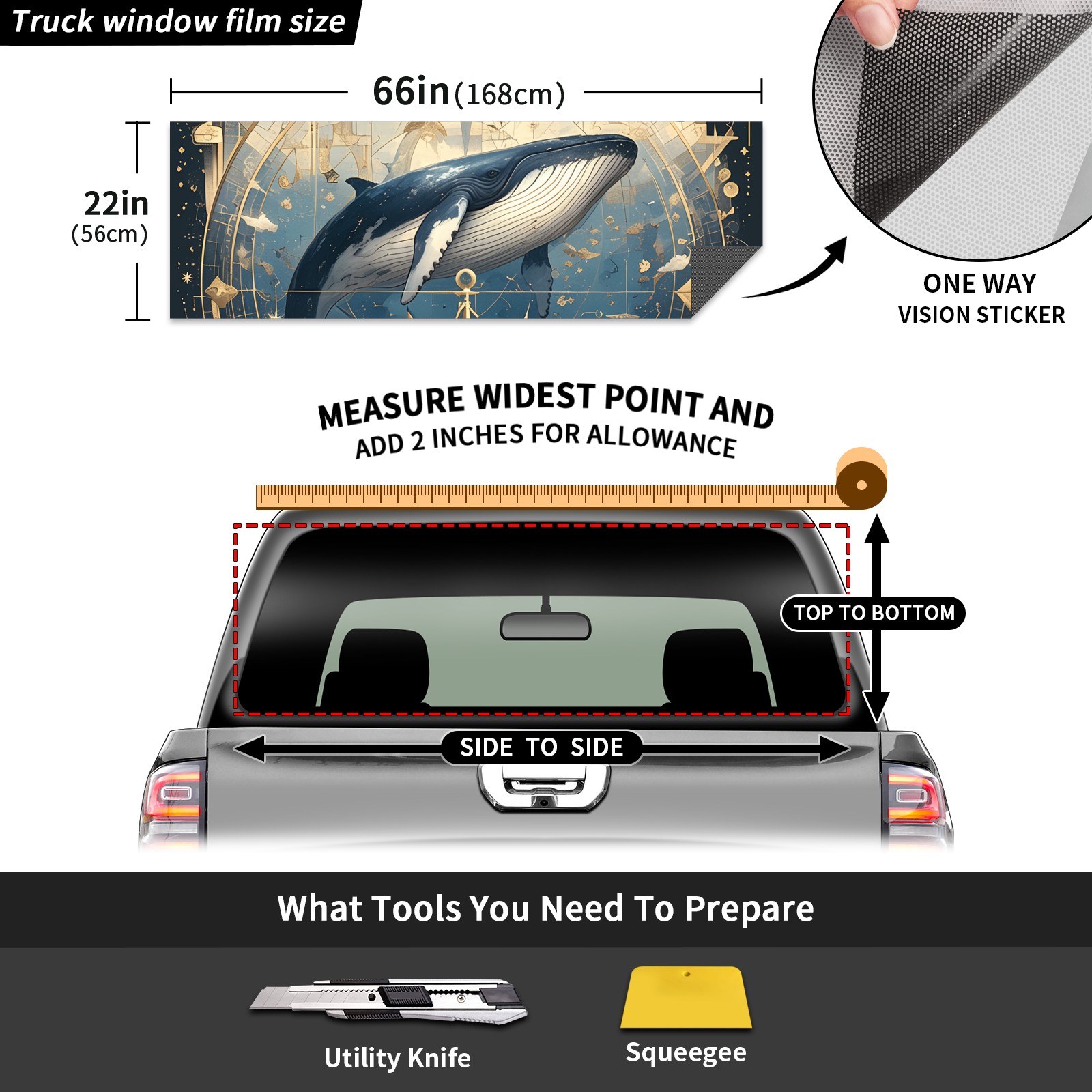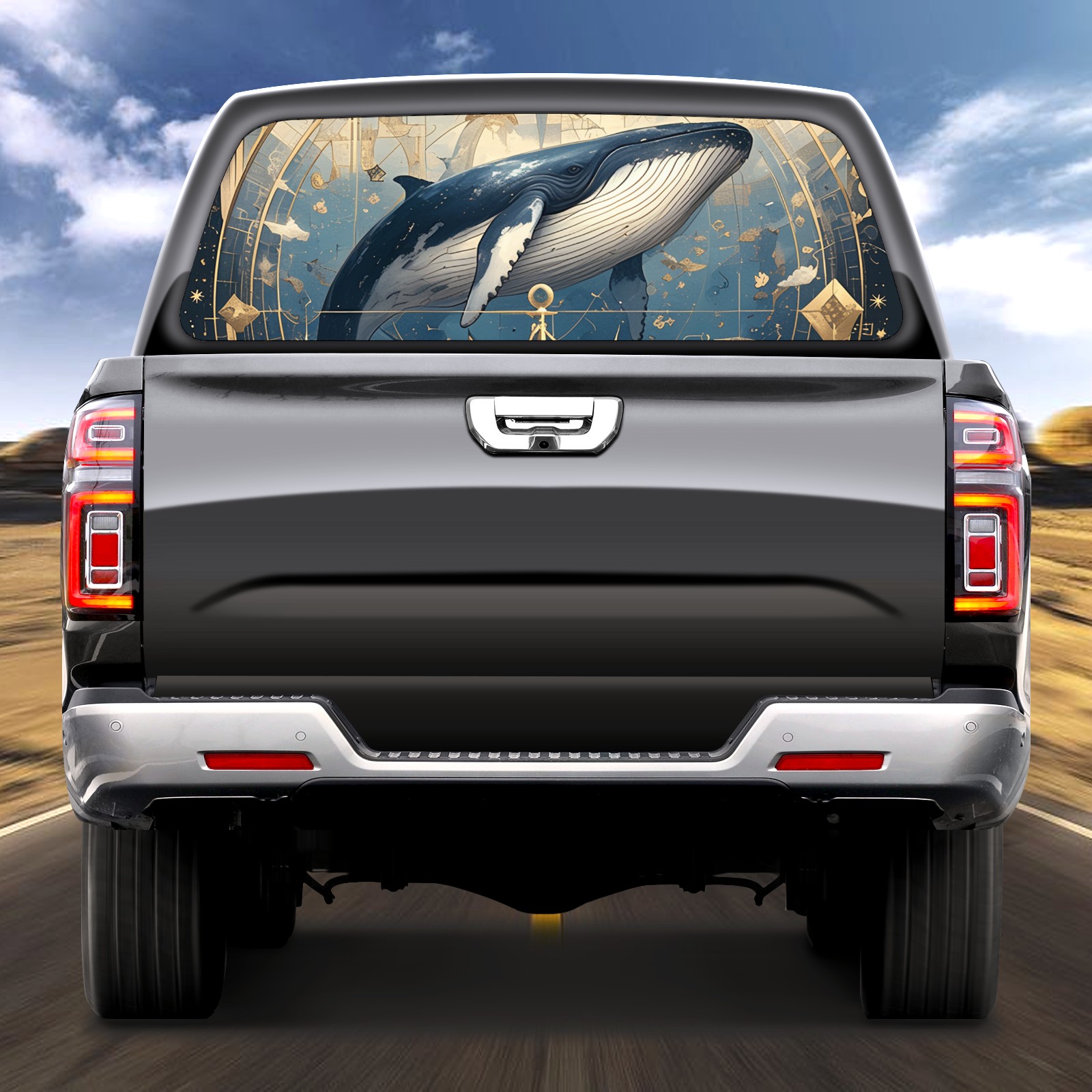 Truck Rear Window Graphics Decals Pickup Trucks Back Window Sticker Full Window Film Decal One Way Visual Waterproof Car Rear Tint Whale