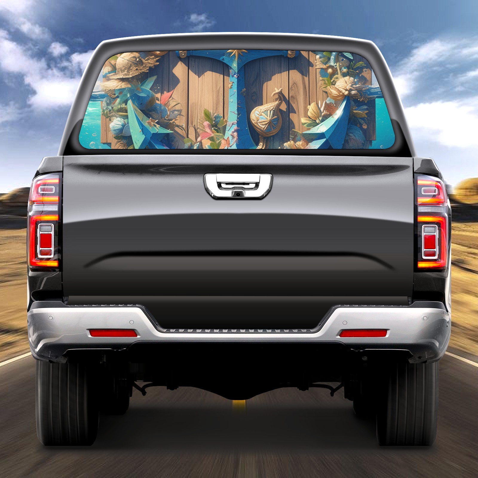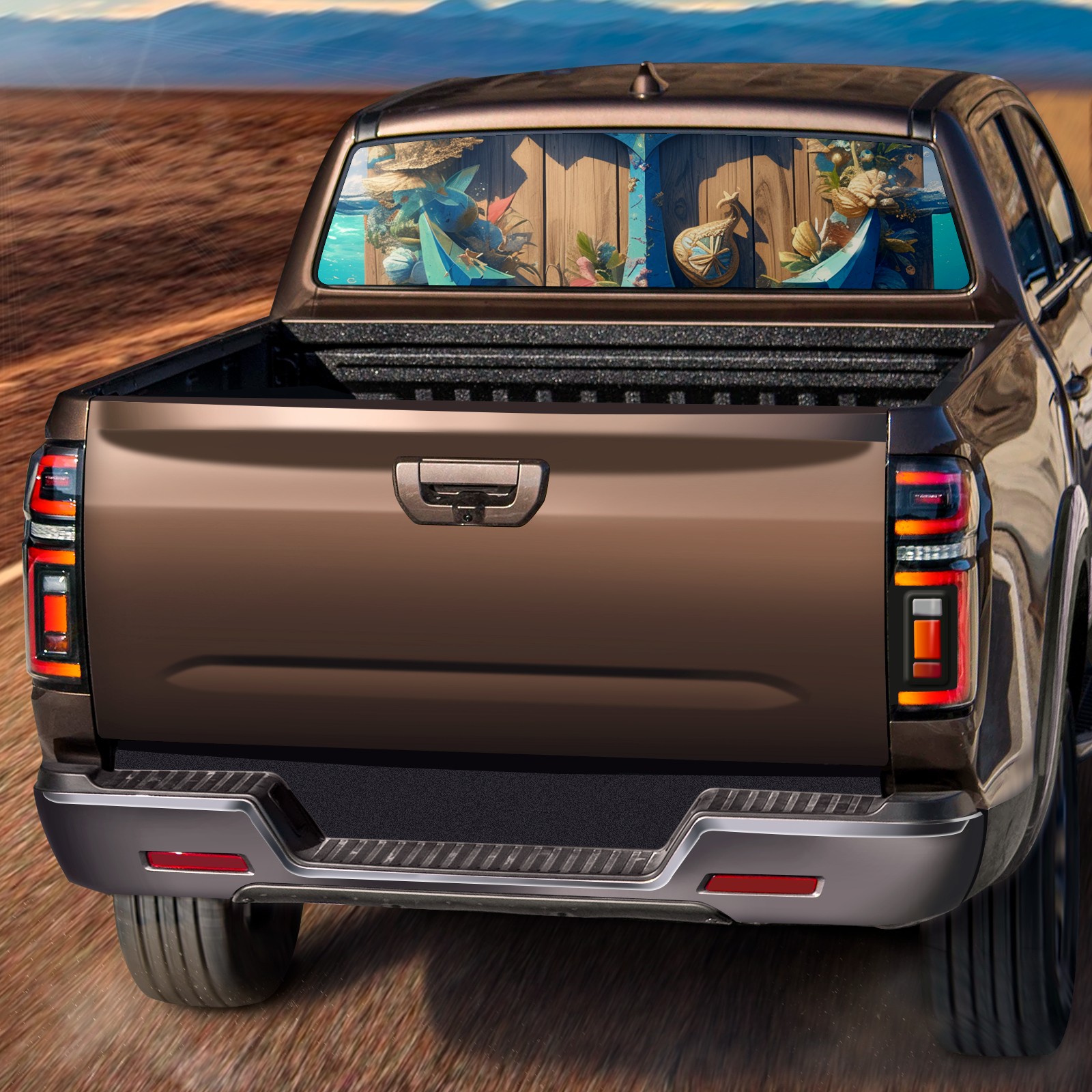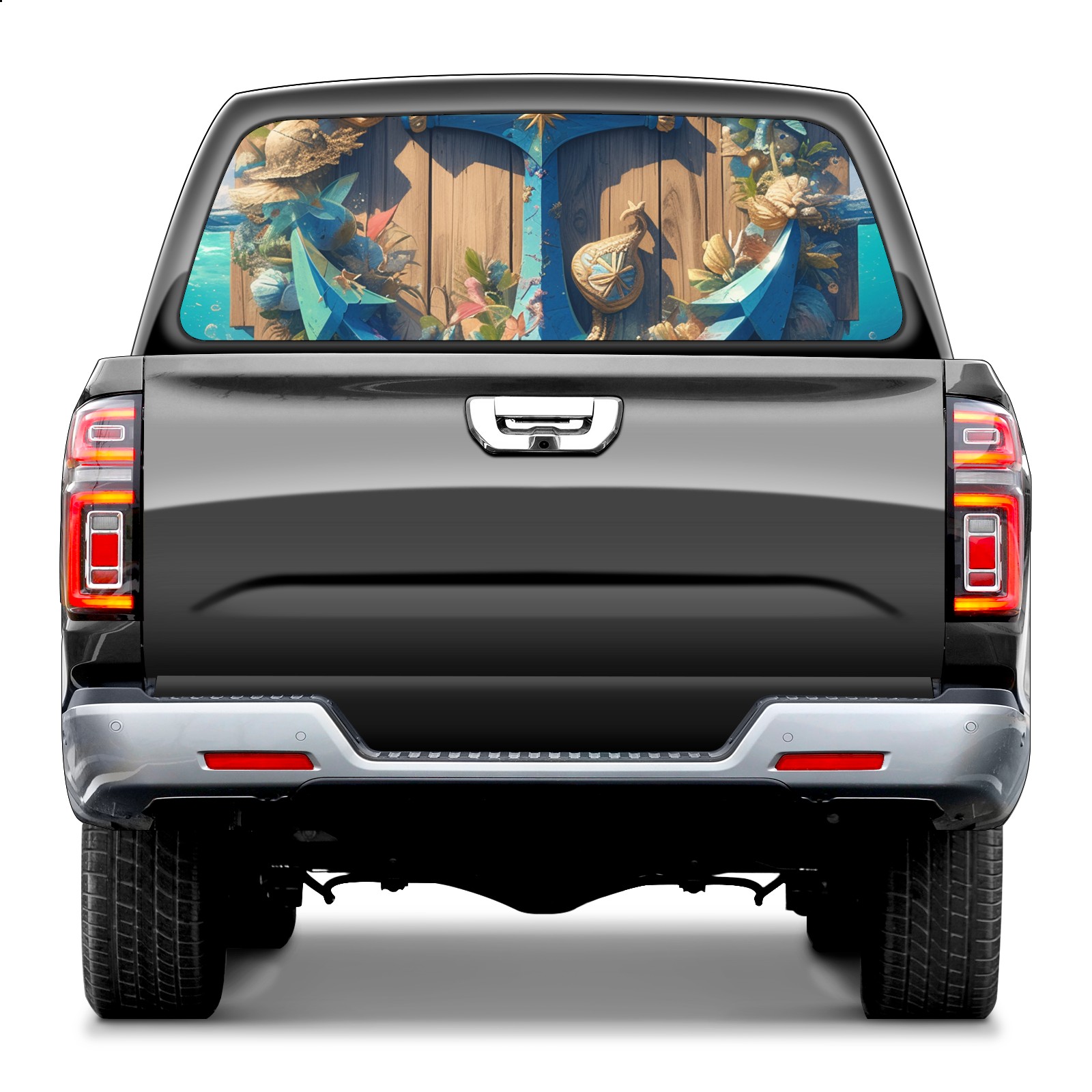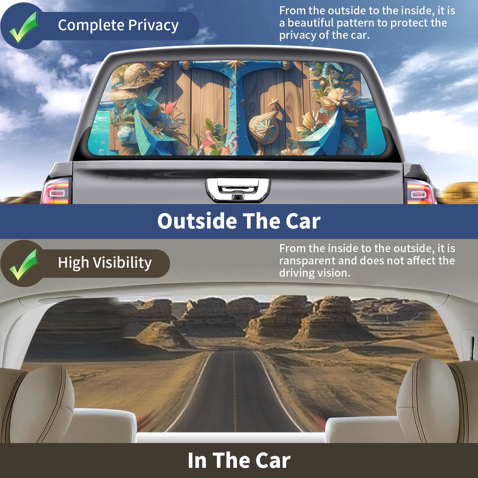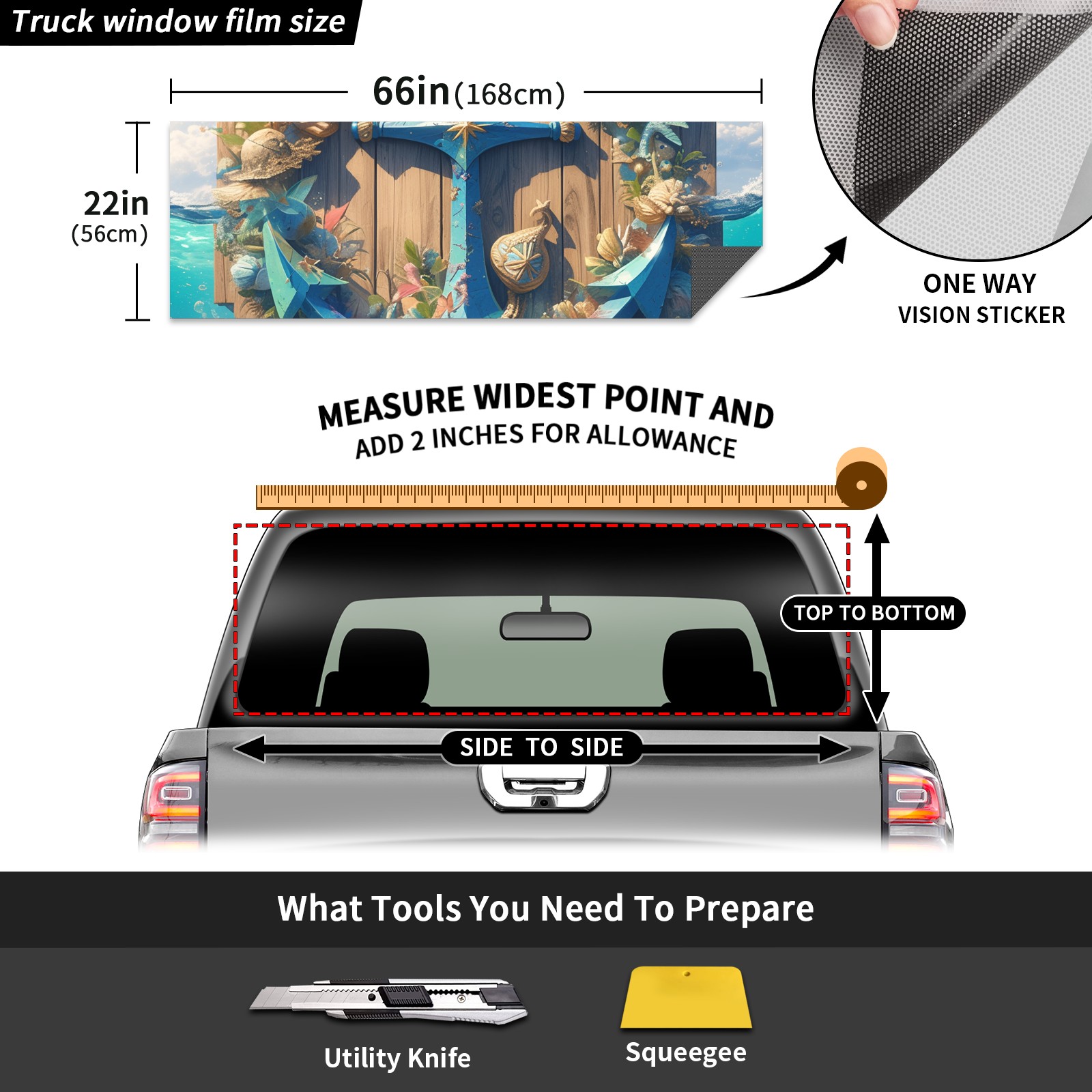 Truck Rear Window Graphics Decals Pickup Trucks Back Window Sticker Full Window Film Decal One Way Visual Waterproof Car Rear Tint Iron Hook