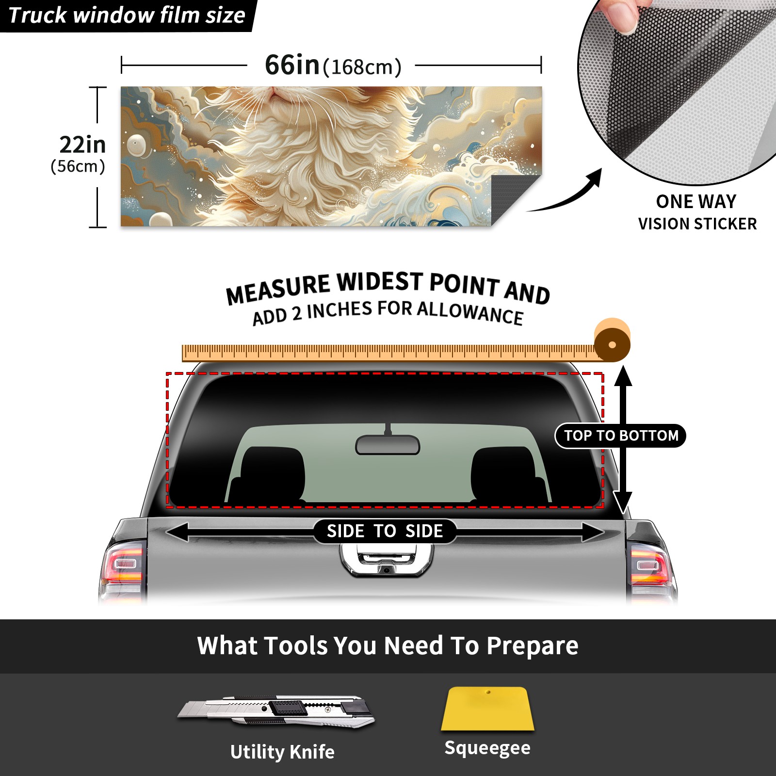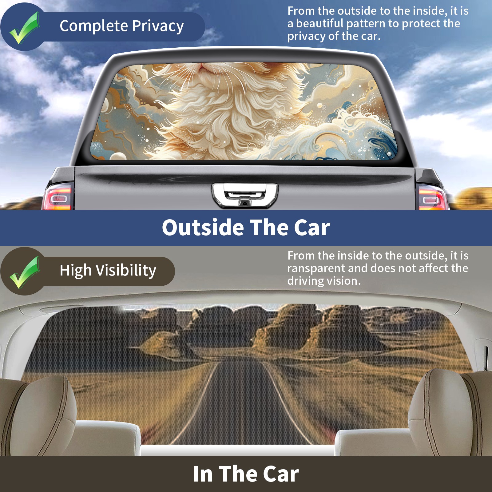 Truck Rear Window Graphics Decals Pickup Trucks Back Window Sticker Full Window Film Decal One Way Visual Waterproof Car Rear Tint Persian Cat