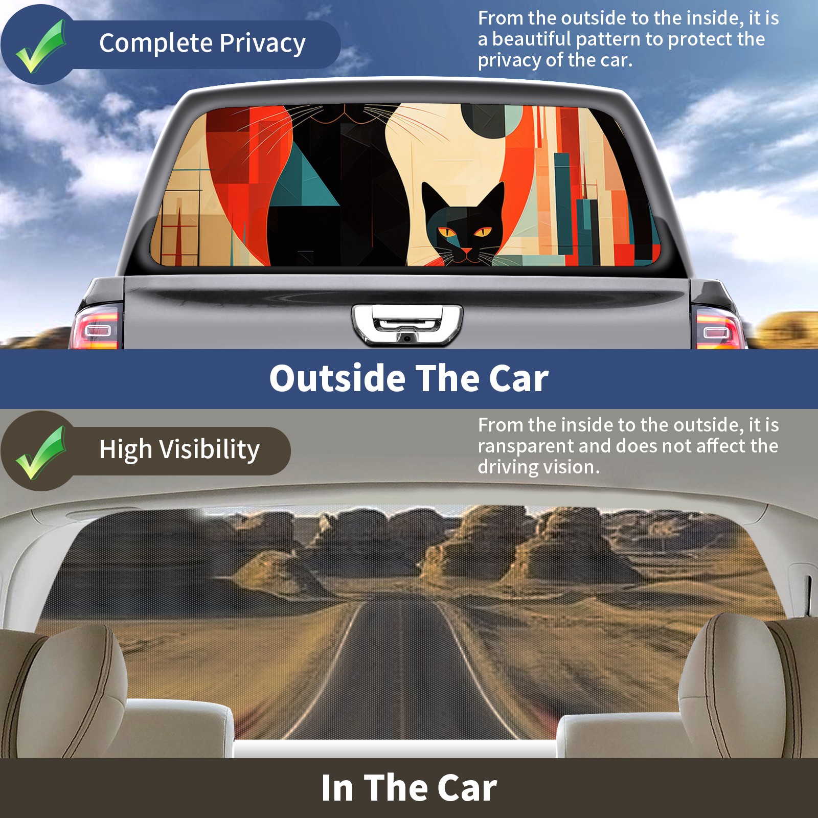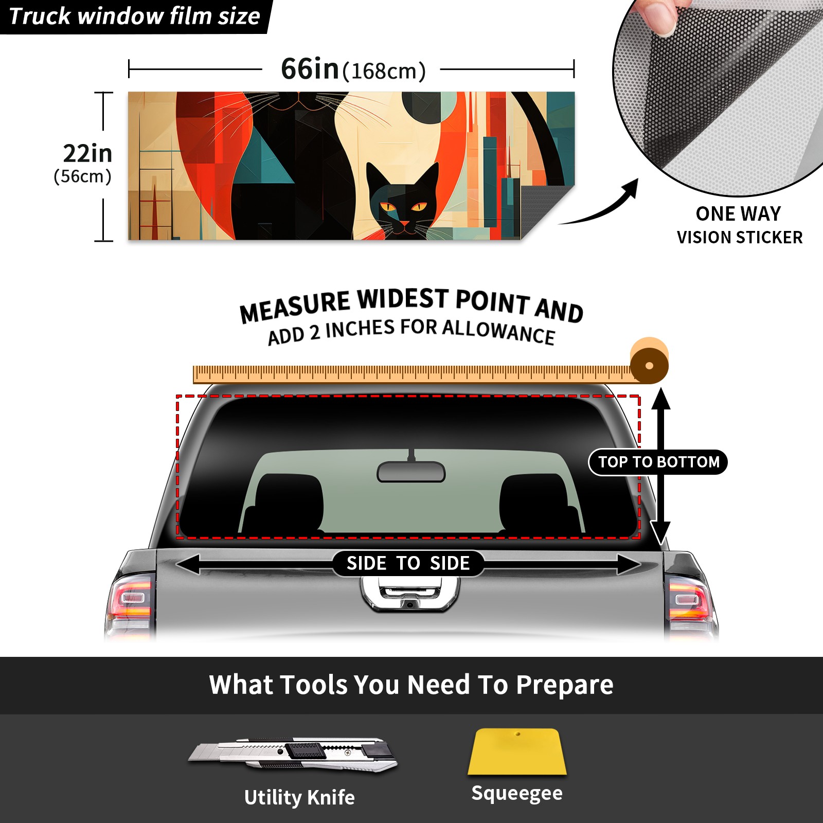 Truck Rear Window Graphics Decals Pickup Trucks Back Window Sticker Full Window Film Decal One Way Visual Waterproof Car Rear Tint Mumbai Cat