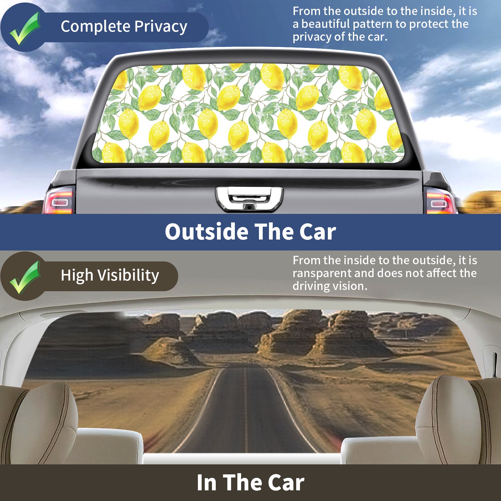 • </b>Window film one-way light transmission Protect your privacy while allowing you to enjoy the scenery outside your window!</b> <br> </b>●Decals Instructions Usage--Teach You To Use Quickly</b> <br> 1.Clean the window galss thoroughly <br> 2.Use a Squeegee or other card to scrape off the remaining water and bumps(don't use too much force) <br> 3.Remove the film's back cover .Use a knife to cut out a suitable contour and wipe off the remaining water(you can also use a hair dryer to blow dry) <br> 4.Find a suitable location and stick a sticker <br> </b>●Unique Design</b> <br> ZXIVGOQFR Back window stickers ‘s smart looking and unique cute design makes your vehicle special under sunshine. Makes your car easy to identify, perfect for finding your car in crowded parking lots and garages.funny visor reflects personality and attitude. <br> </b>●Perfect Gift for all Drivers<br></b> We create all the gifts and accessories you only need to choose what you like. Get full tailgate wraps, rear window decals, and everything you need to make your pickup truck look awesome. <br> </b> Decorate Your Pickup Truck With Rear Window Decal Today!</b>