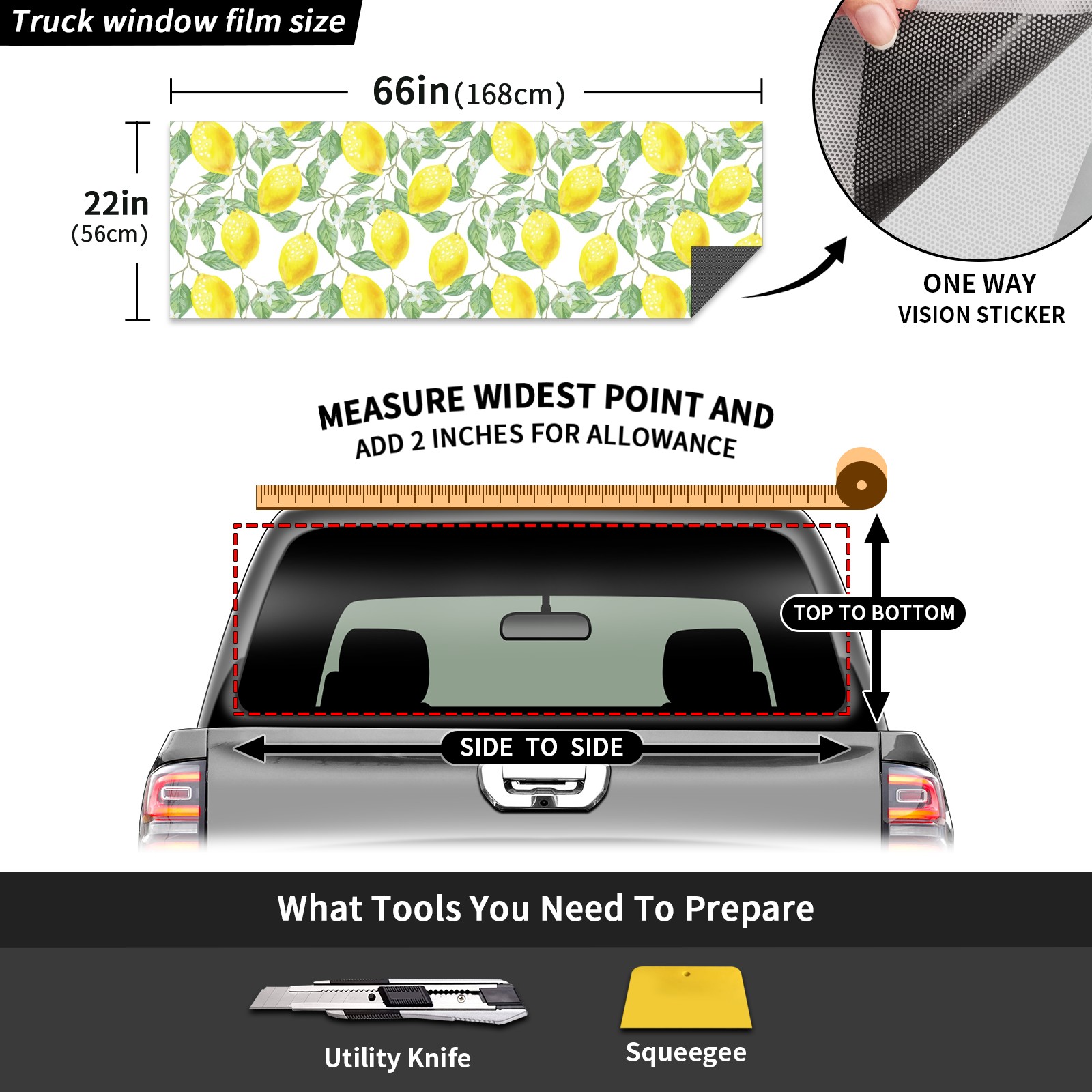 Truck Rear Window Graphics Decals Pickup Trucks Back Window Sticker Full Window Film Decal One Way Visual Waterproof Car Rear Tint Flower3