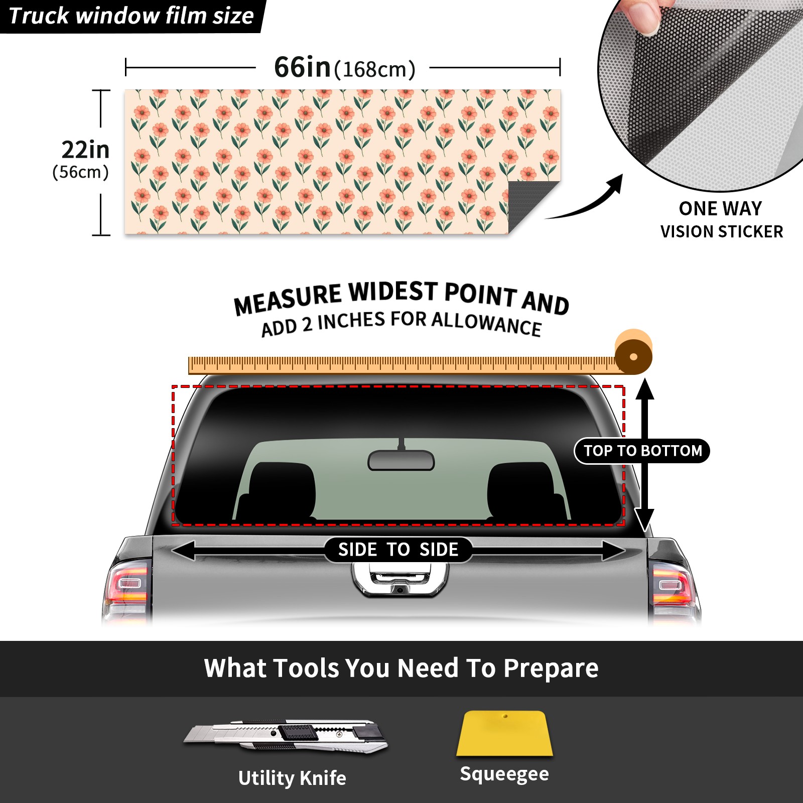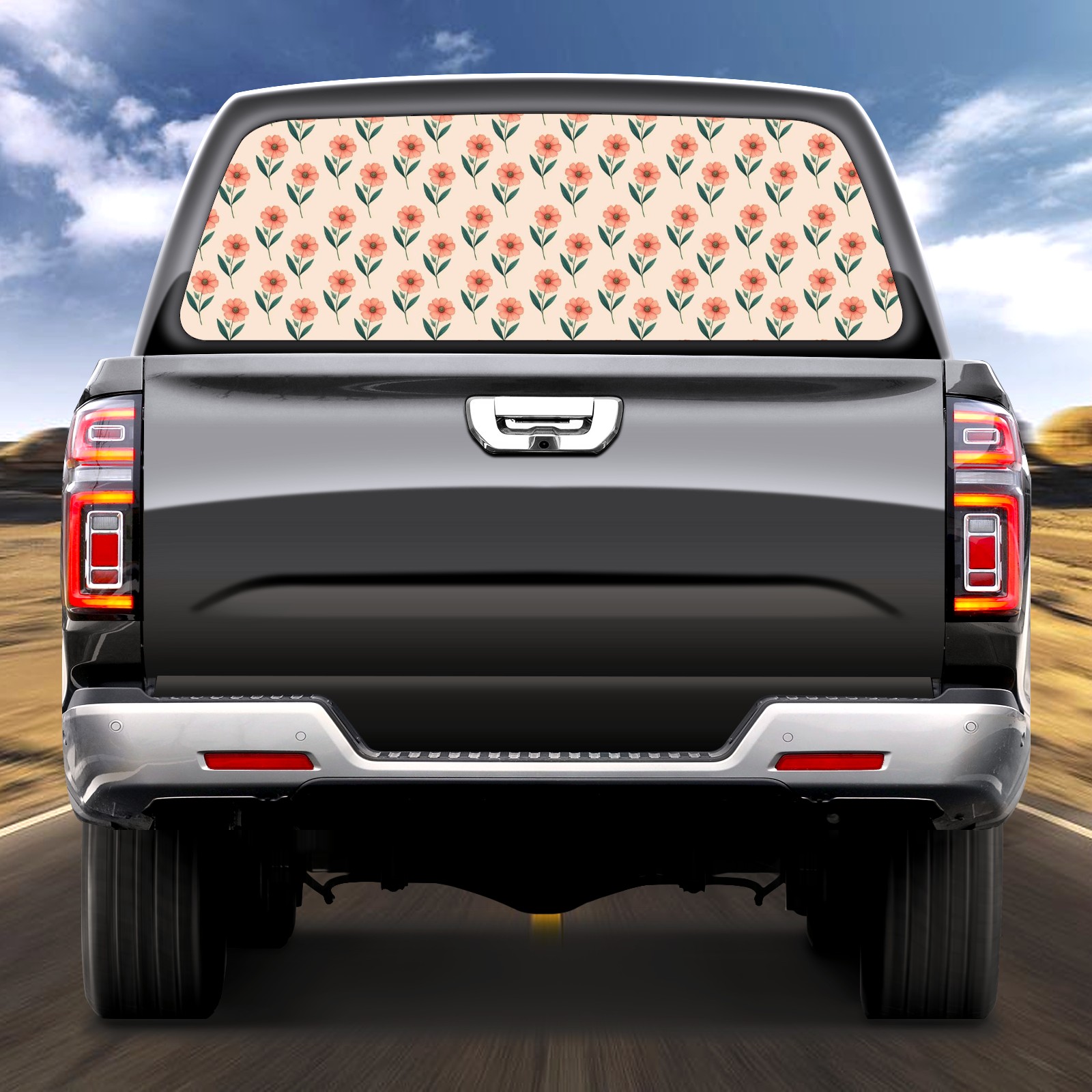 Truck Rear Window Graphics Decals Pickup Trucks Back Window Sticker Full Window Film Decal One Way Visual Waterproof Car Rear Tint Flower2