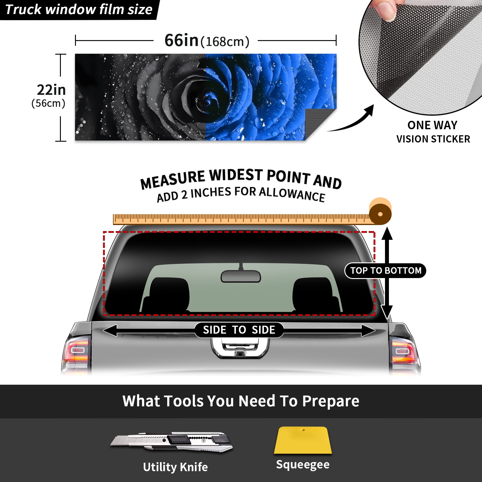 Truck Rear Window Graphics Decals Pickup Trucks Back Window Sticker Full Window Film Decal One Way Visual Waterproof Car Rear Tint Black Blue Rose (1)(1)(1)