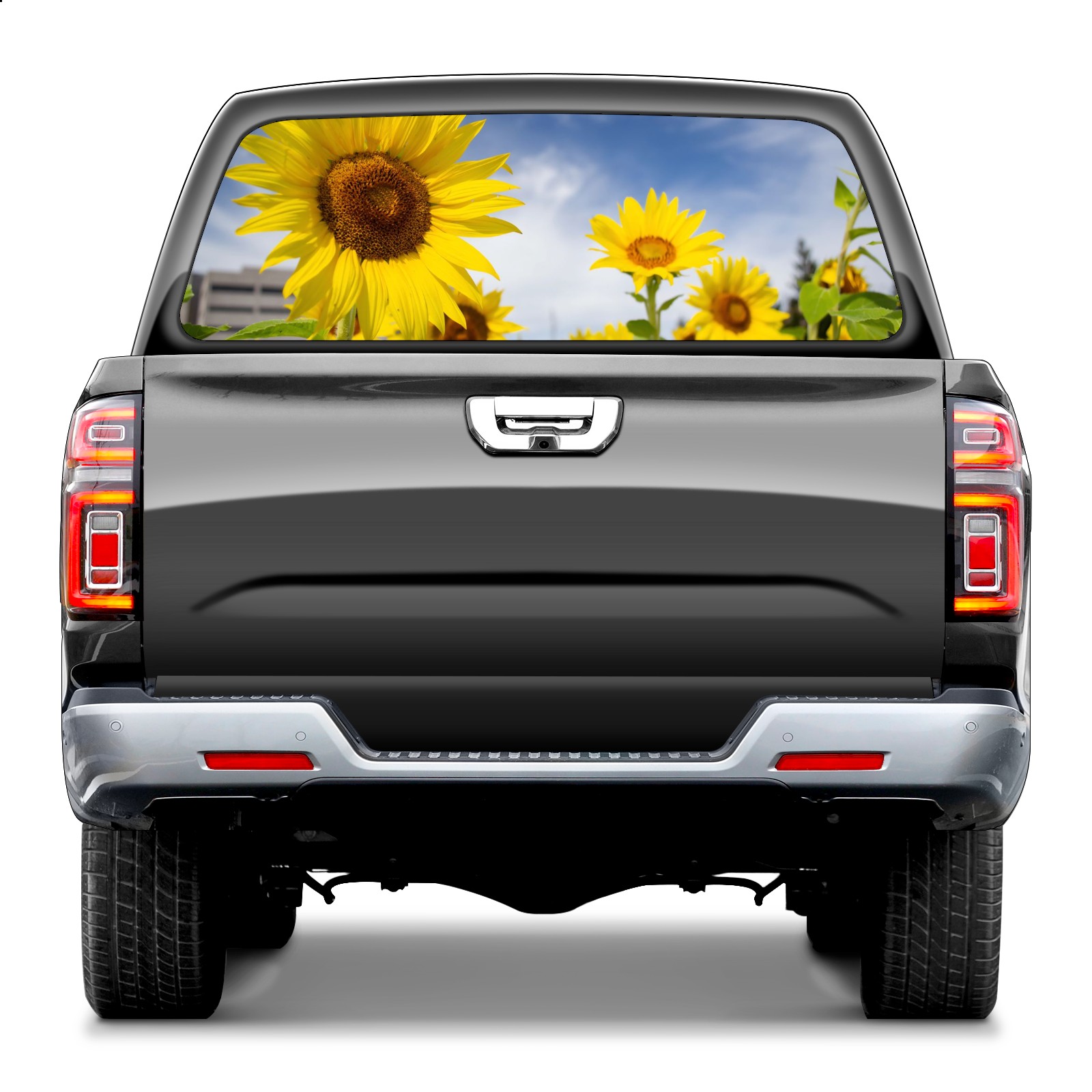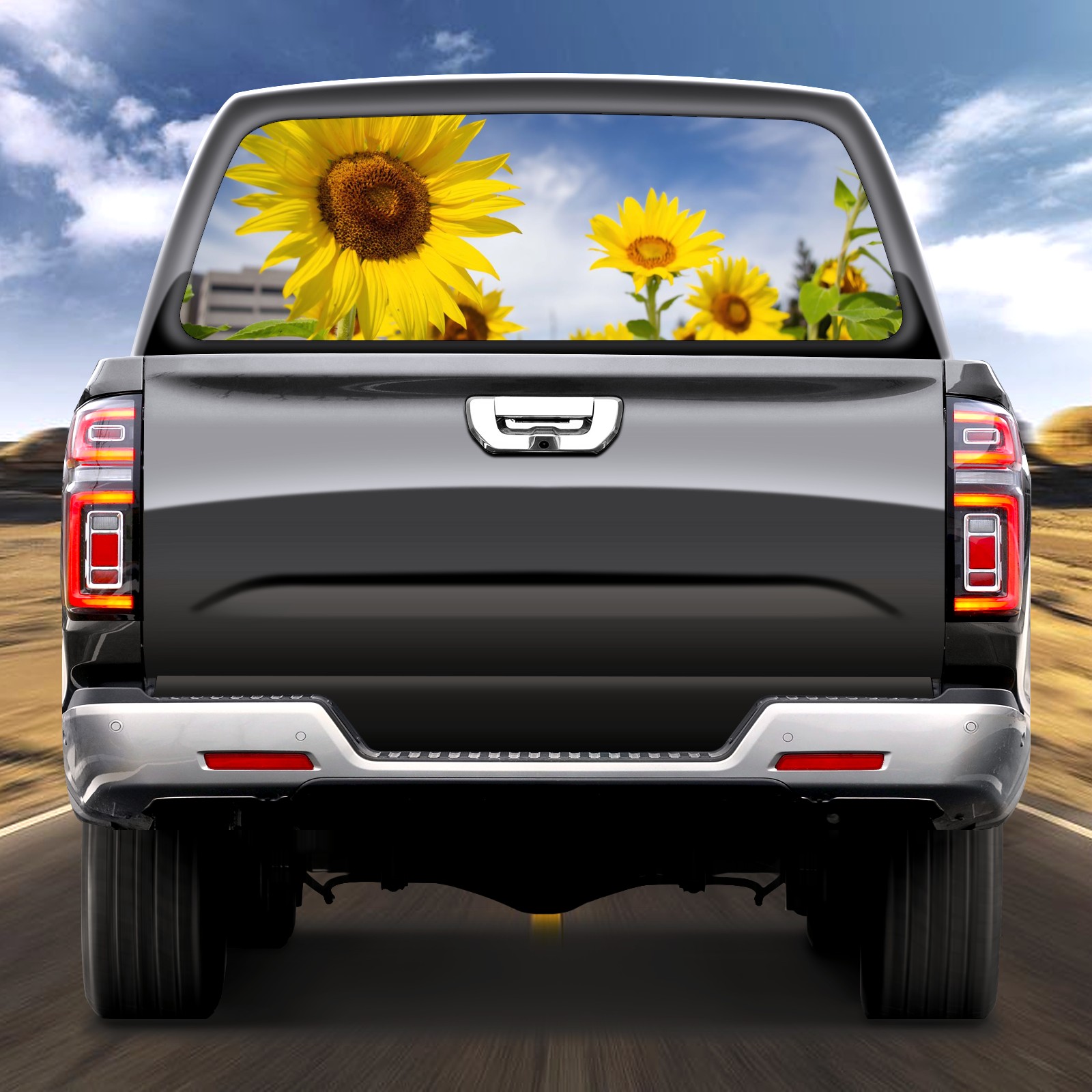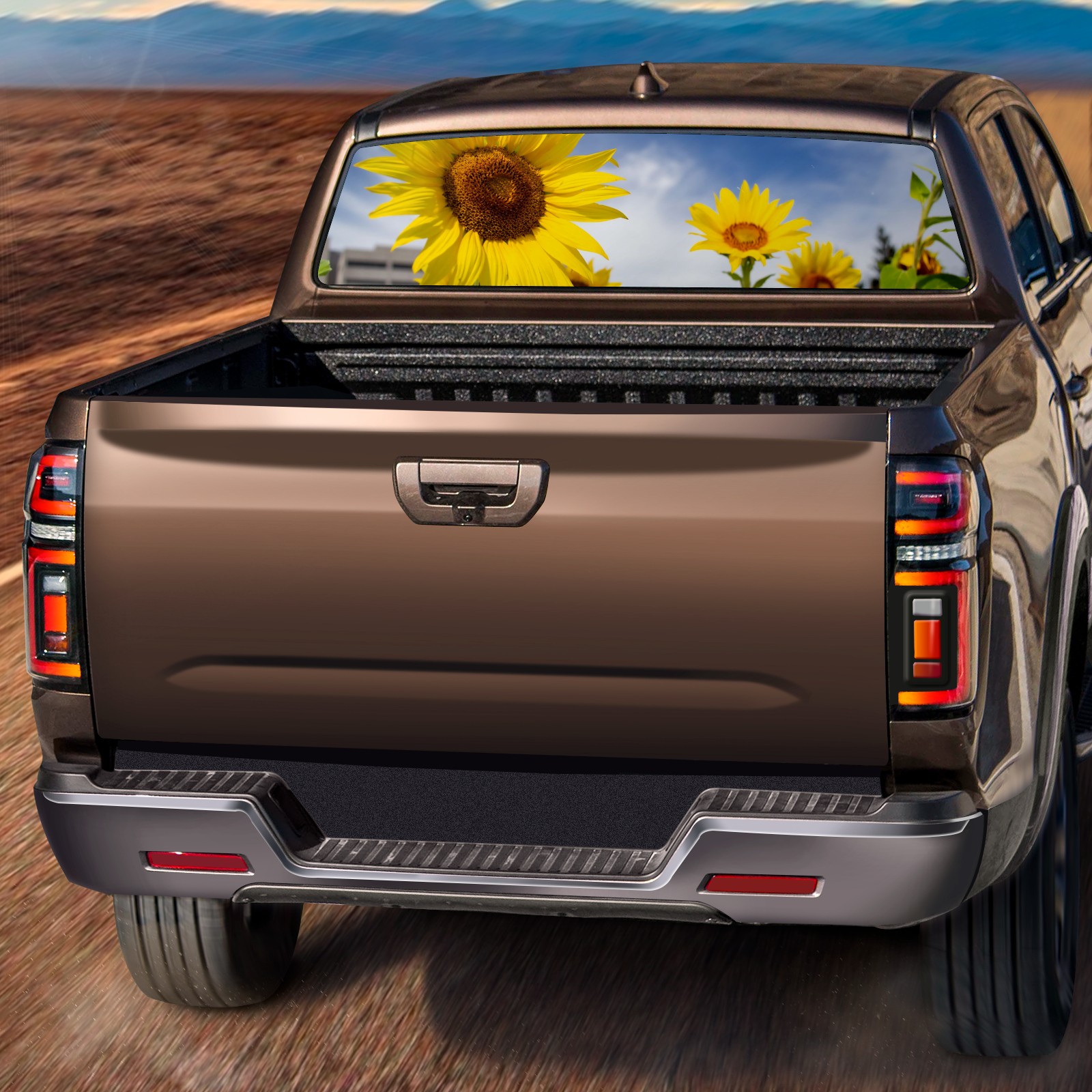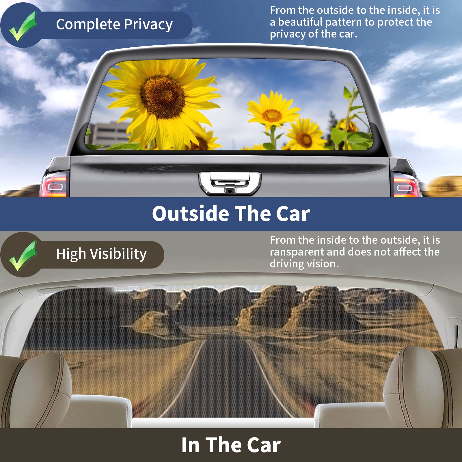 Truck Rear Window Graphics Decals Pickup Trucks Back Window Sticker Full Window Film Decal One Way Visual Waterproof Car Rear Tint Sunflower Field Floral