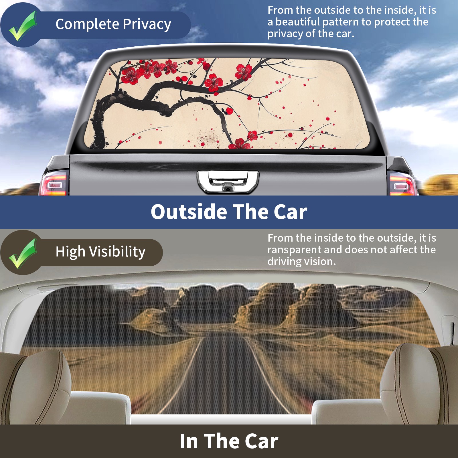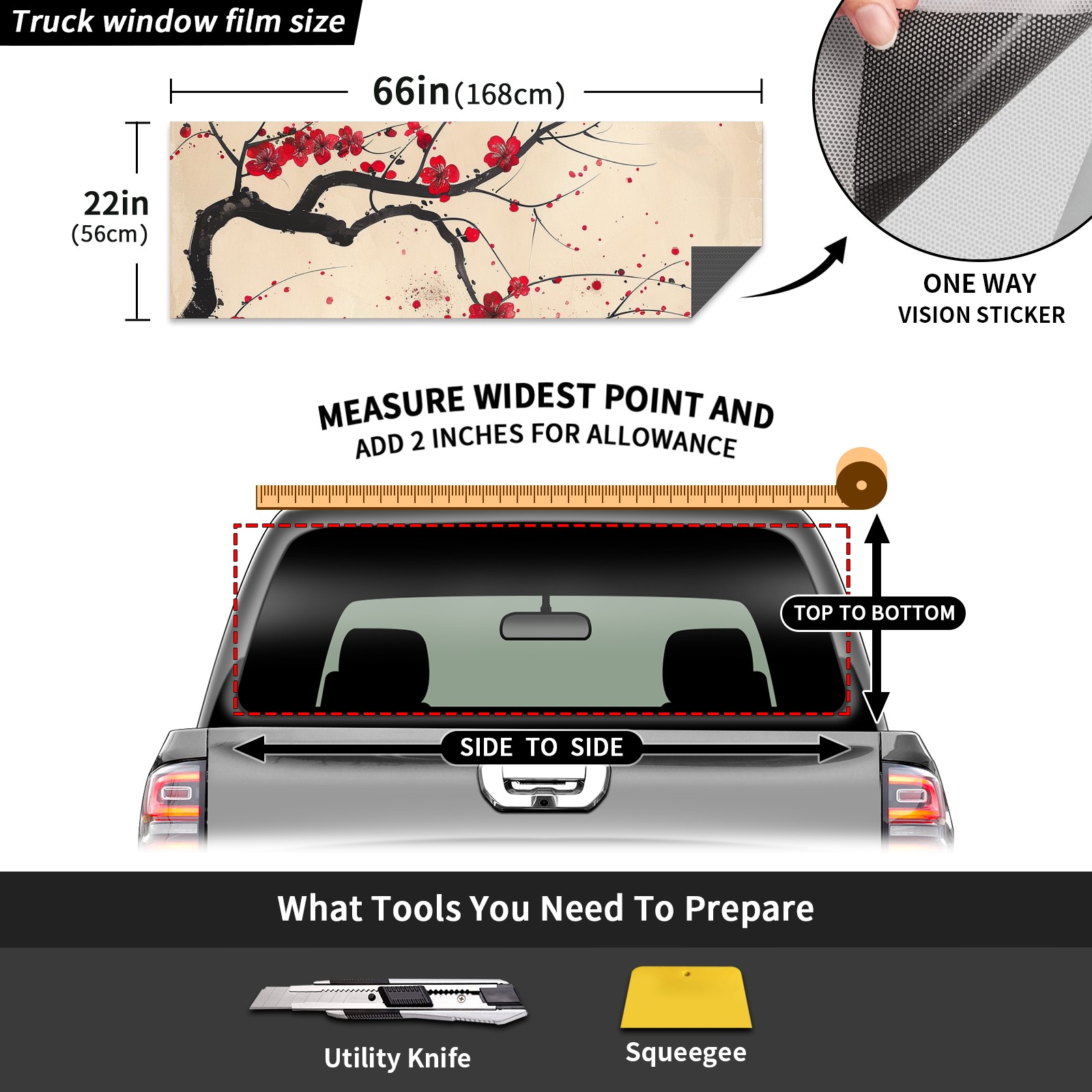 Truck Rear Window Graphics Decals Pickup Trucks Back Window Sticker Full Window Film Decal One Way Visual Waterproof Car Rear Tint Red Plum