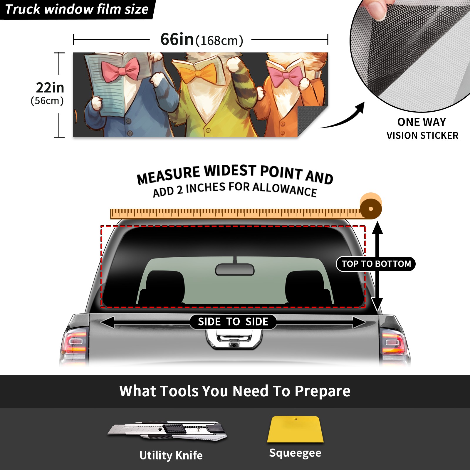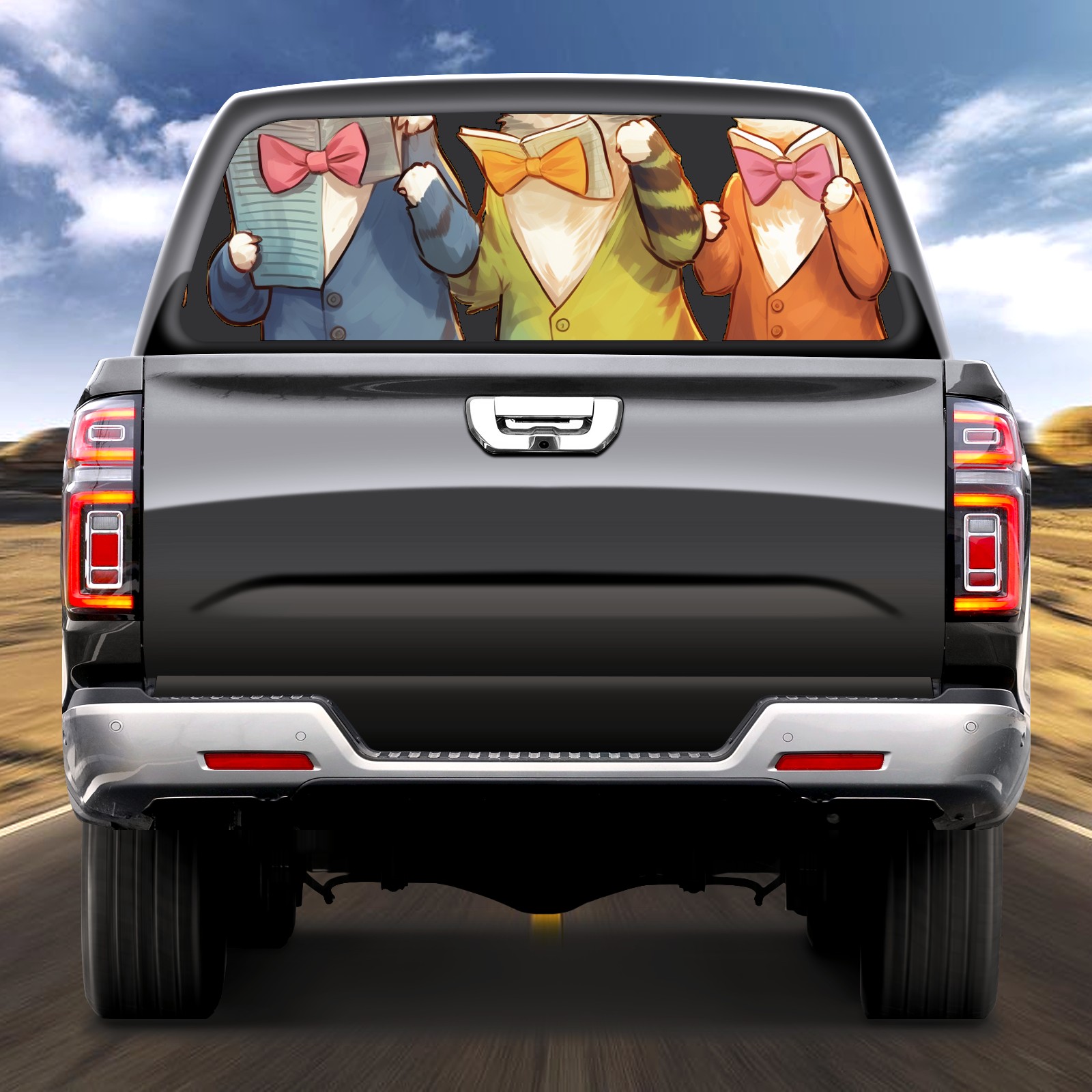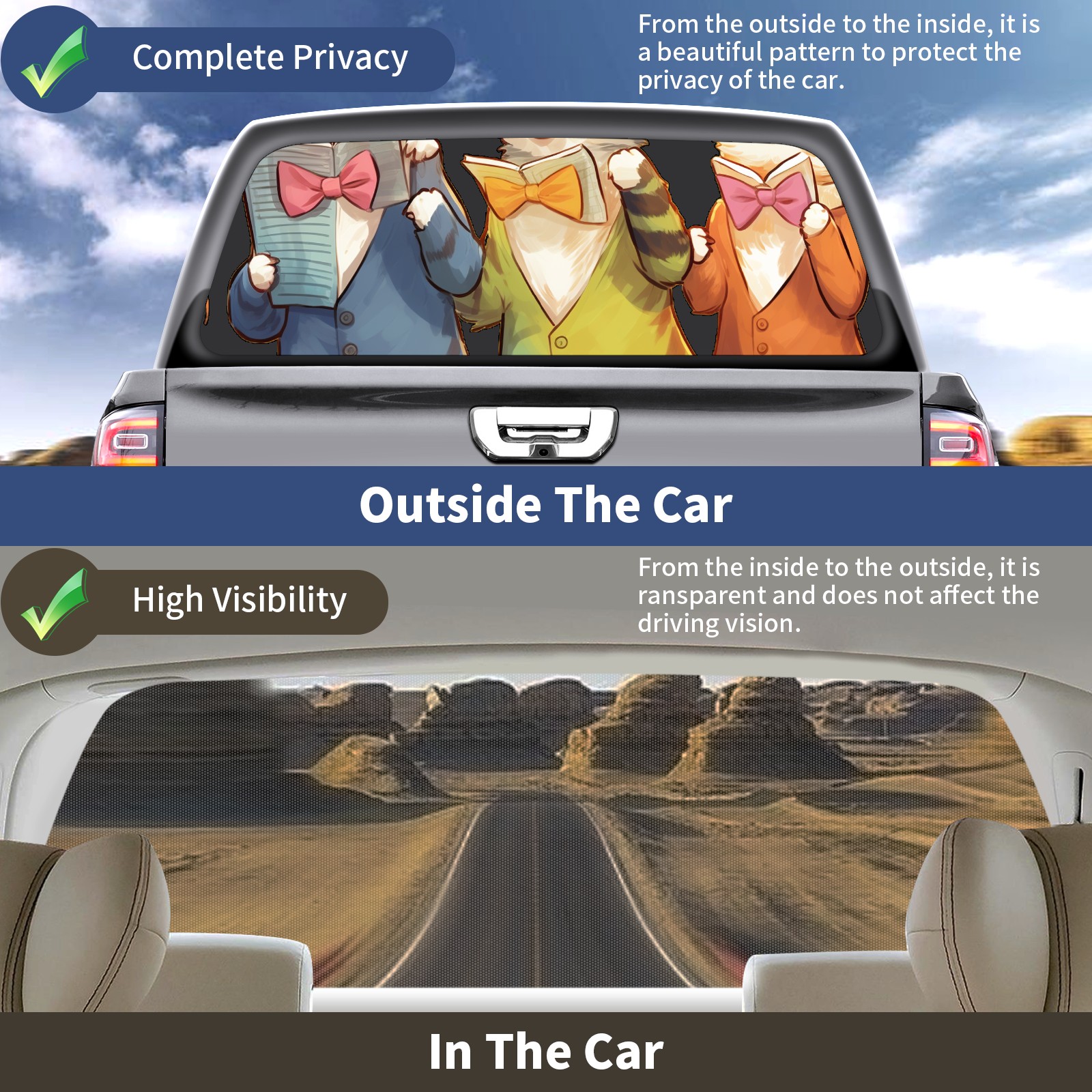 Truck Rear Window Graphics Decals Pickup Trucks Back Window Sticker Full Window Film Decal One Way Visual Waterproof Car Rear Tint Singing Cat