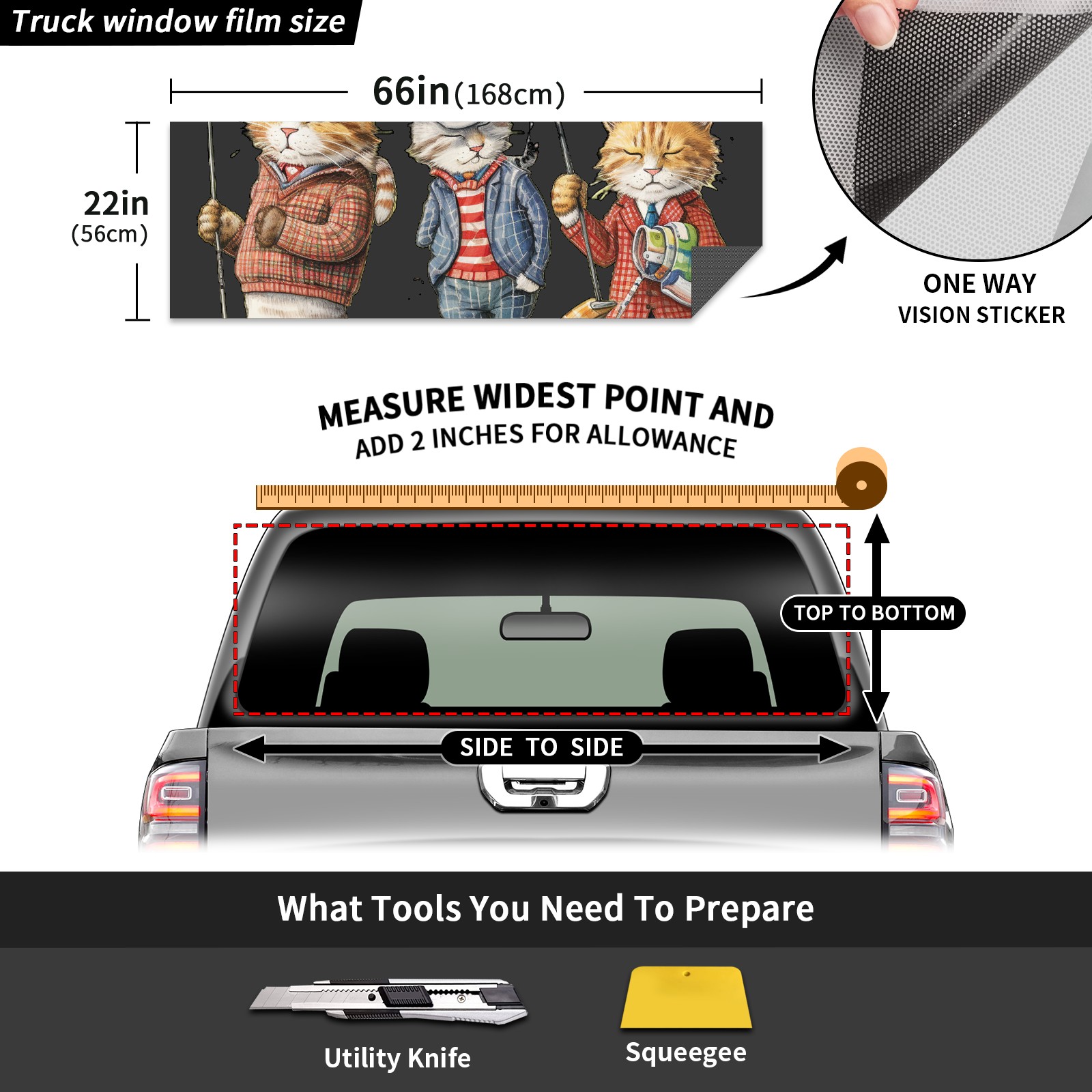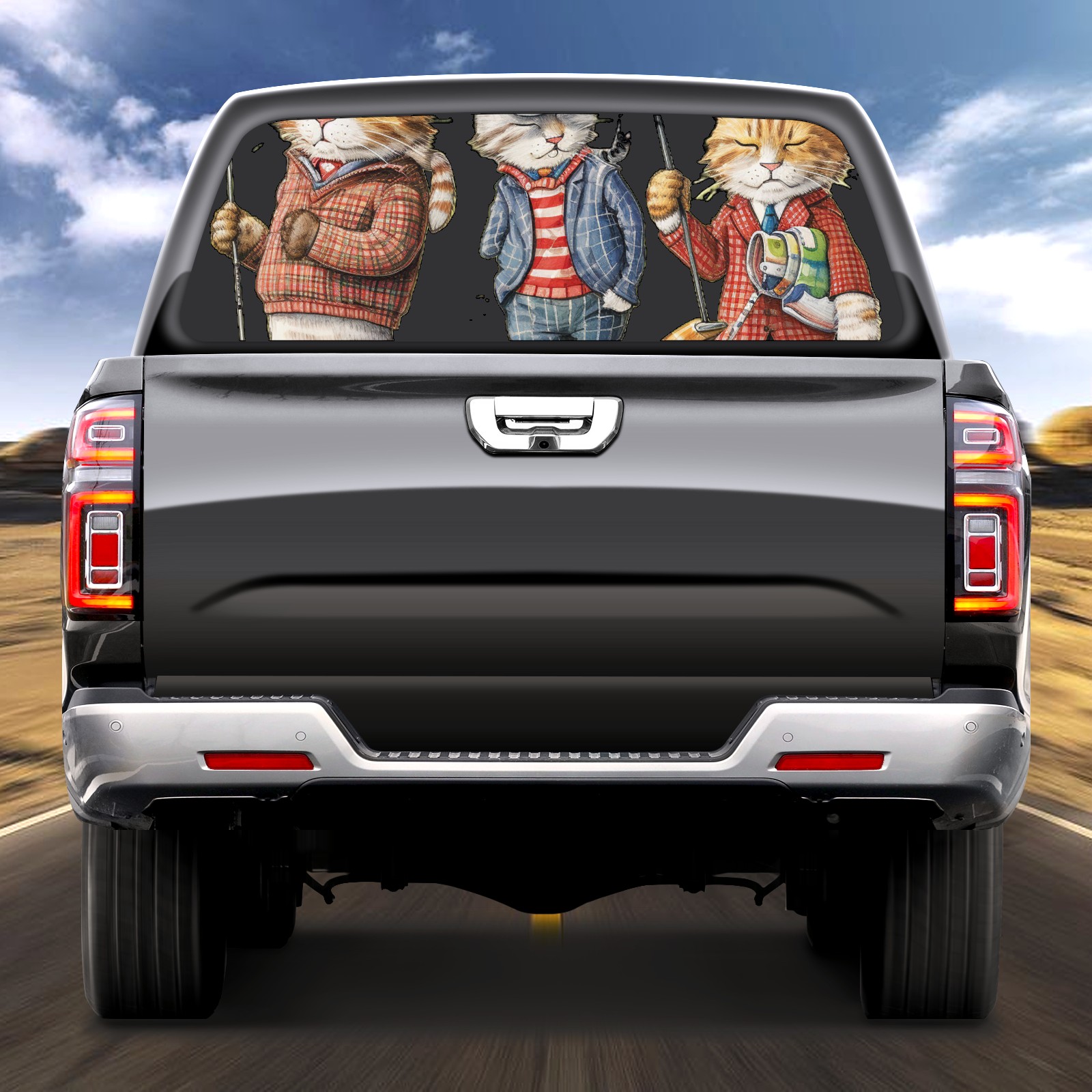 Truck Rear Window Graphics Decals Pickup Trucks Back Window Sticker Full Window Film Decal One Way Visual Waterproof Car Rear Tint Golf Cat