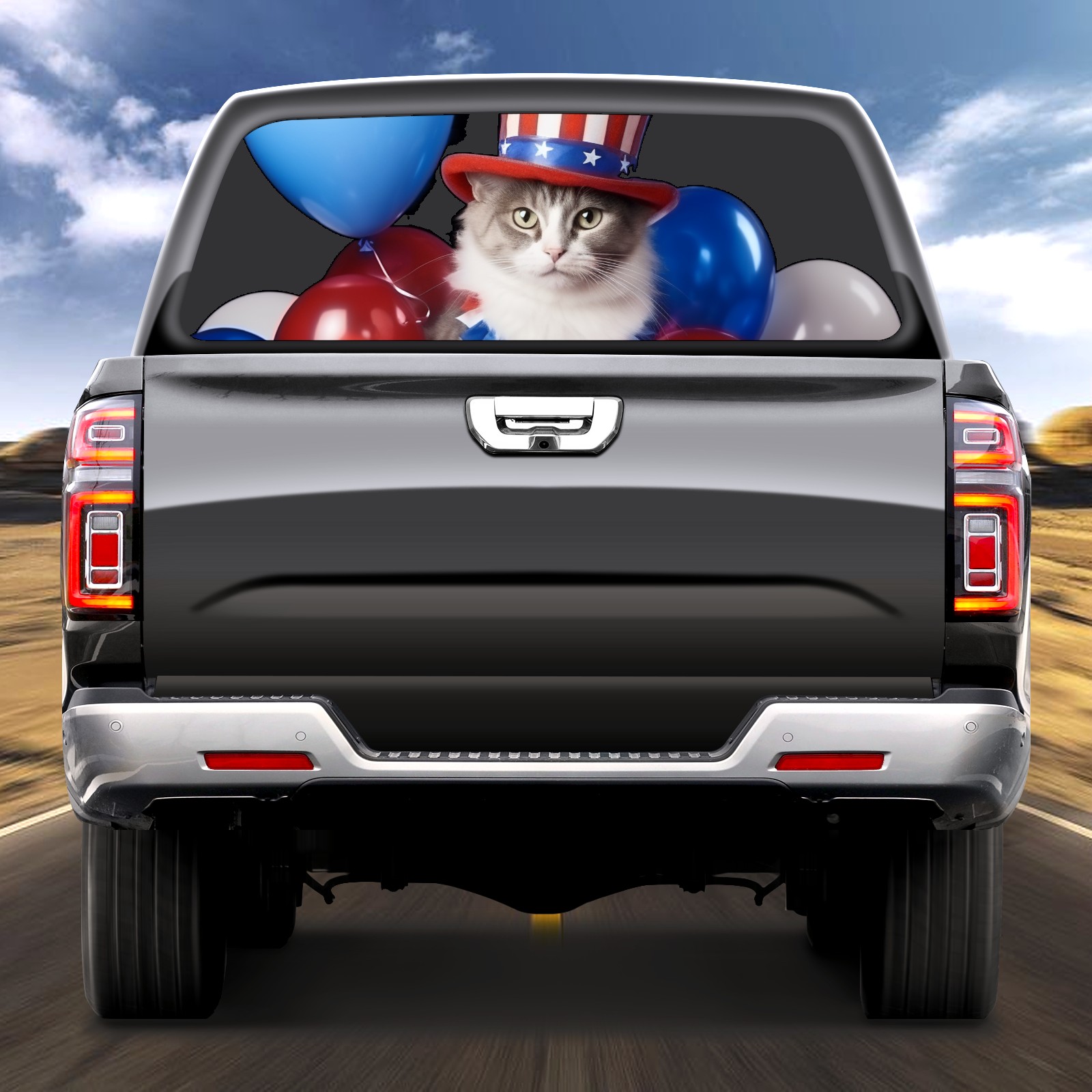 Truck Rear Window Graphics Decals Pickup Trucks Back Window Sticker Full Window Film Decal One Way Visual Waterproof Car Rear Tint Flag Cat