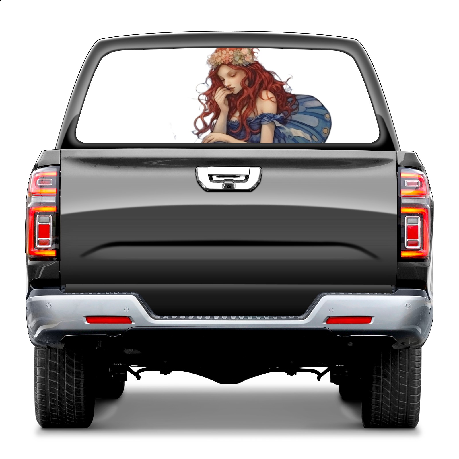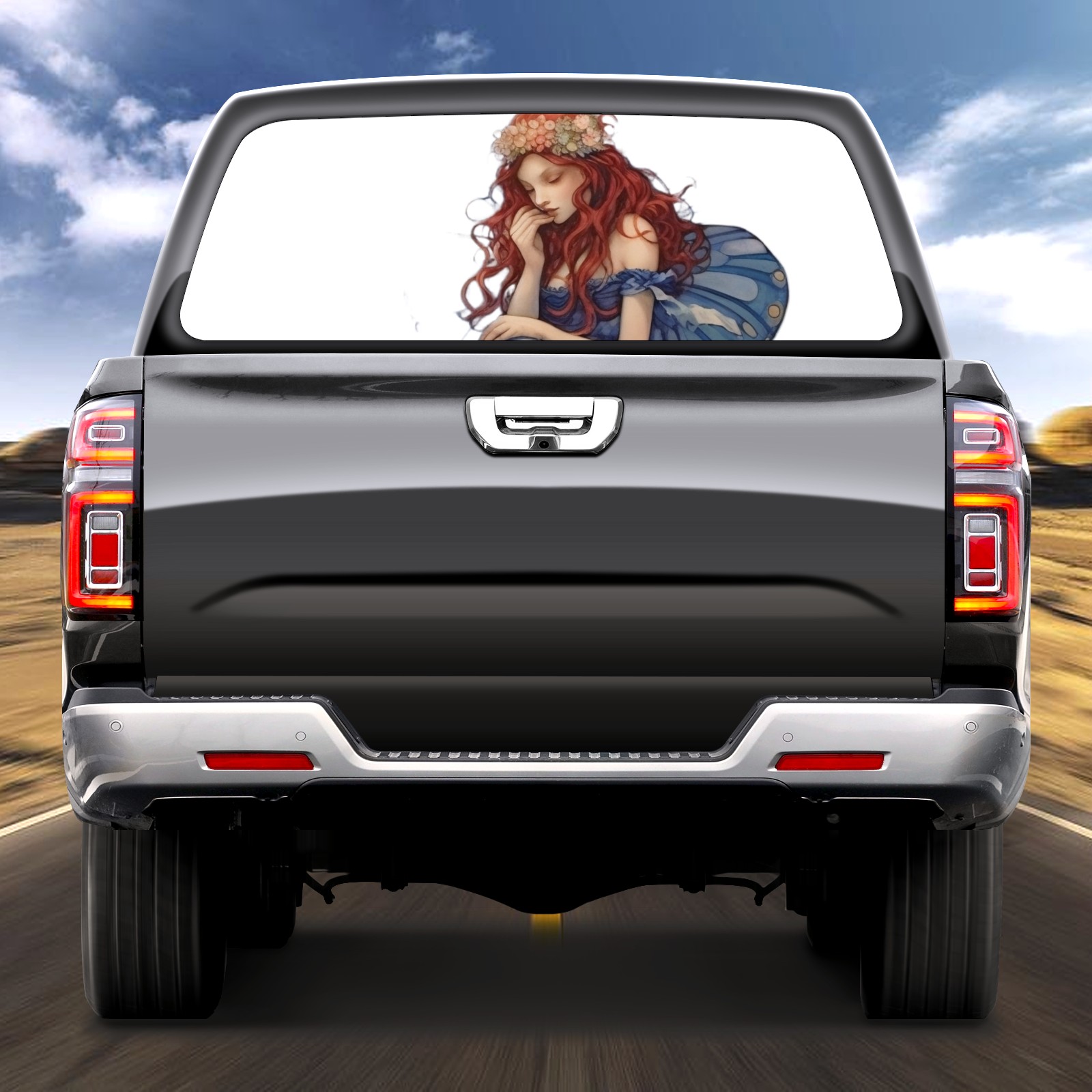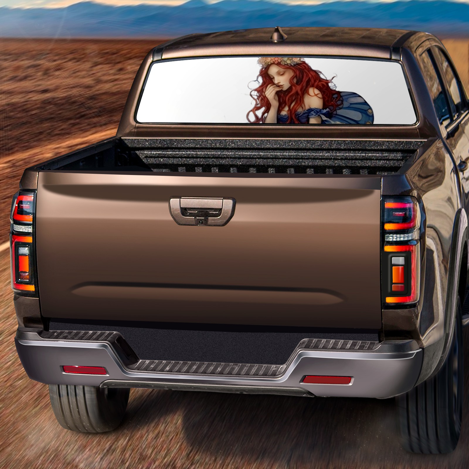 Truck Rear Window Graphics Decals Pickup Trucks Back Window Sticker Full Window Film Decal One Way Visual Waterproof Car Rear Tint Anime Girl