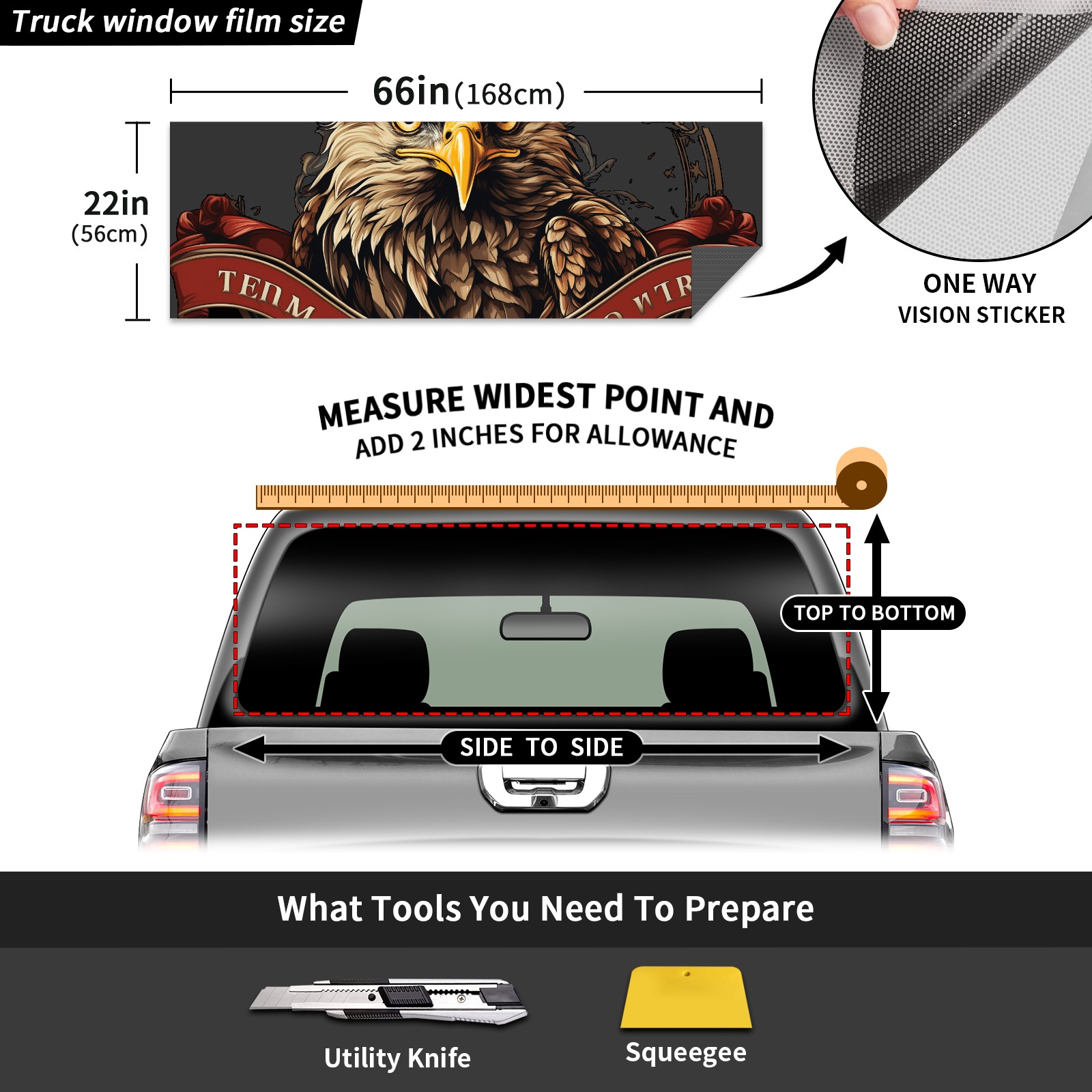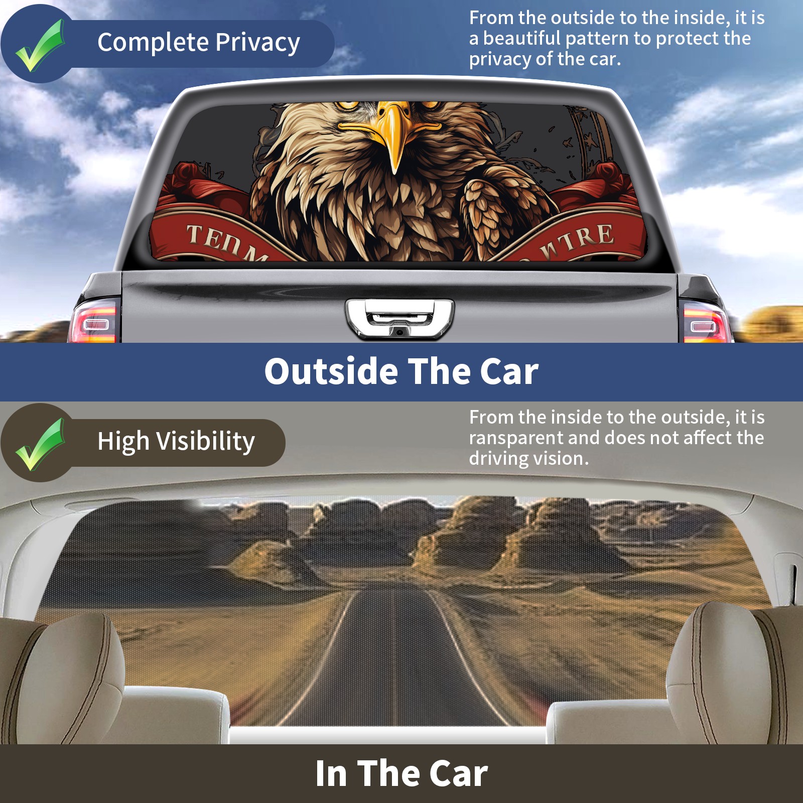 Truck Rear Window Graphics Decals Pickup Trucks Back Window Sticker Full Window Film Decal One Way Visual Waterproof Car Rear Tint Bald Eagle