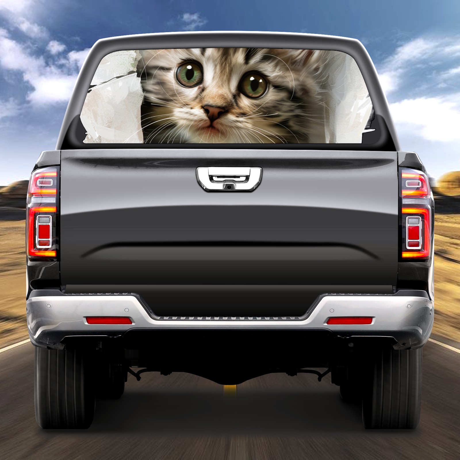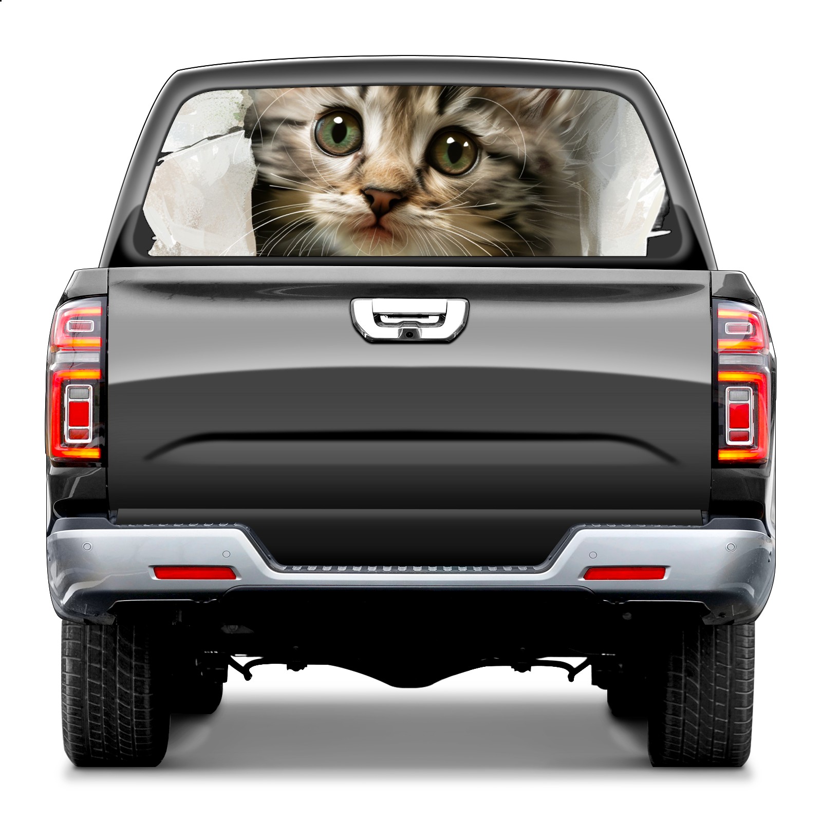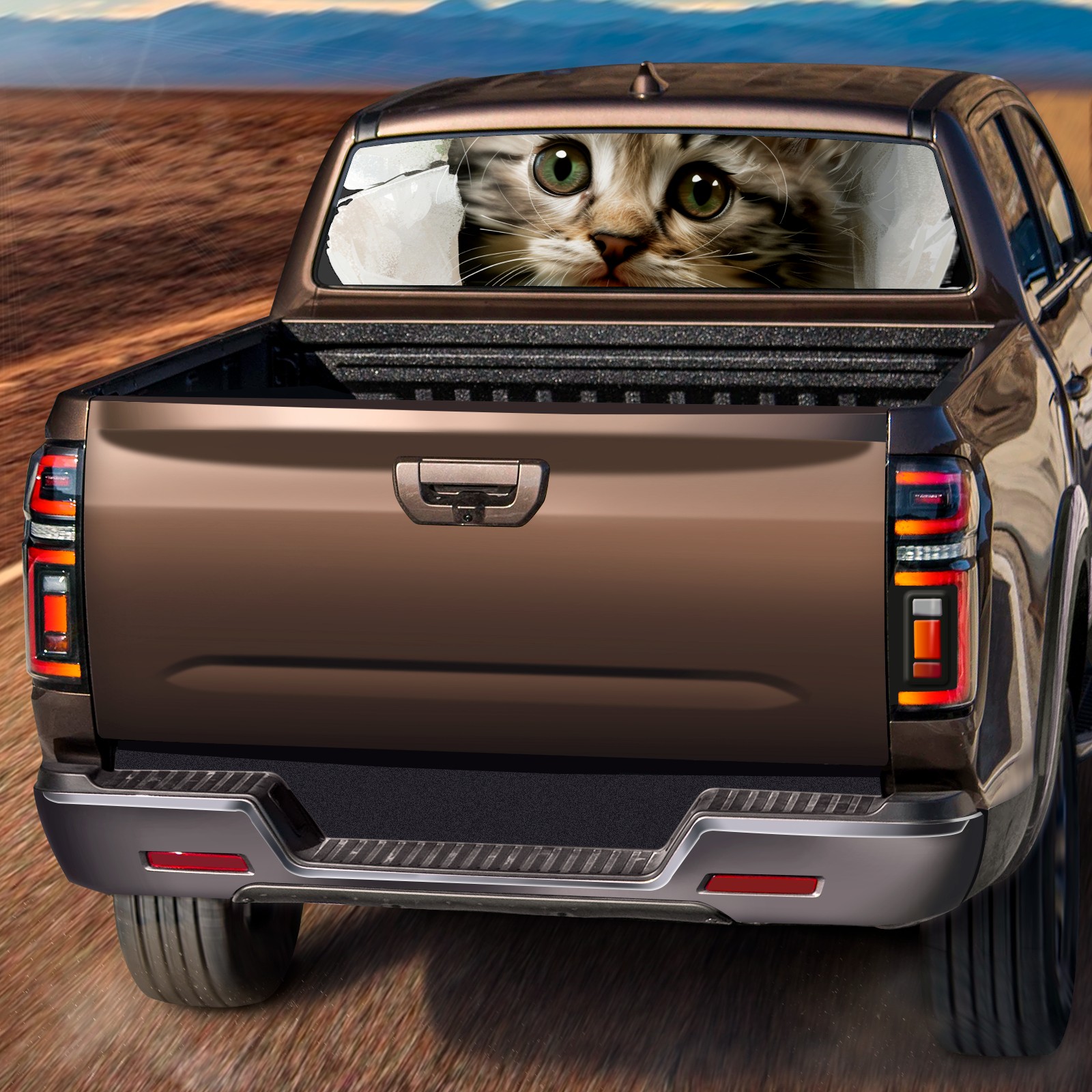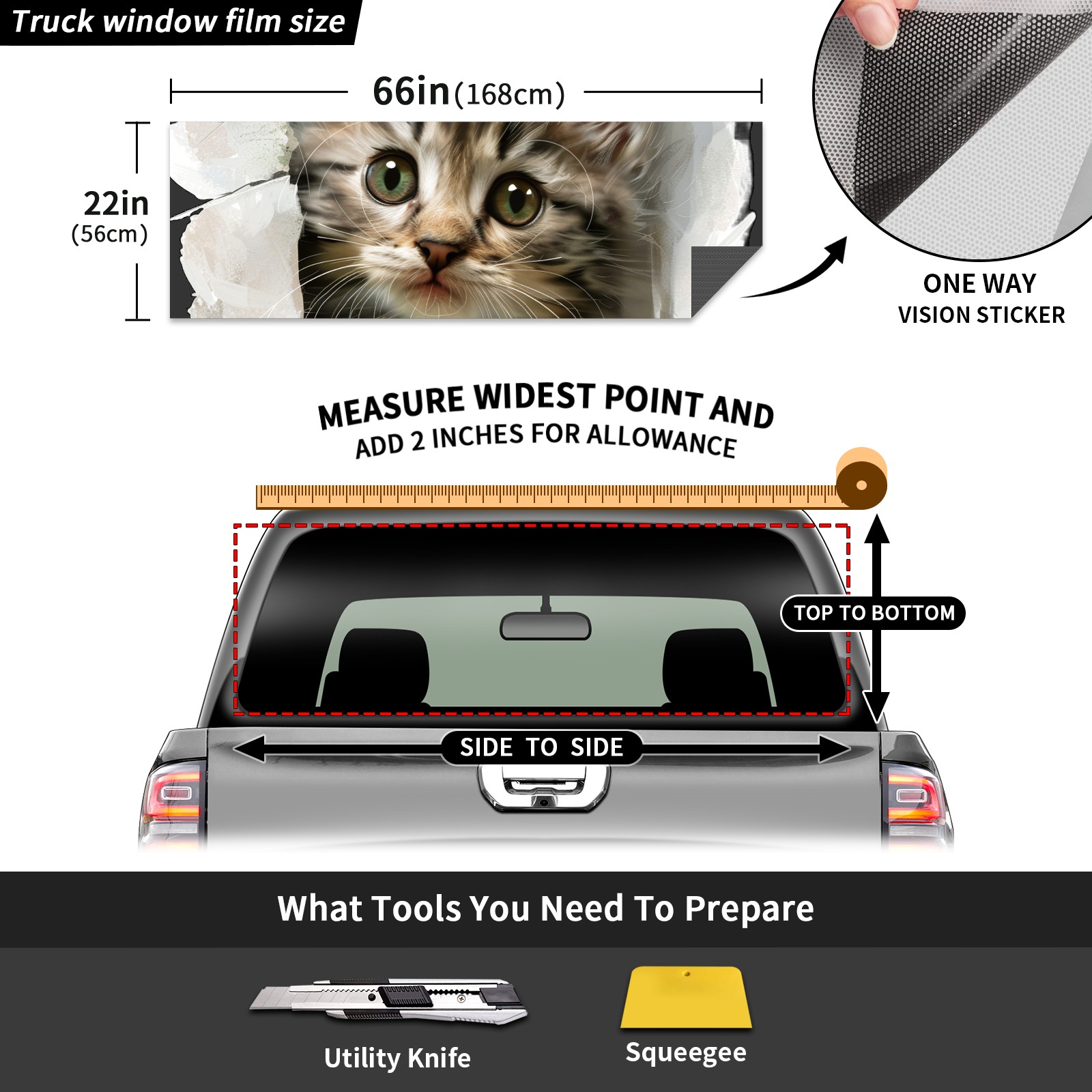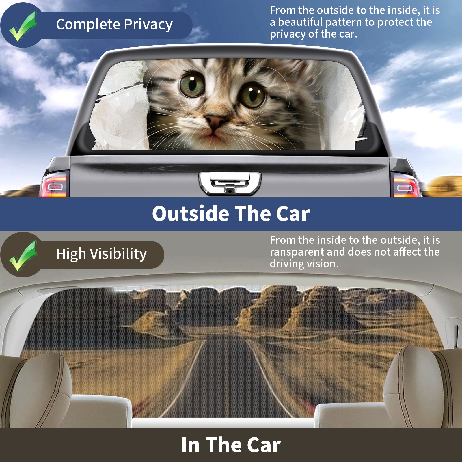 Truck Rear Window Graphics Decals Pickup Trucks Back Window Sticker Full Window Film Decal One Way Visual Waterproof Car Rear Tint Funny Cat