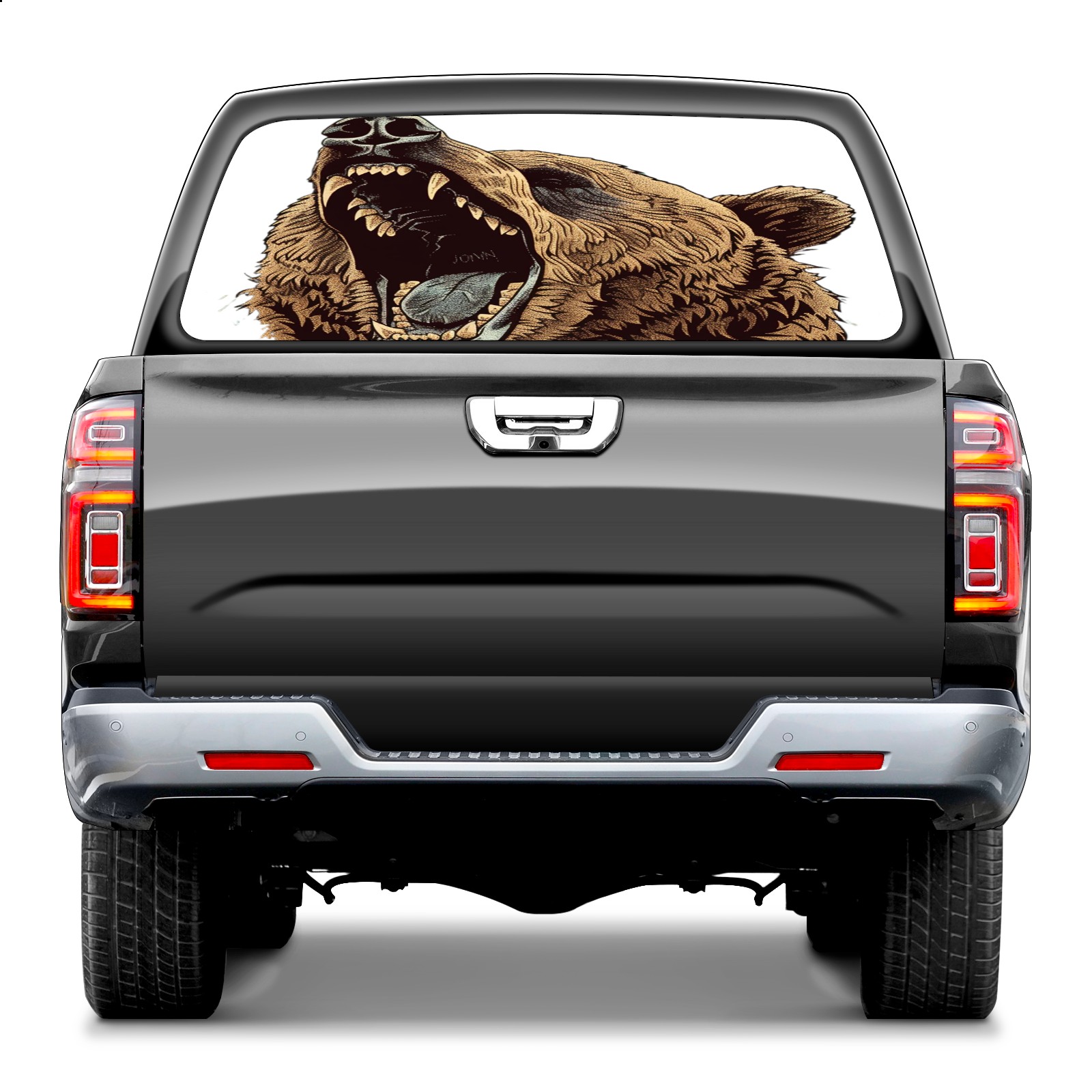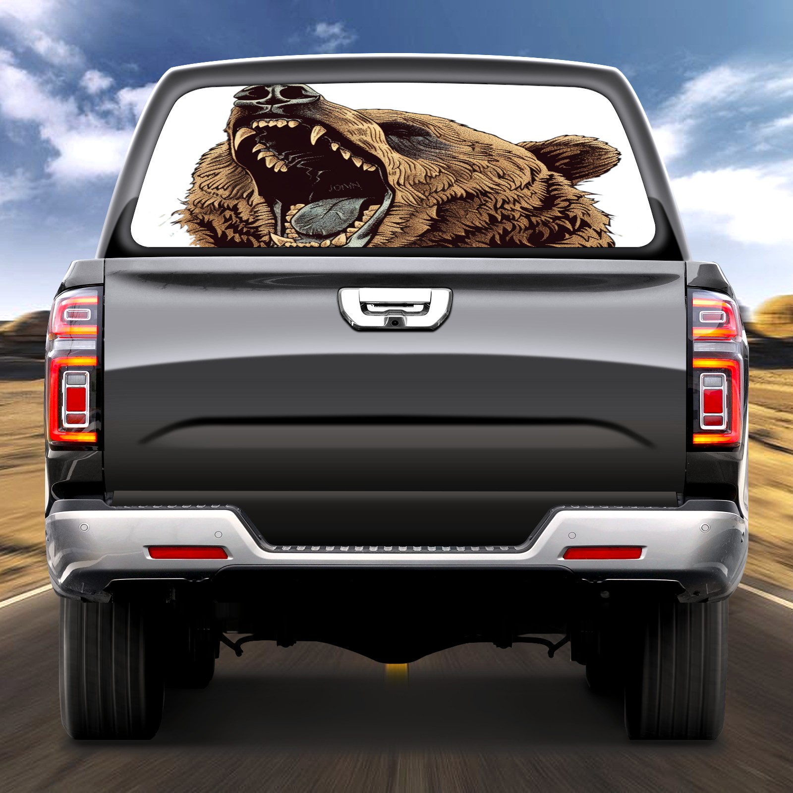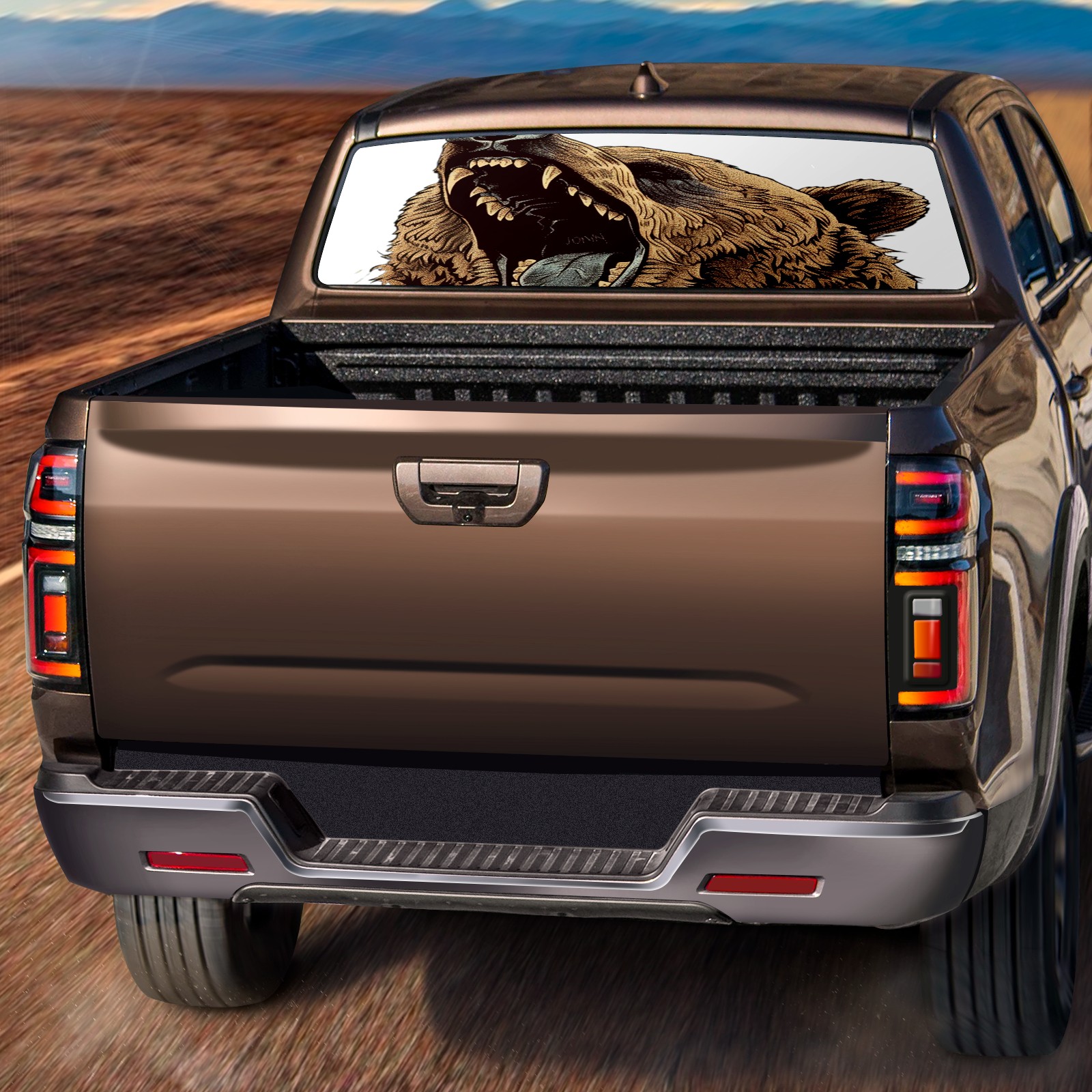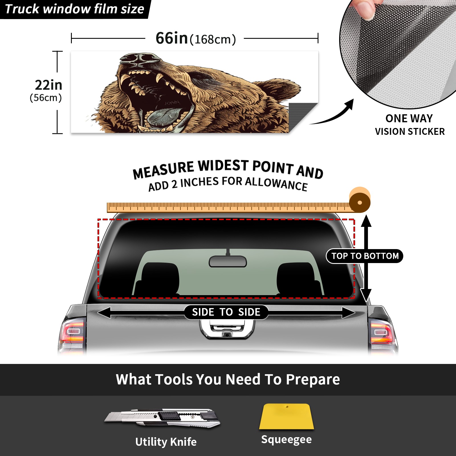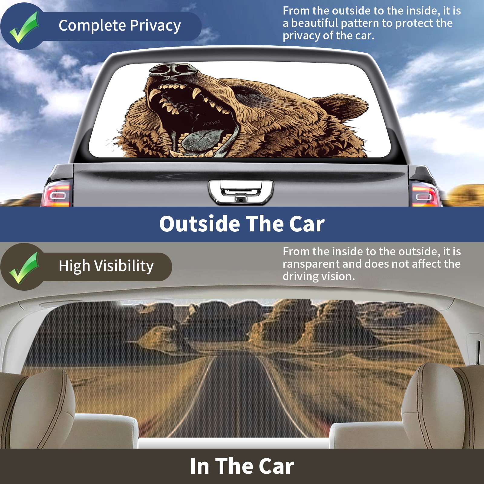 Truck Rear Window Graphics Decals Pickup Trucks Back Window Sticker Full Window Film Decal One Way Visual Waterproof Car Rear Tint Grizzly Bear