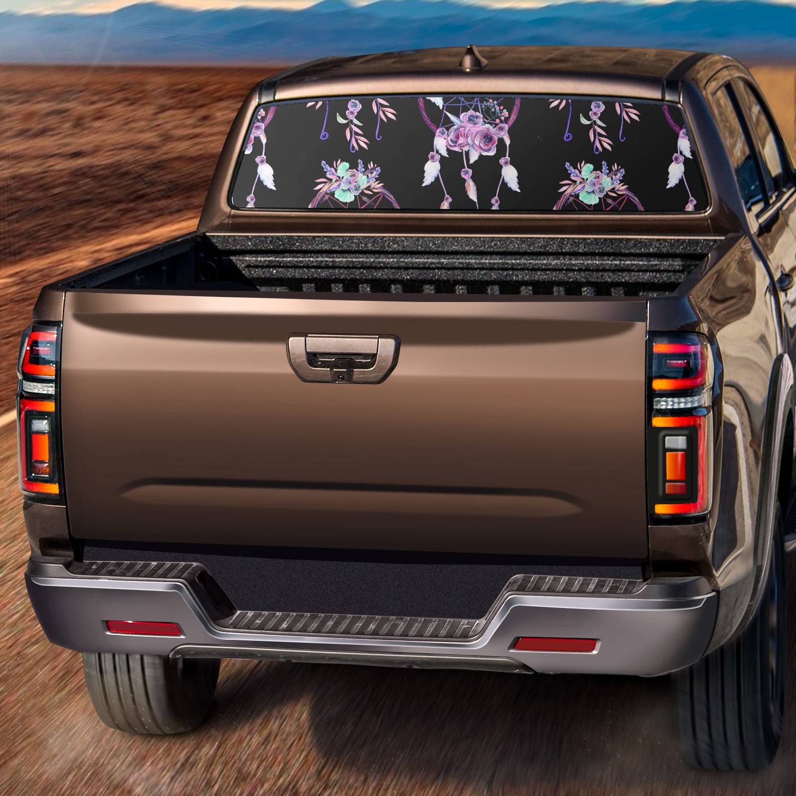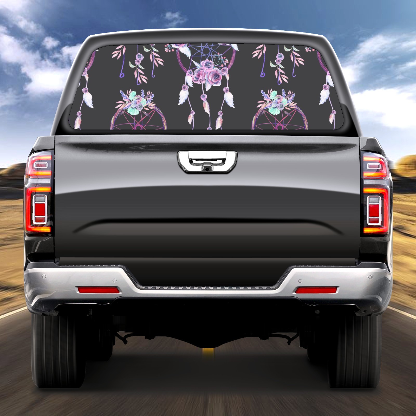 Truck Rear Window Graphics Decals Pickup Trucks Back Window Sticker Full Window Film Decal One Way Visual Waterproof Car Rear Tint Pink Dreamcatcher Floral