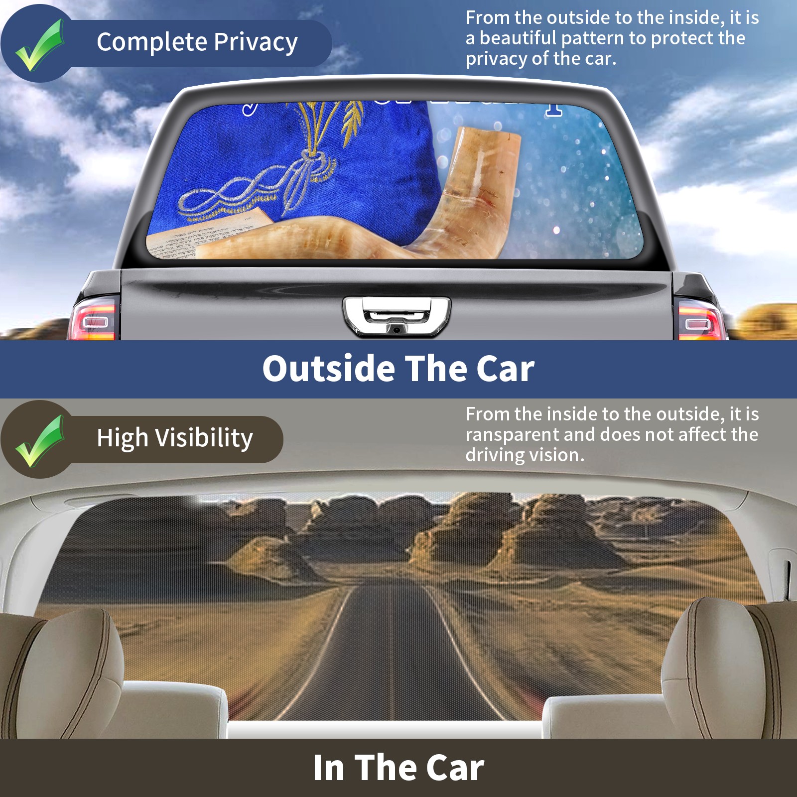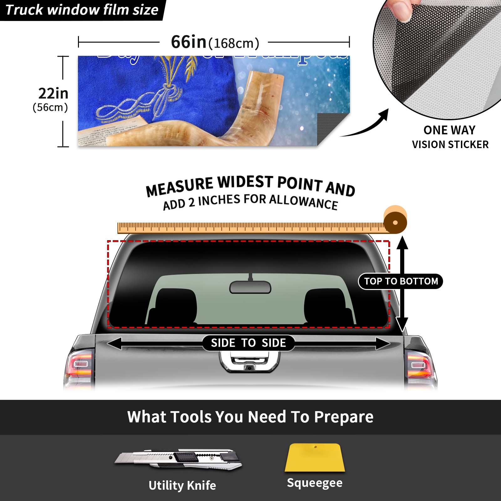 Truck Rear Window Graphics Decals Pickup Trucks Back Window Sticker Full Window Film Decal One Way Visual Waterproof Car Rear Tint Day Of Trumpets Yom Teruah