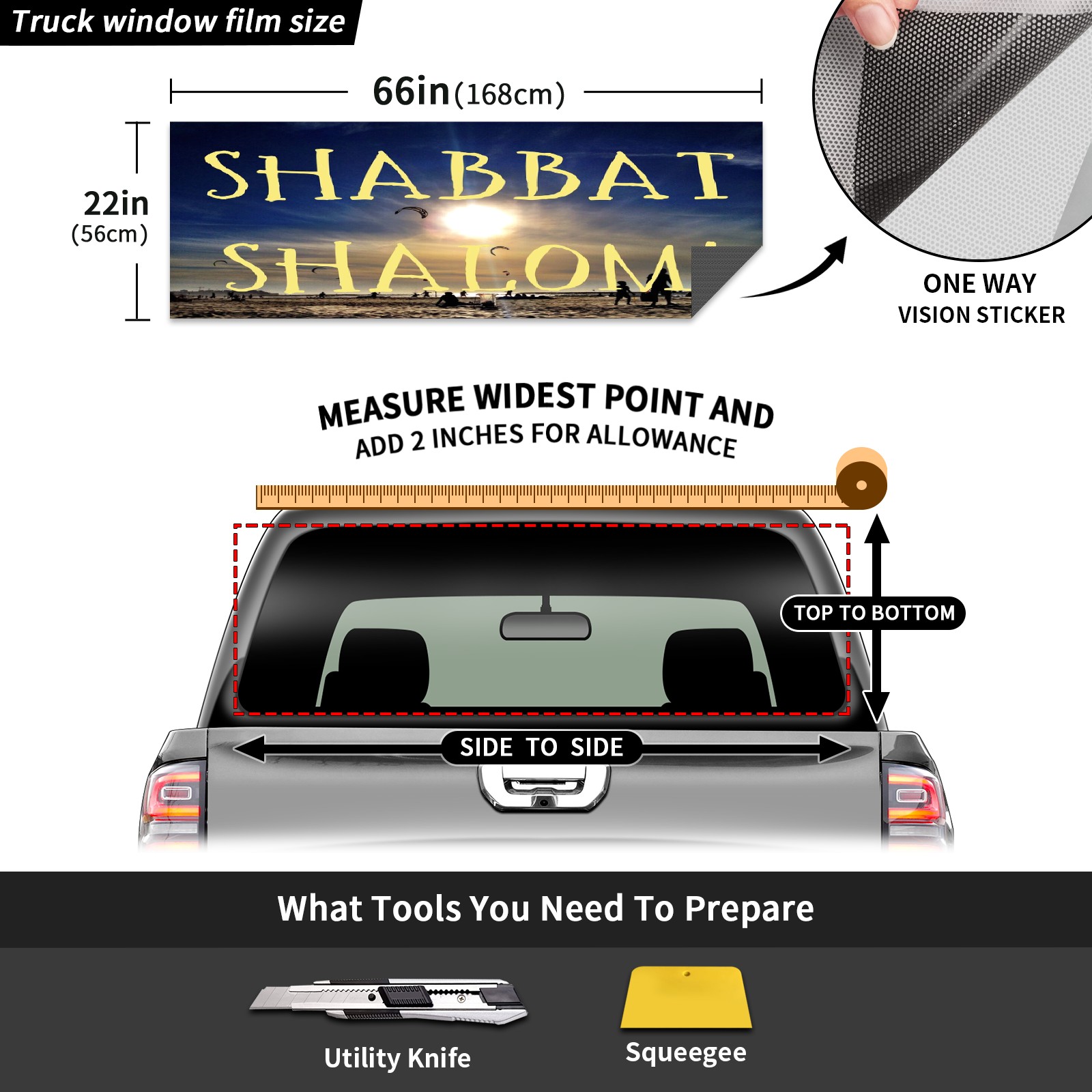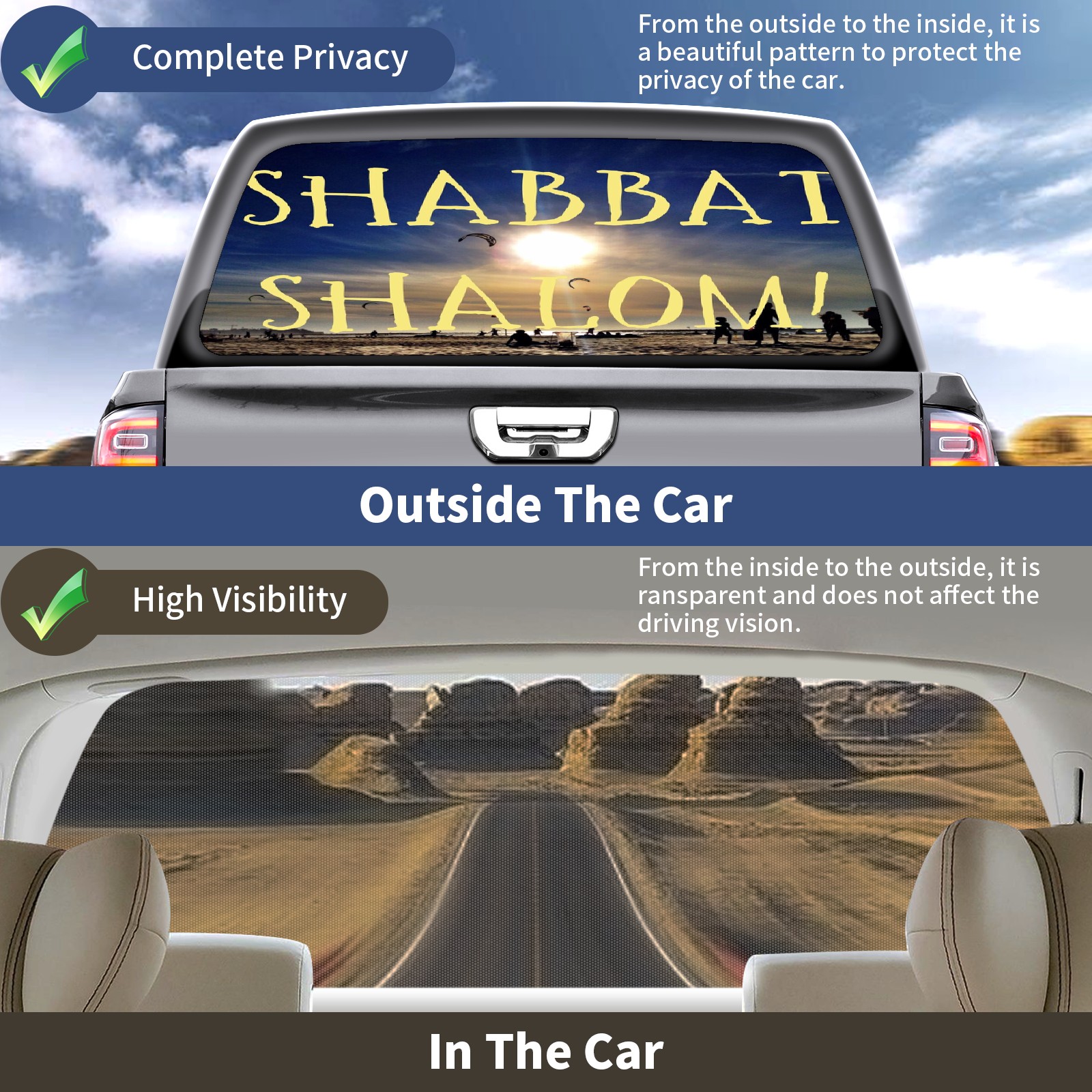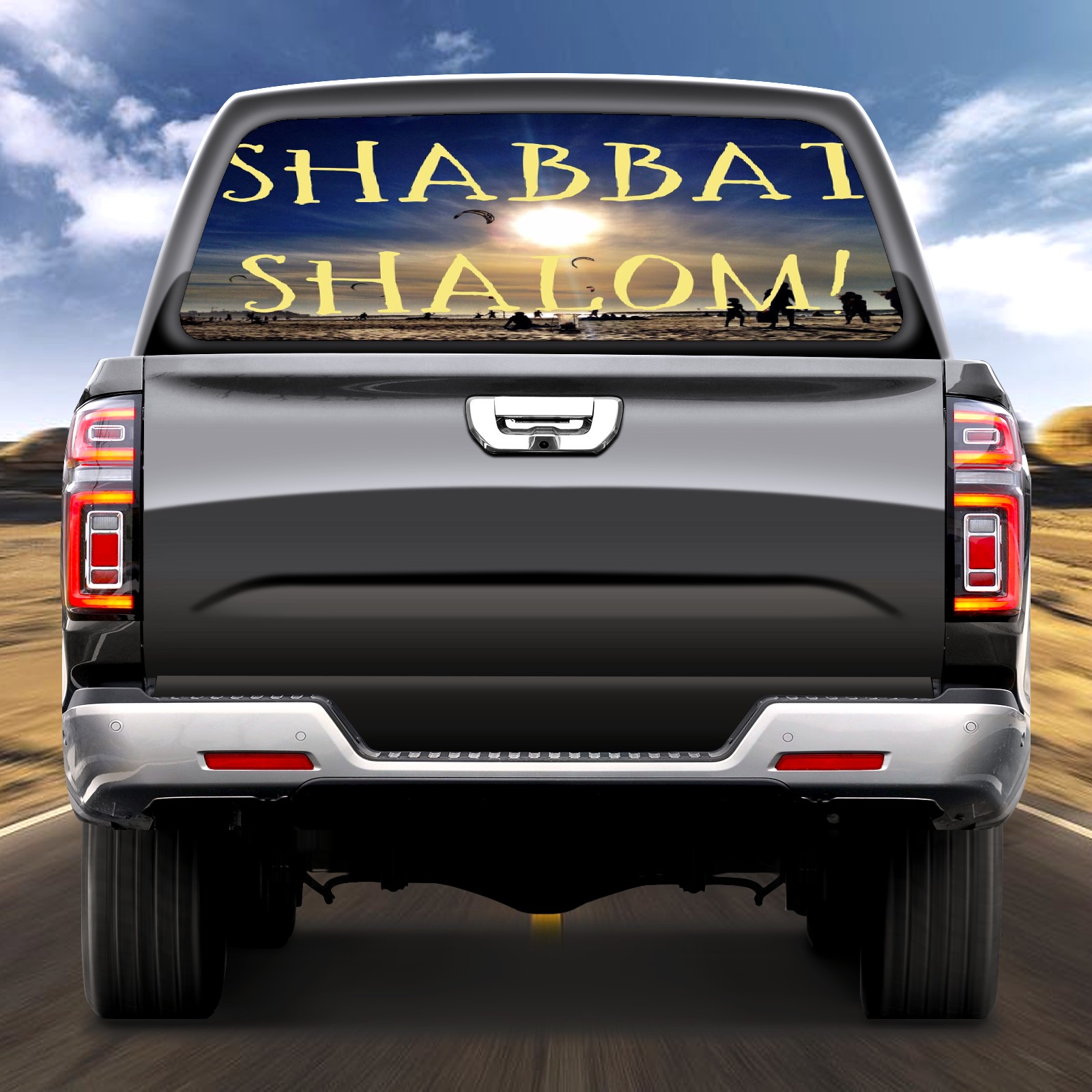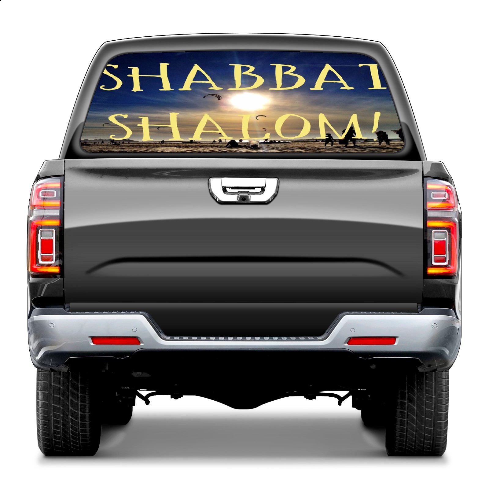 Truck Rear Window Graphics Decals Pickup Trucks Back Window Sticker Full Window Film Decal One Way Visual Waterproof Car Rear Tint Shabbat Shalom_1