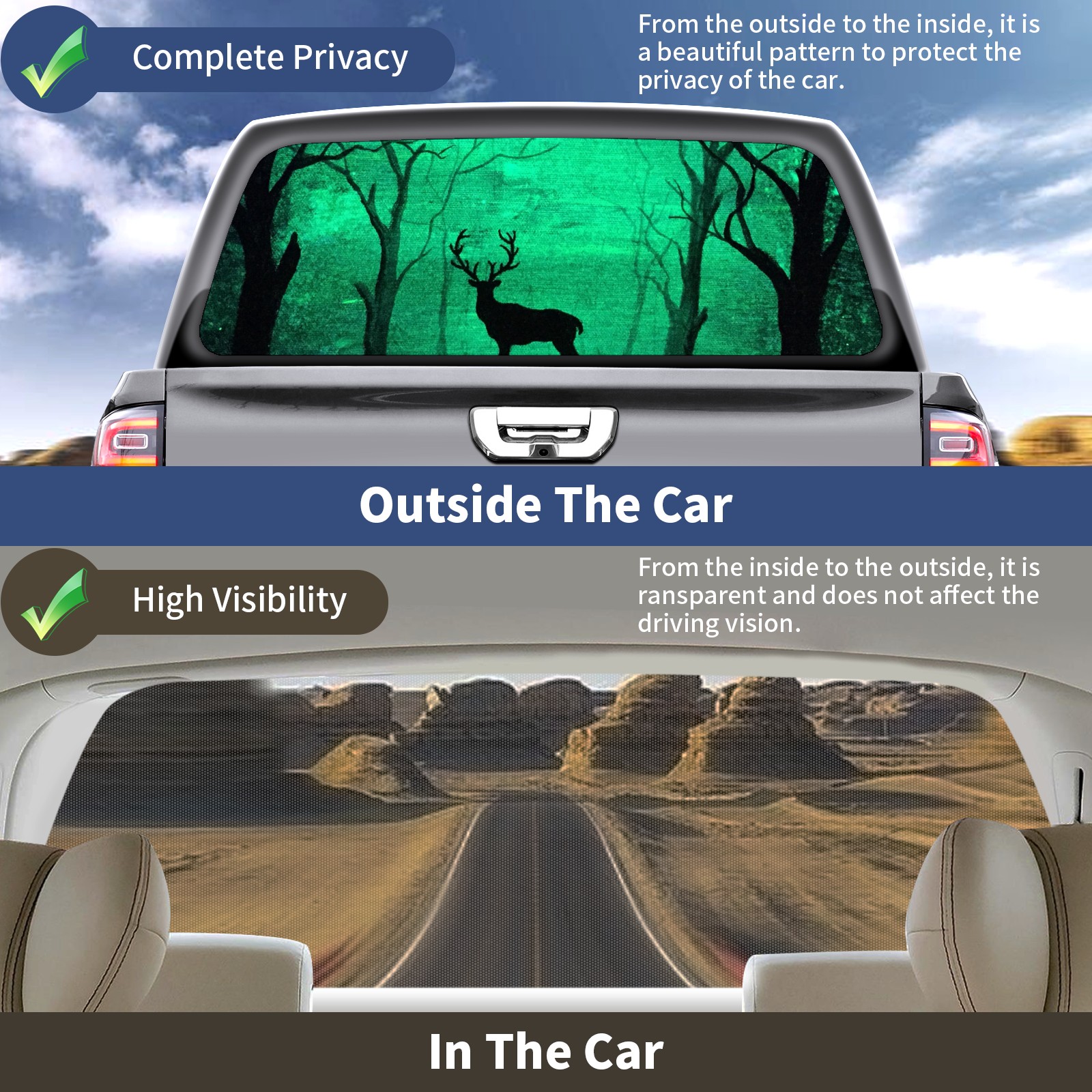 Truck Rear Window Graphics Decals Pickup Trucks Back Window Sticker Full Window Film Decal One Way Visual Waterproof Car Rear Tint Glow In The Dark Art Deer Forest