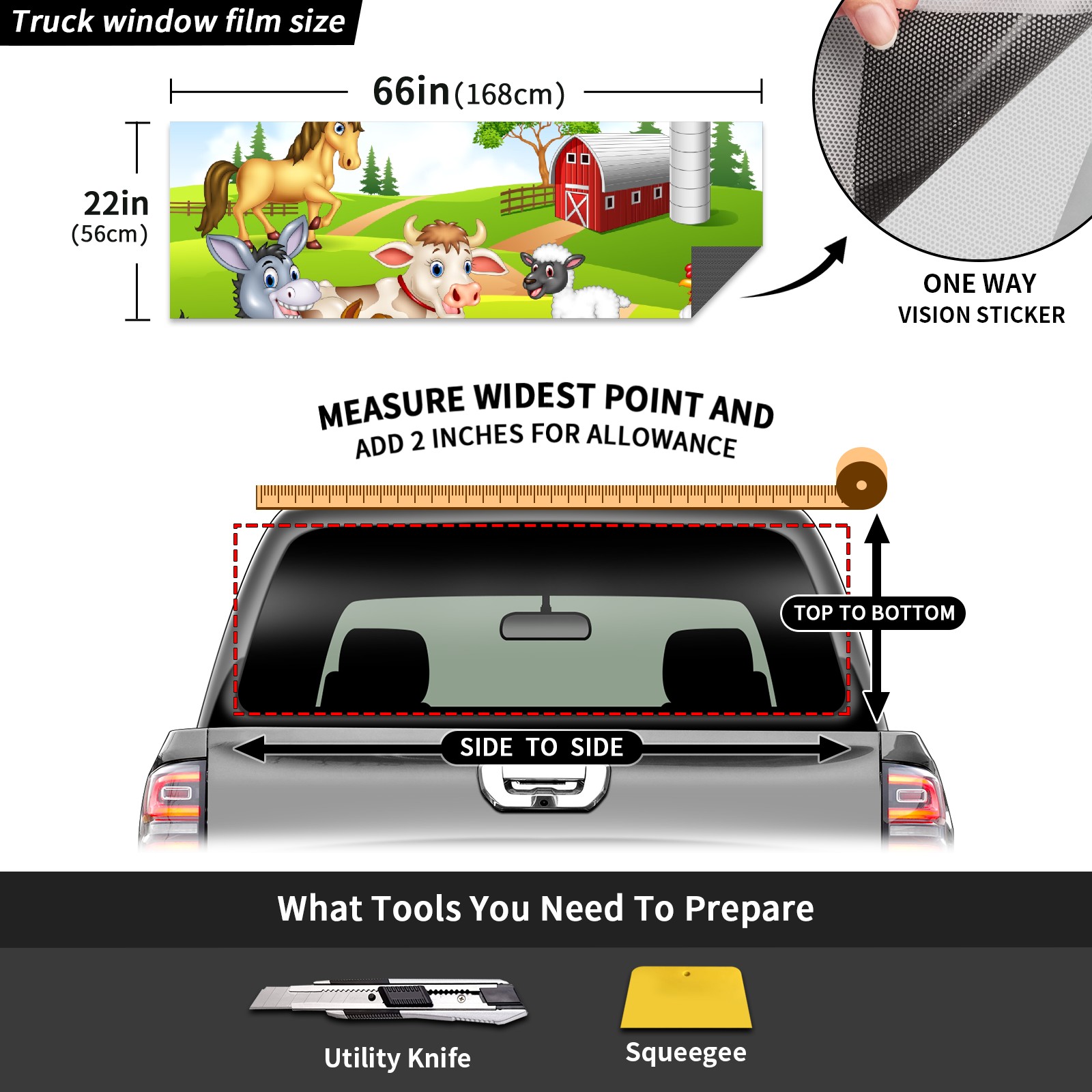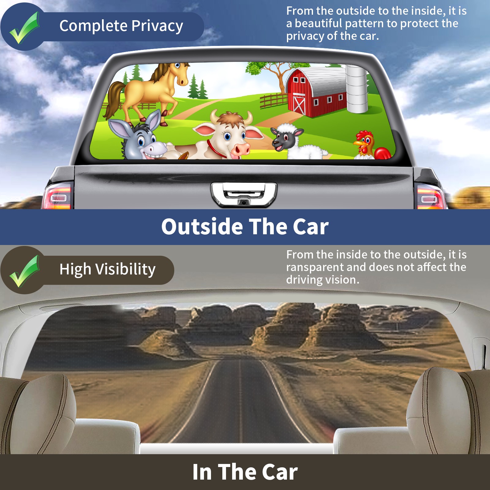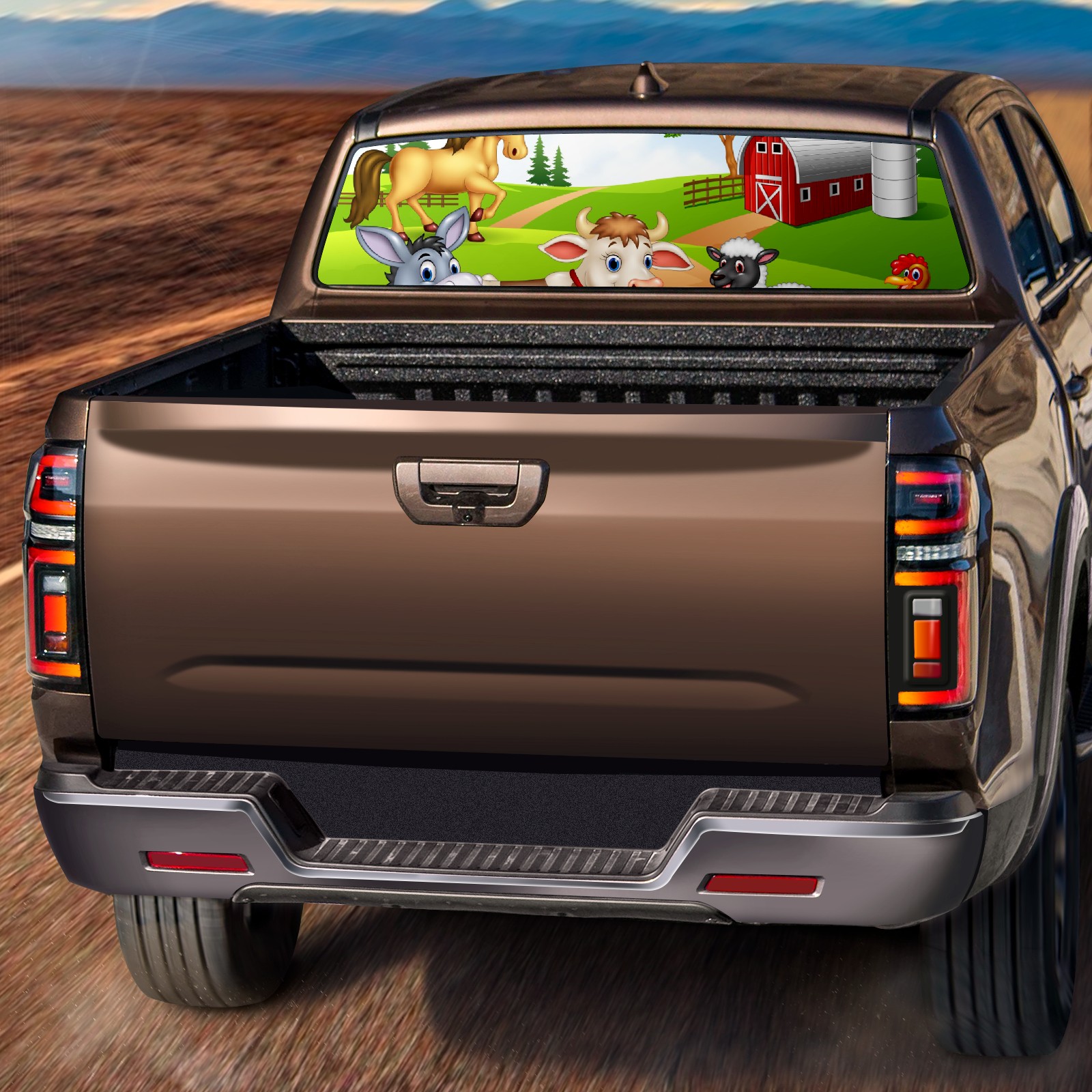Truck Rear Window Graphics Decals Pickup Trucks Back Window Sticker Full Window Film Decal One Way Visual Waterproof Car Rear Tint Animal Farm Selfie
