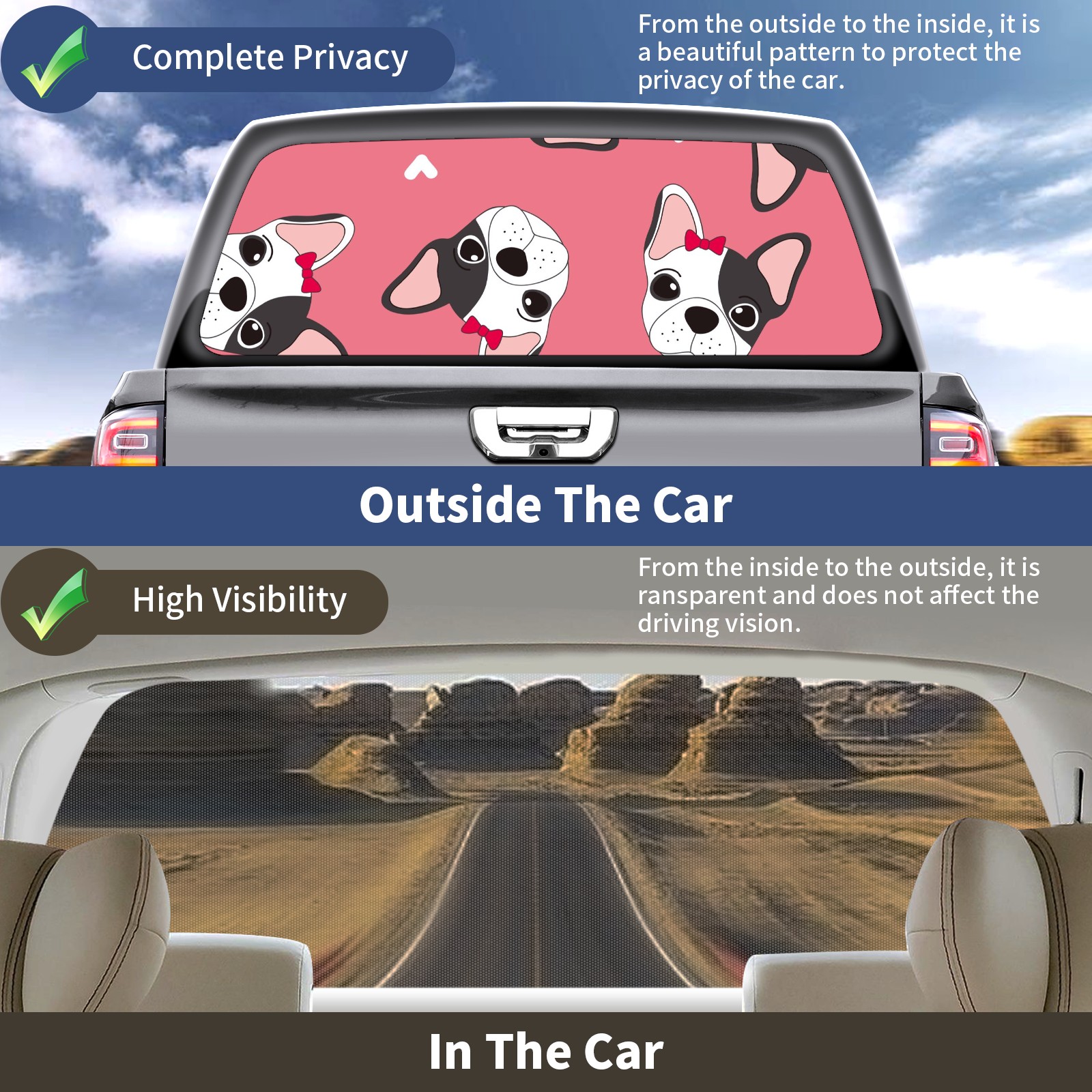 Truck Rear Window Graphics Decals Pickup Trucks Back Window Sticker Full Window Film Decal One Way Visual Waterproof Car Rear Tint Cute Pink Puppy Dog Girl