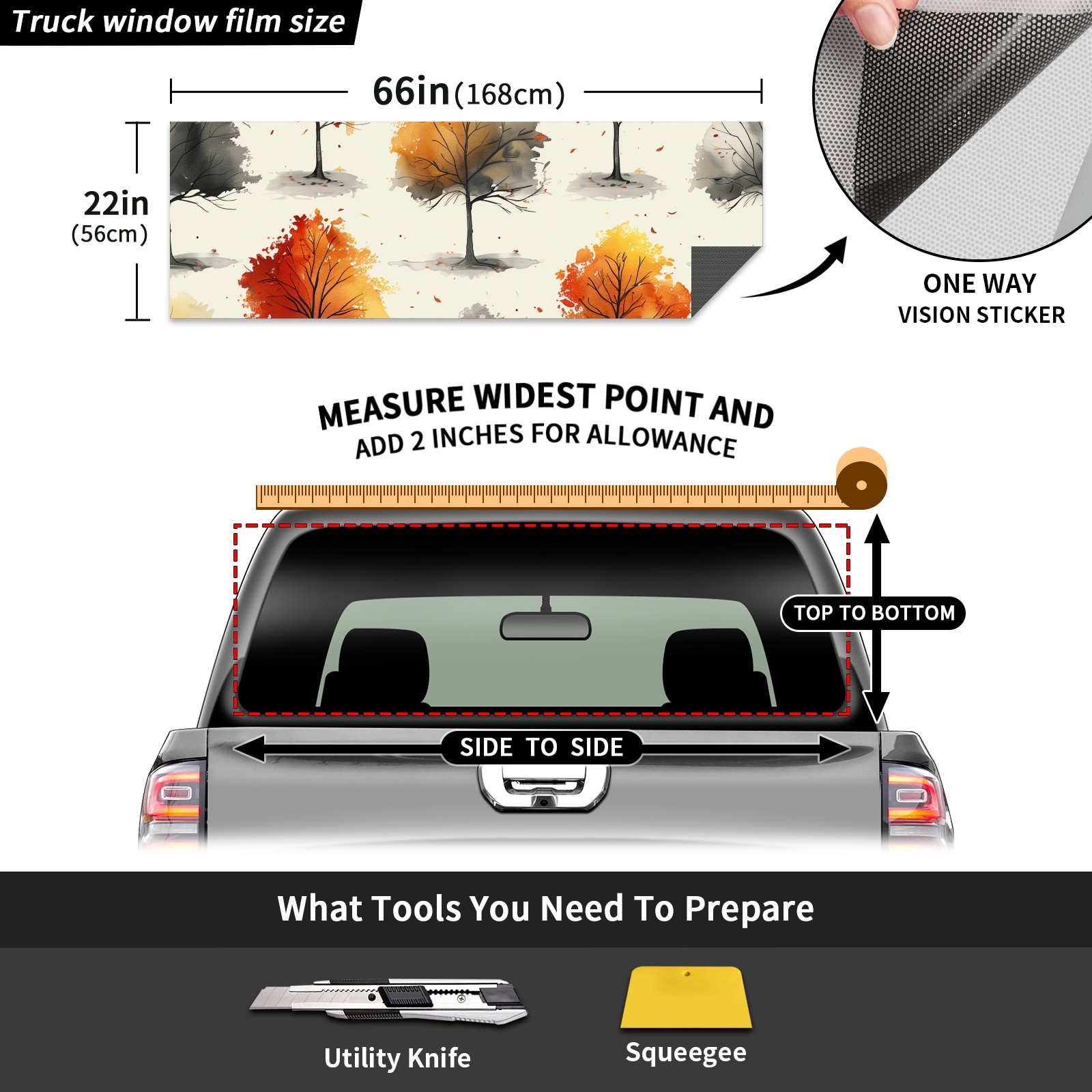 Truck Rear Window Graphics Decals Pickup Trucks Back Window Sticker Full Window Film Decal One Way Visual Waterproof Car Rear Tint Autumn Tree