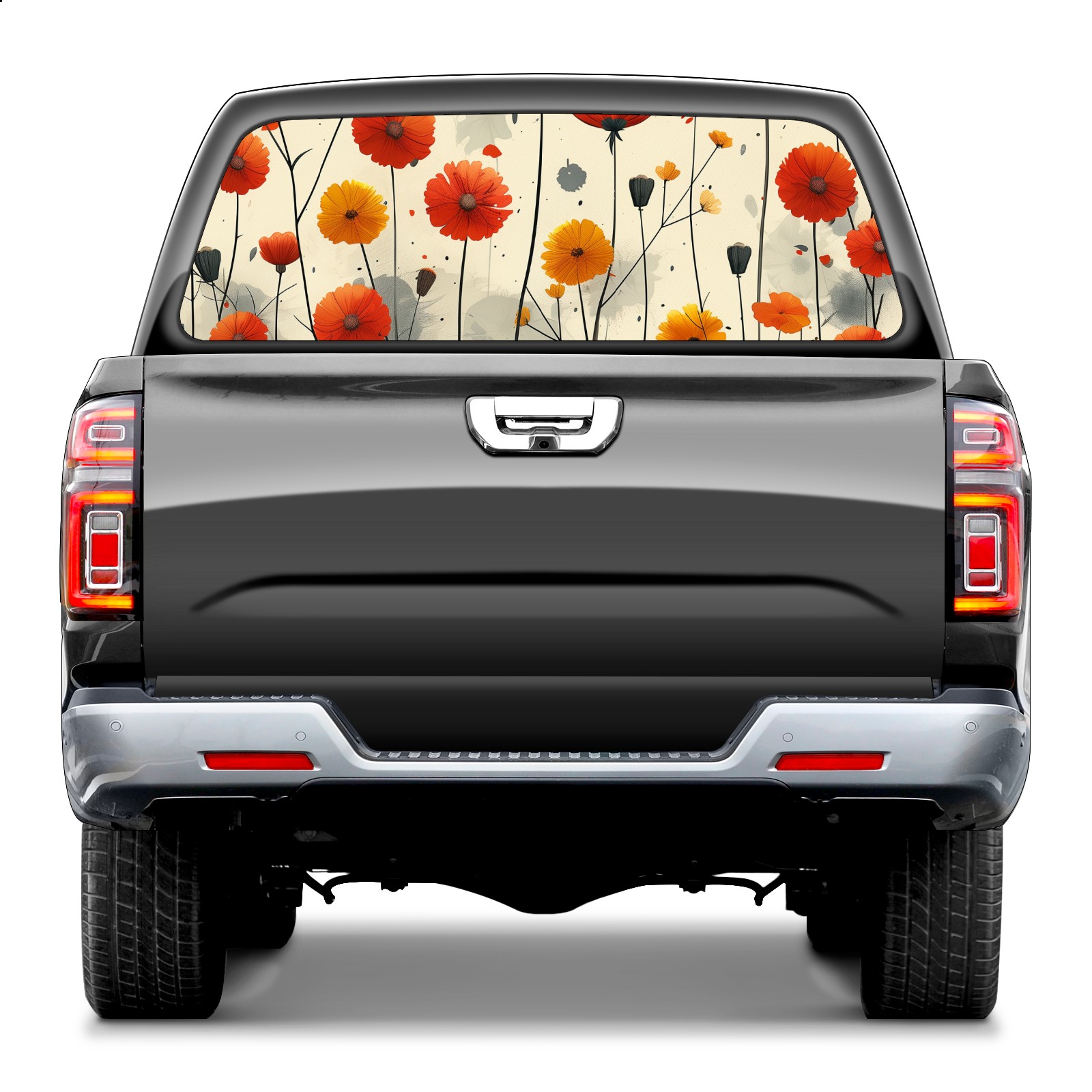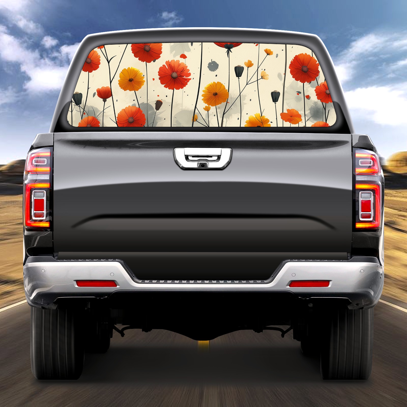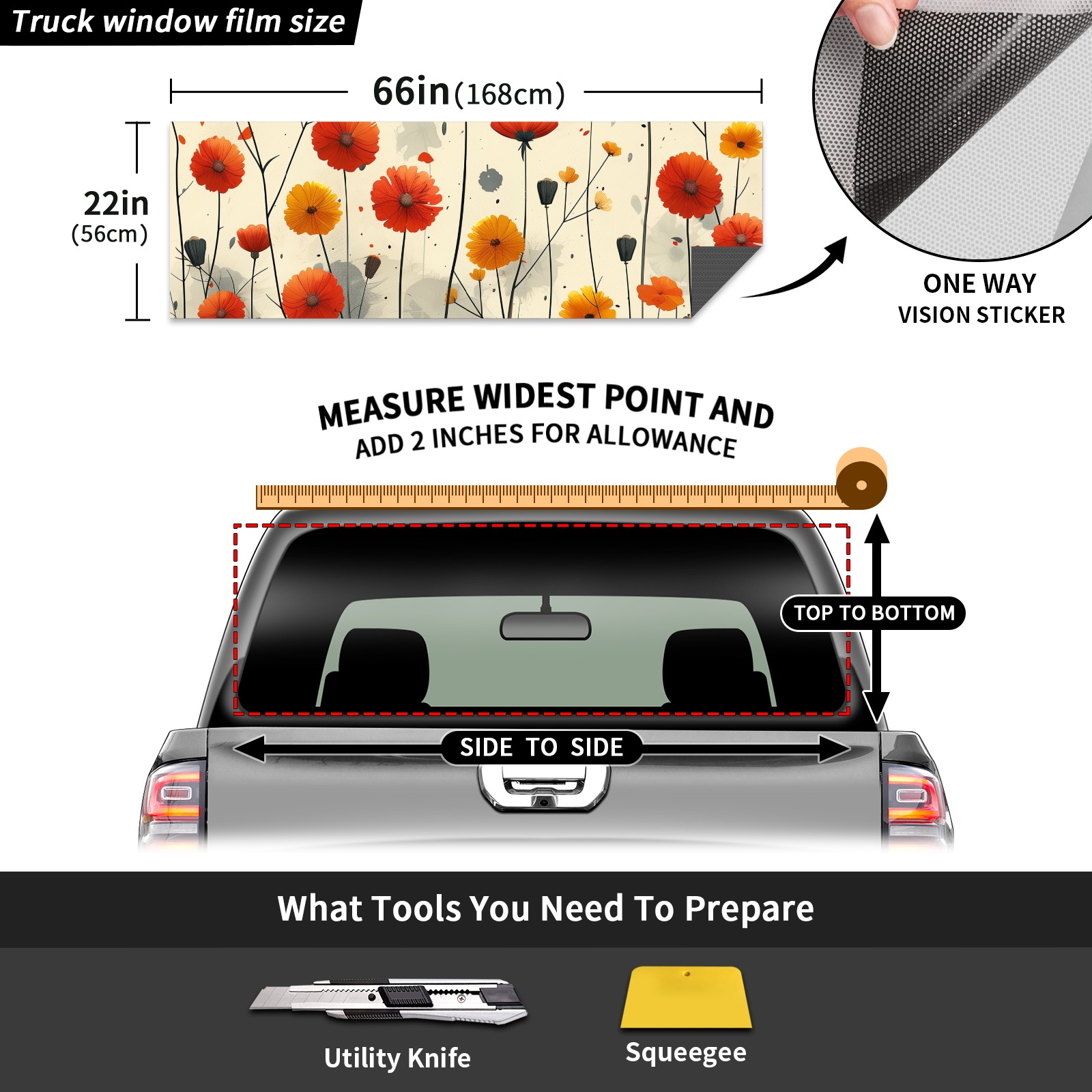 Truck Rear Window Graphics Decals Pickup Trucks Back Window Sticker Full Window Film Decal One Way Visual Waterproof Car Rear Tint Beautiful Flower