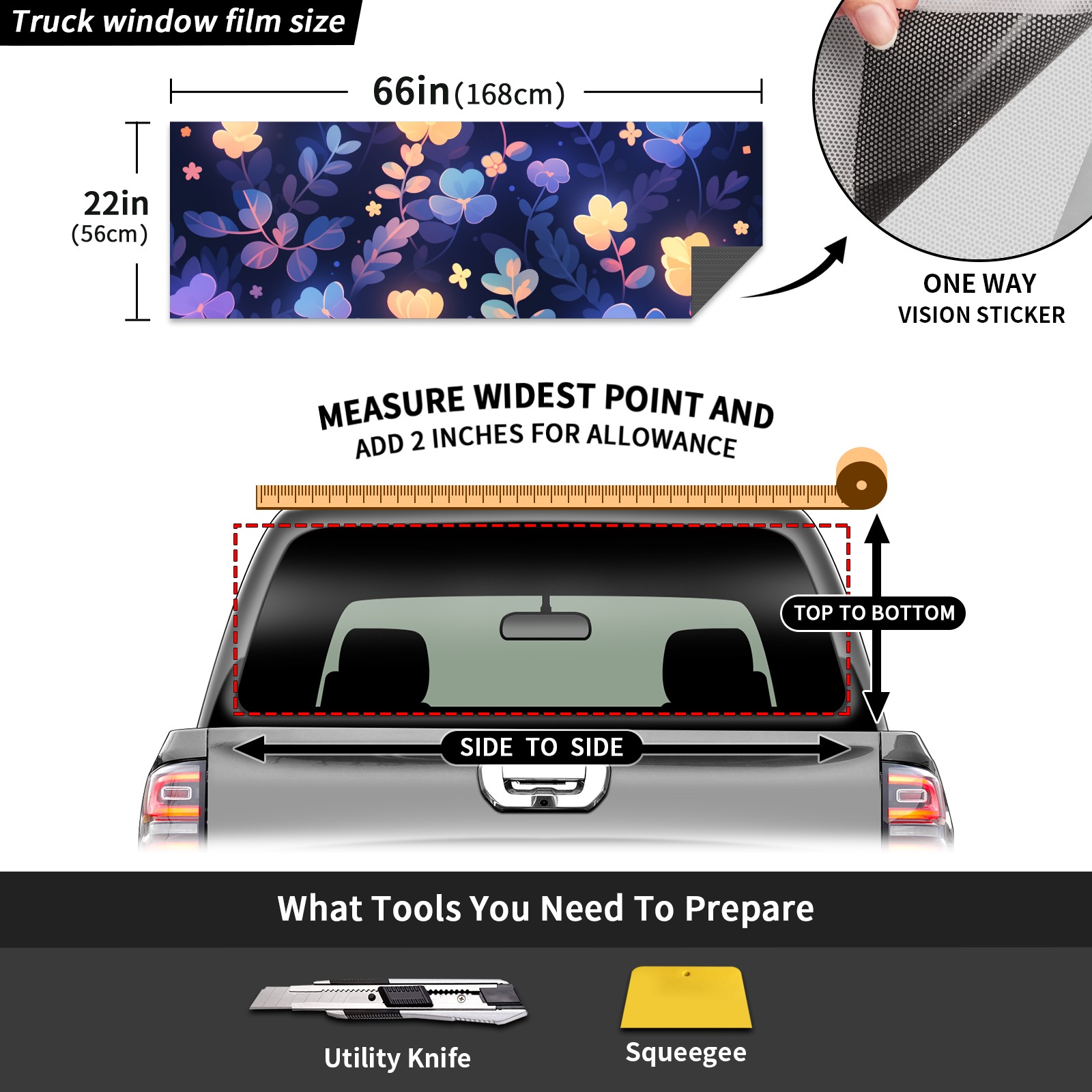 Truck Rear Window Graphics Decals Pickup Trucks Back Window Sticker Full Window Film Decal One Way Visual Waterproof Car Rear Tint Plant