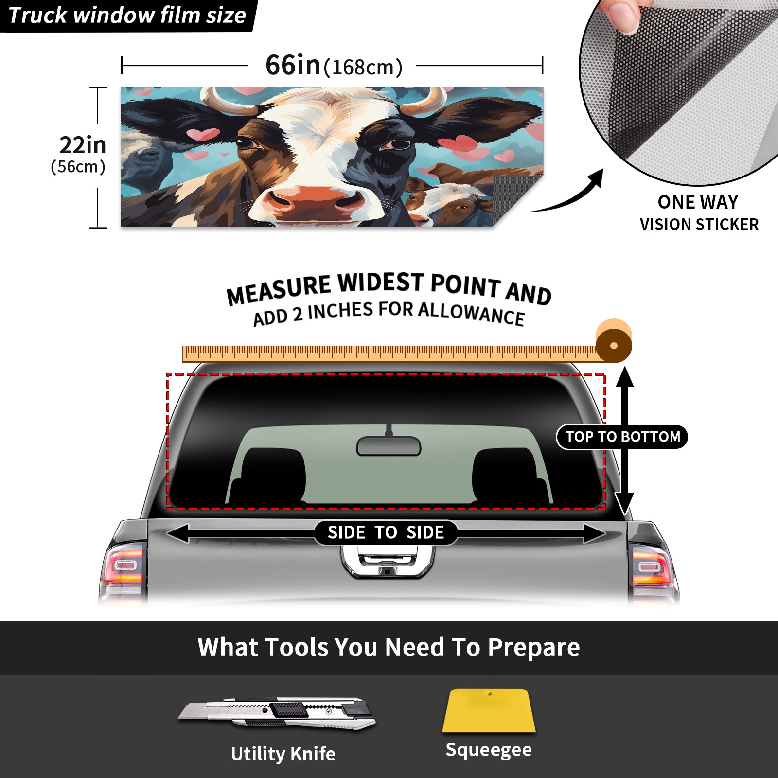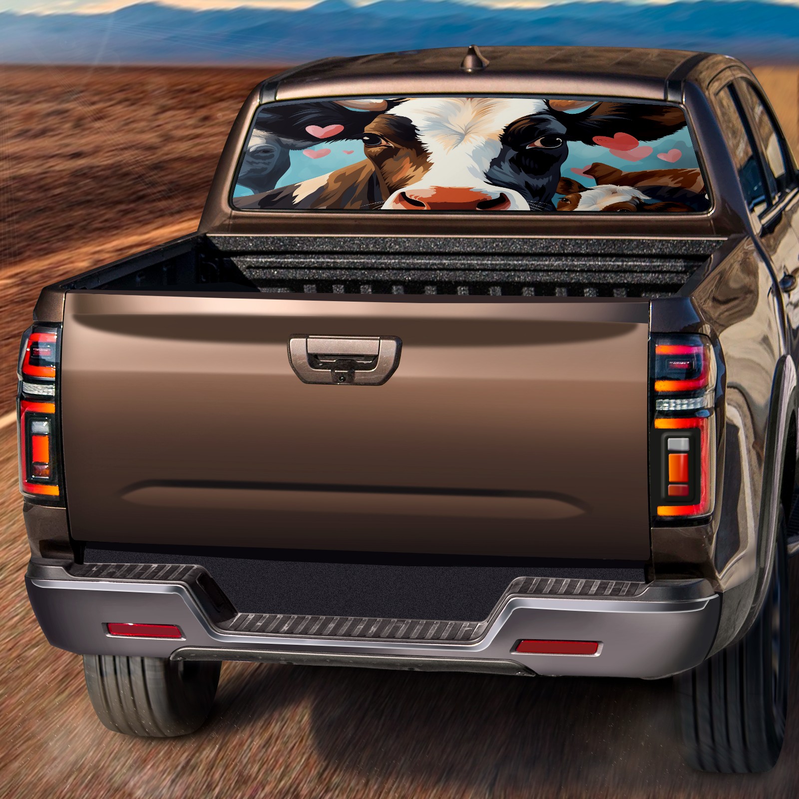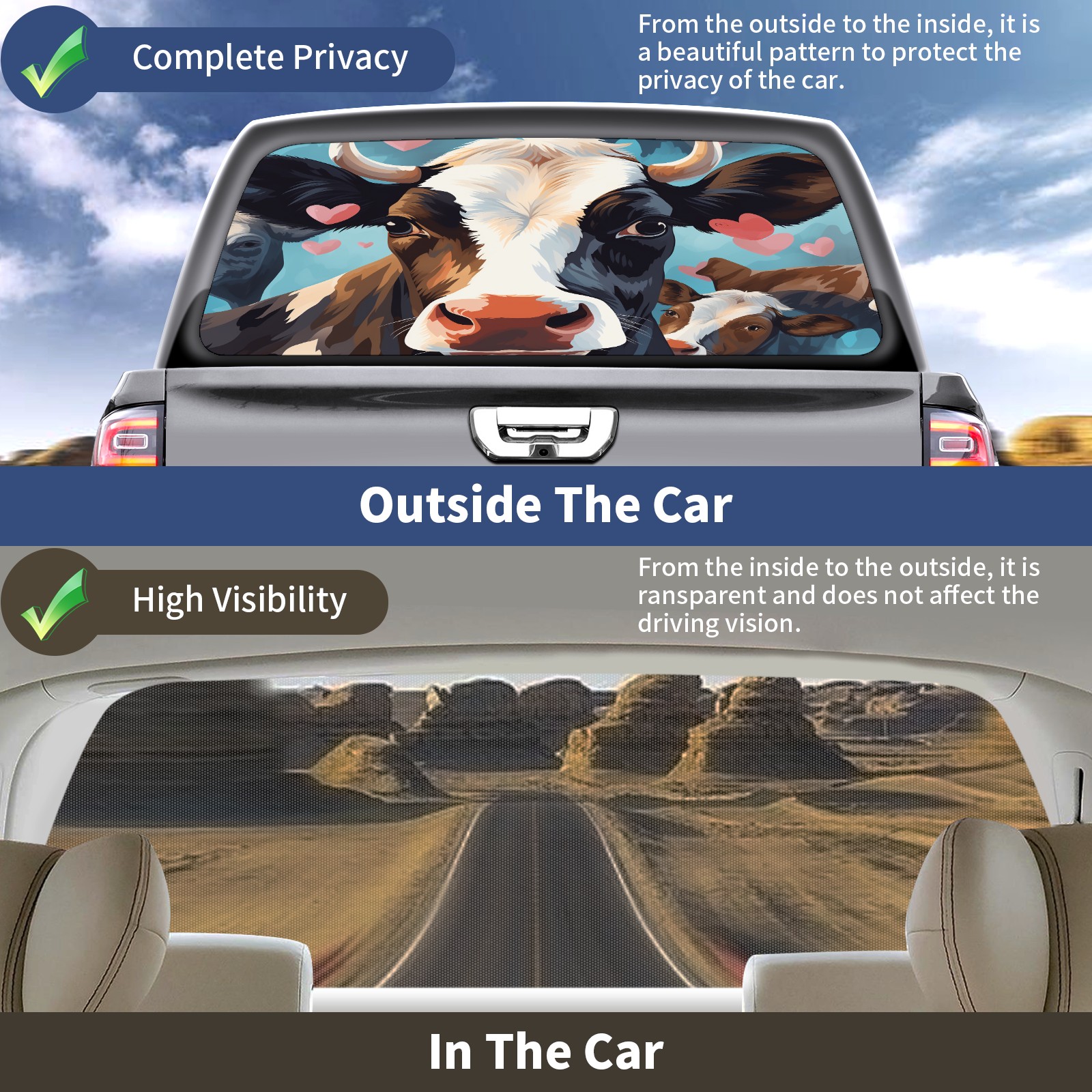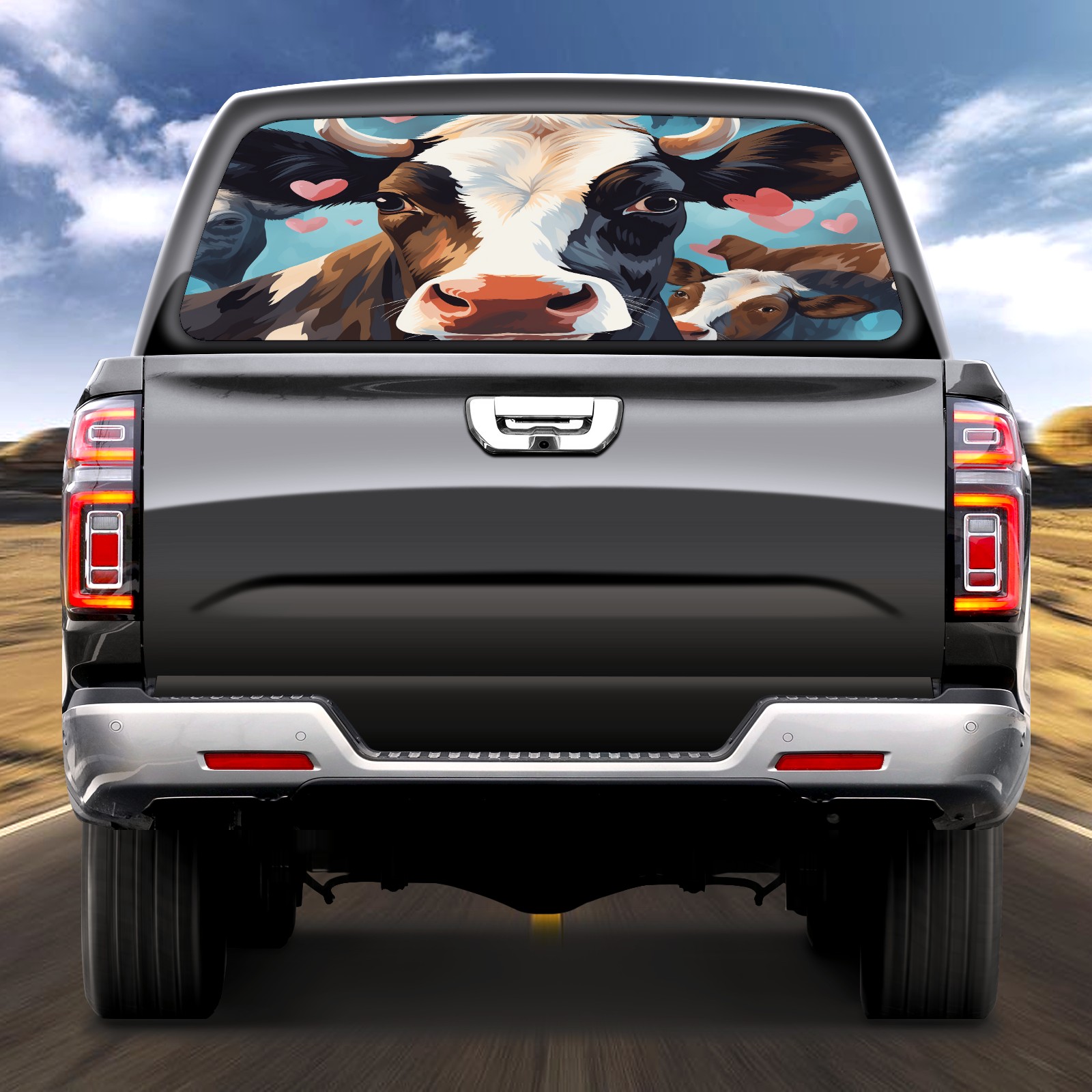 Truck Rear Window Graphics Decals Pickup Trucks Back Window Sticker Full Window Film Decal One Way Visual Waterproof Car Rear Tint Flowers Cow (6)